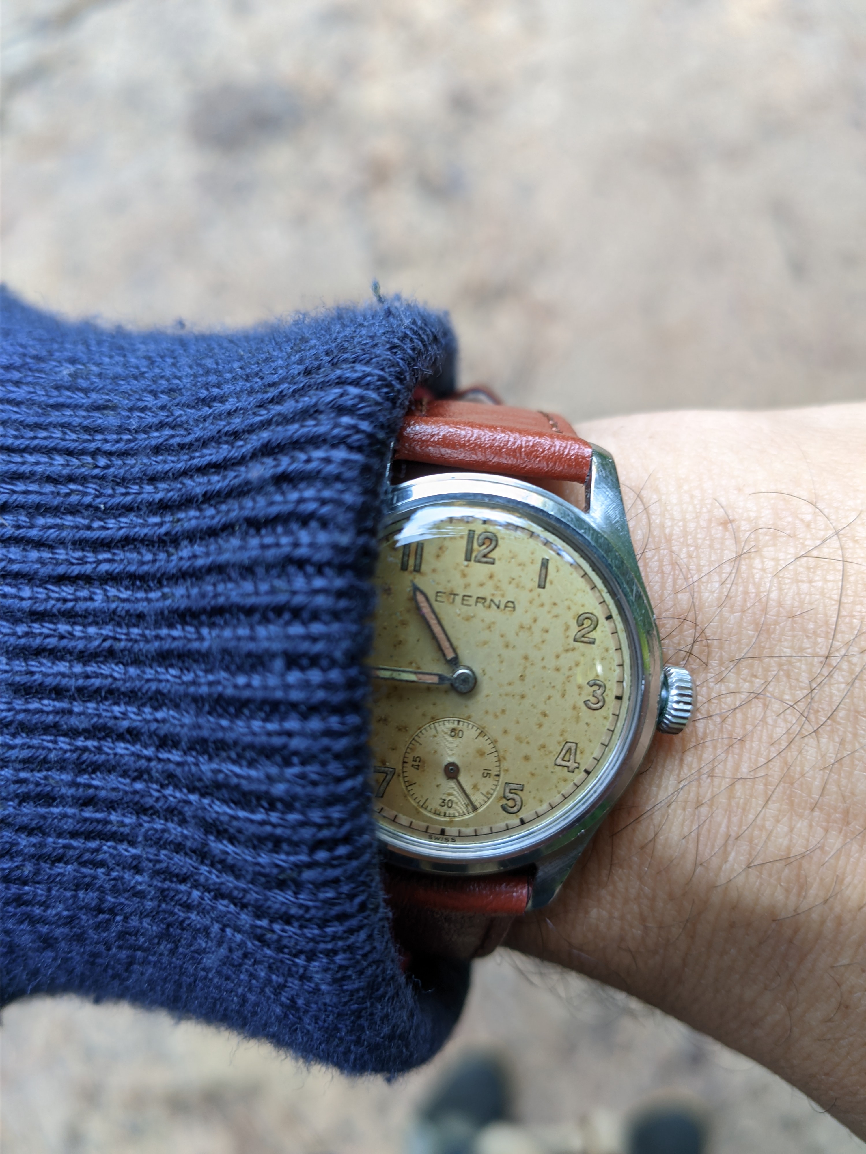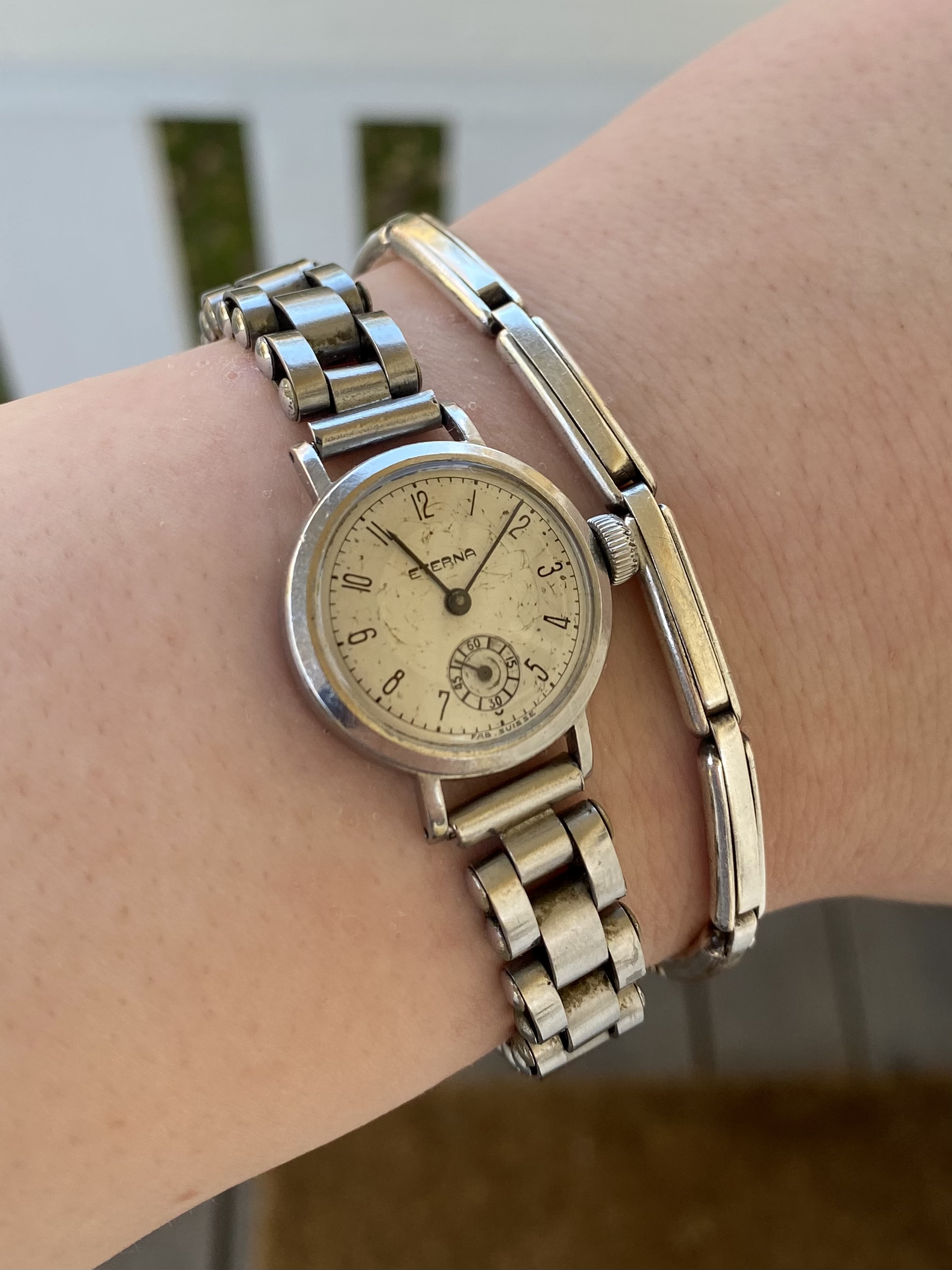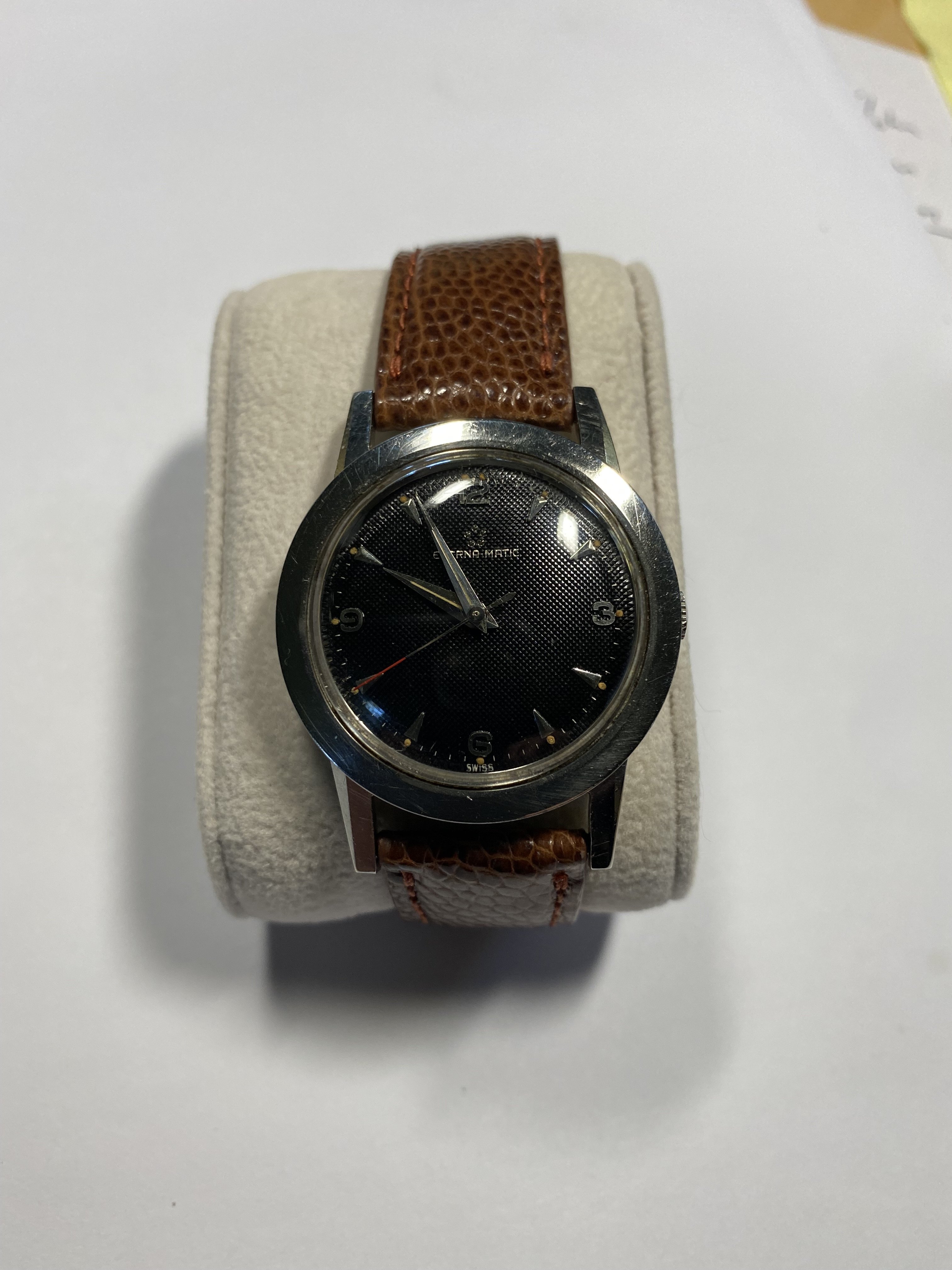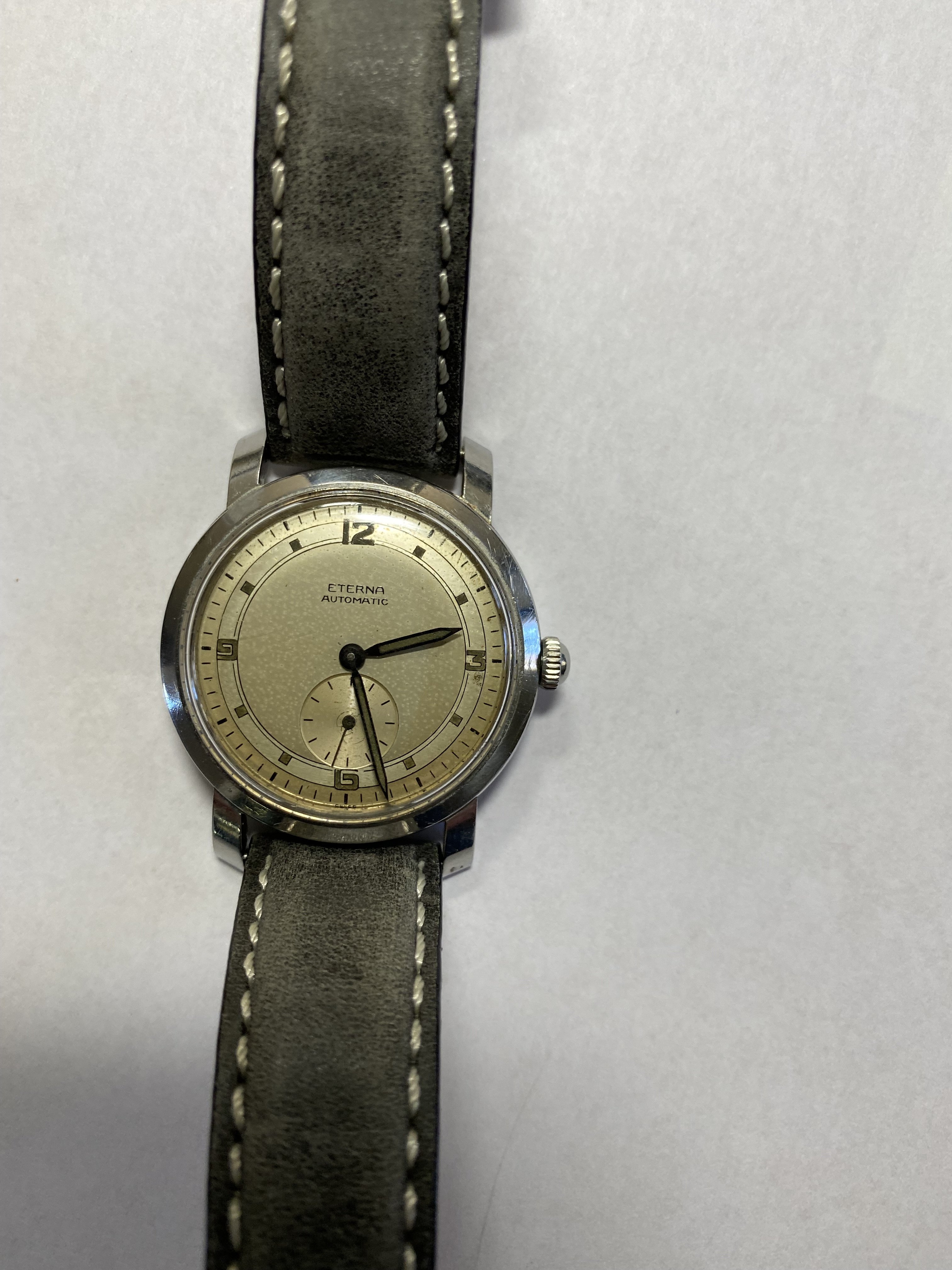 Hope it's all right to post my non-matic Eterna. From the 40's I presume - the "Tres Tacche" caseback prevents me from opening it on my own and learning more details. But I'm very happy with it - runs like a champ and I think it looks great on the Bradux bracelet I put on it.