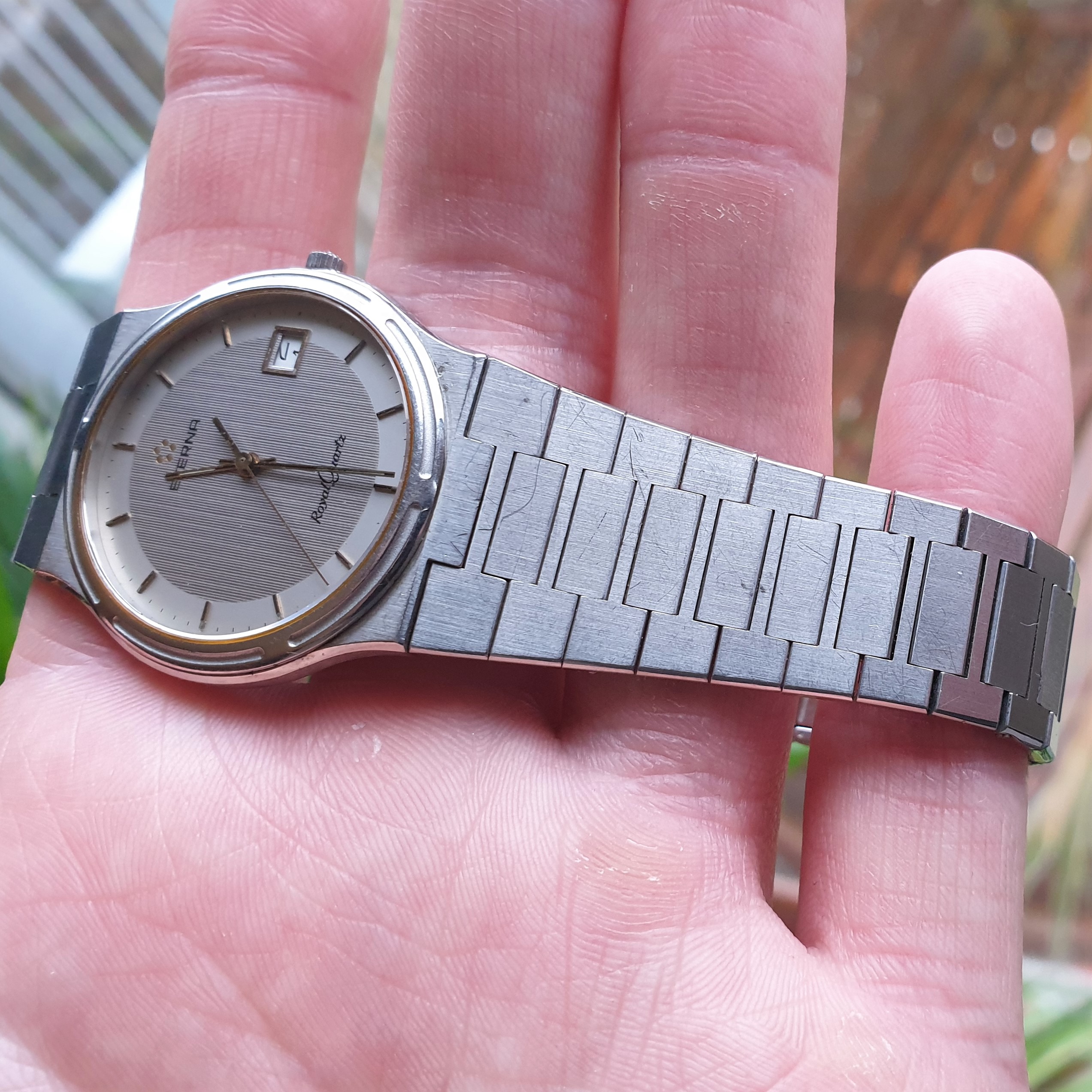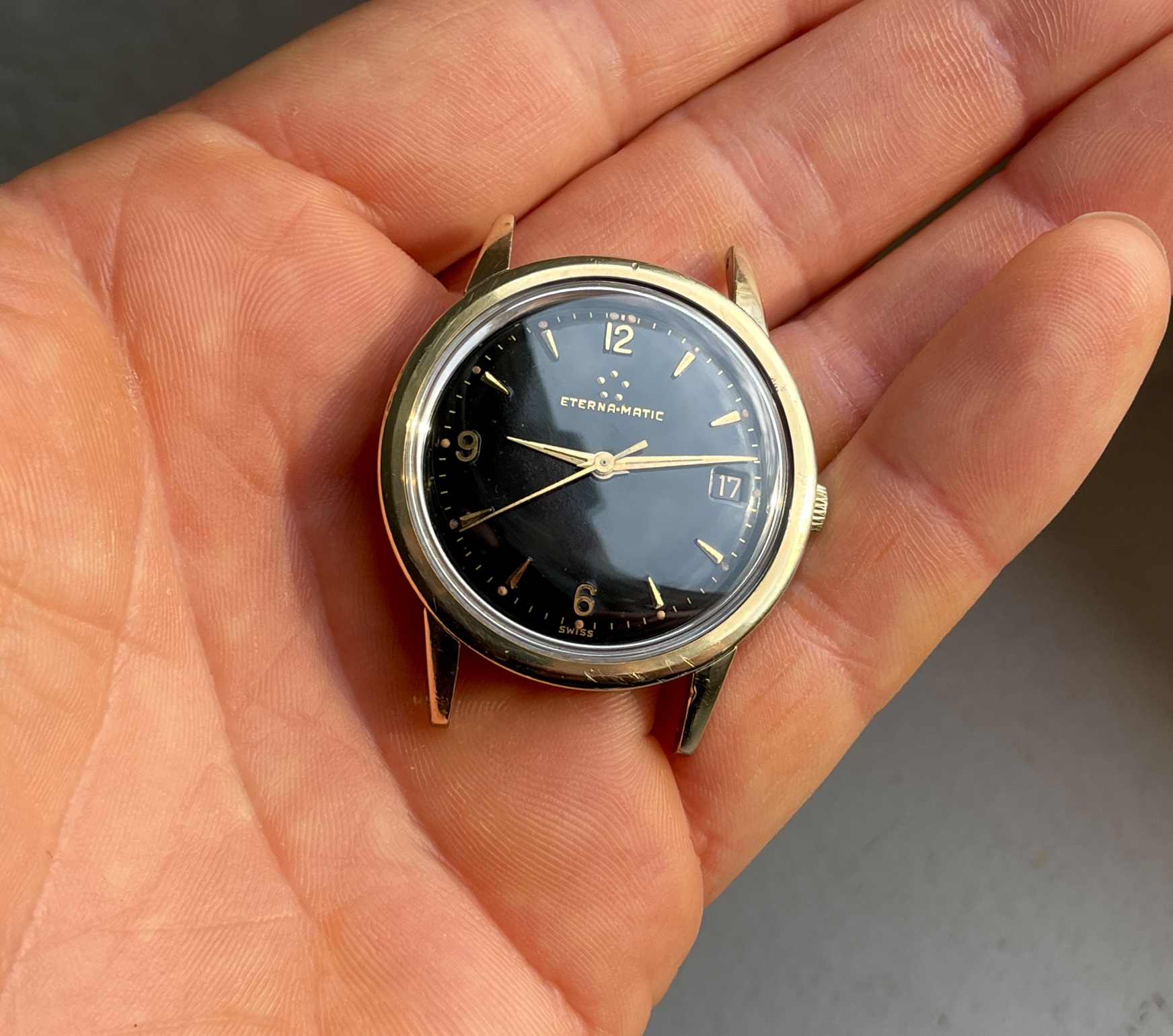 Well, it arrived, and I’m very pleased. There’s a scratch on the dial near 3 and a few very minor scratches on the case.. otherwise it appears to be NOSish. Look at those lugs!