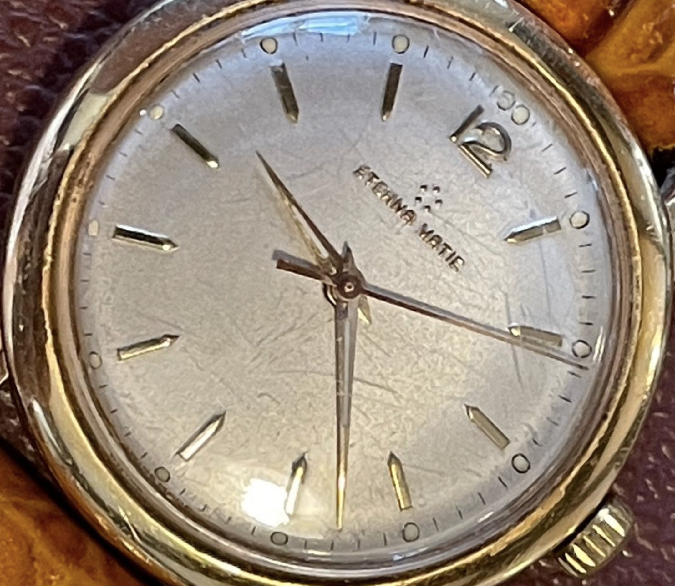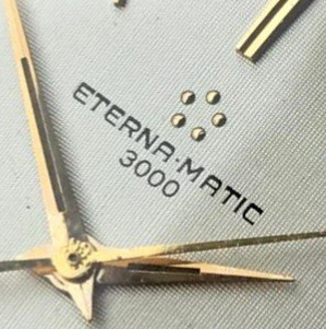 Now an auction for a lovely if quite beat-up older Eterna-Matic has popped up, but I'm wondering about the dial - it somehow looks more like an Oris to me, with the «Eterna Matic» in 3D letters, and the lume dots surrounded by an outline.