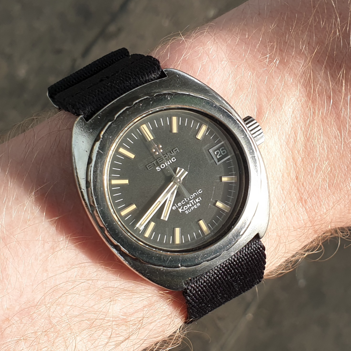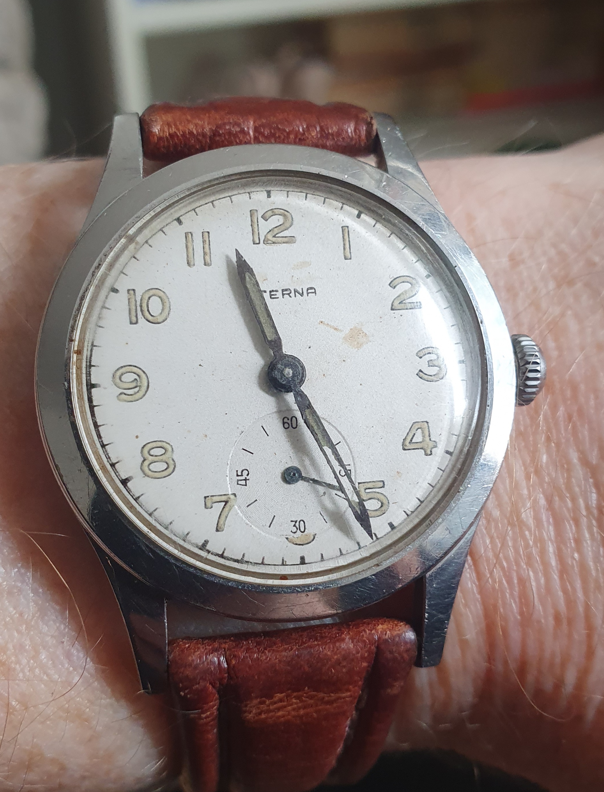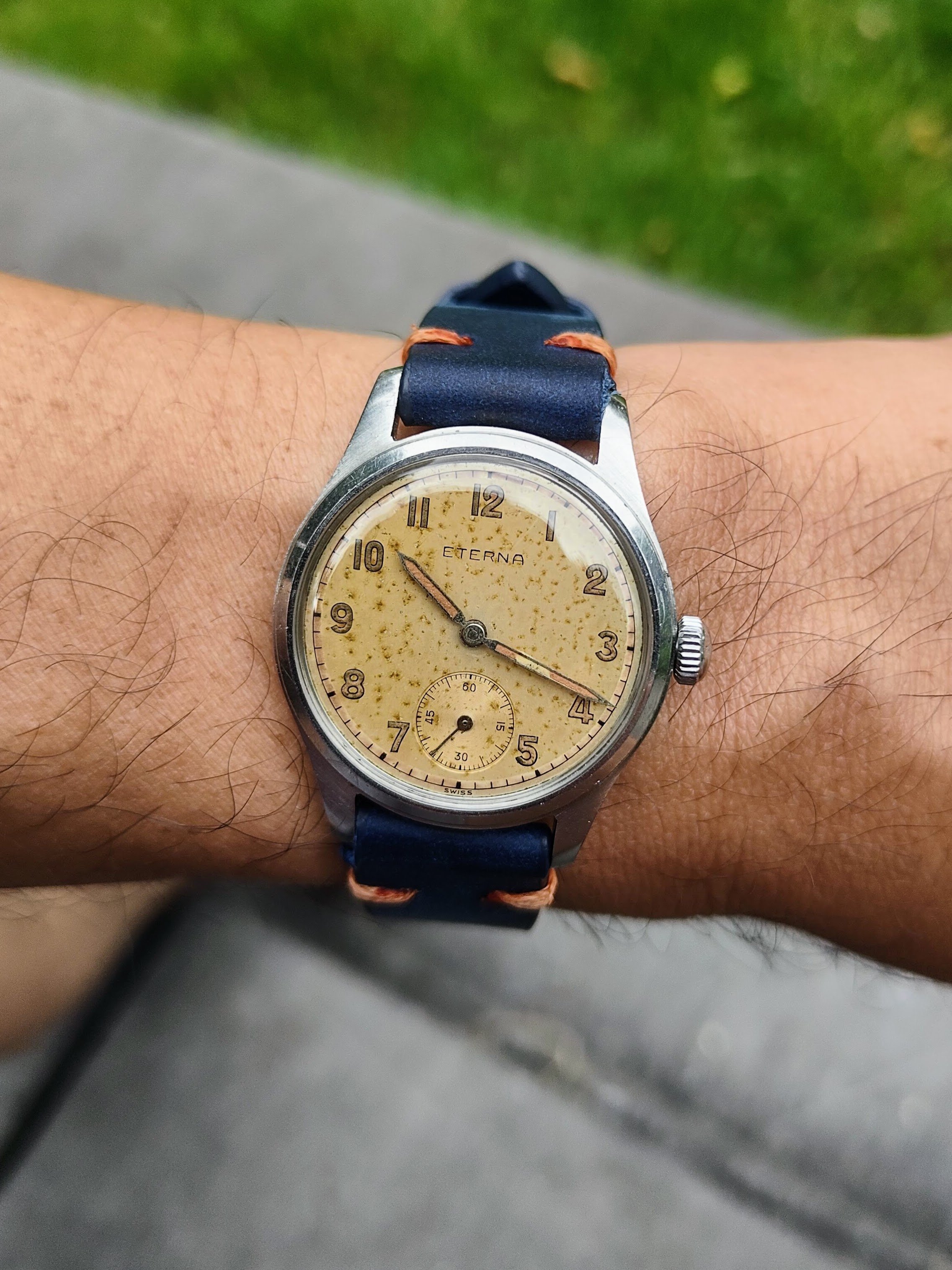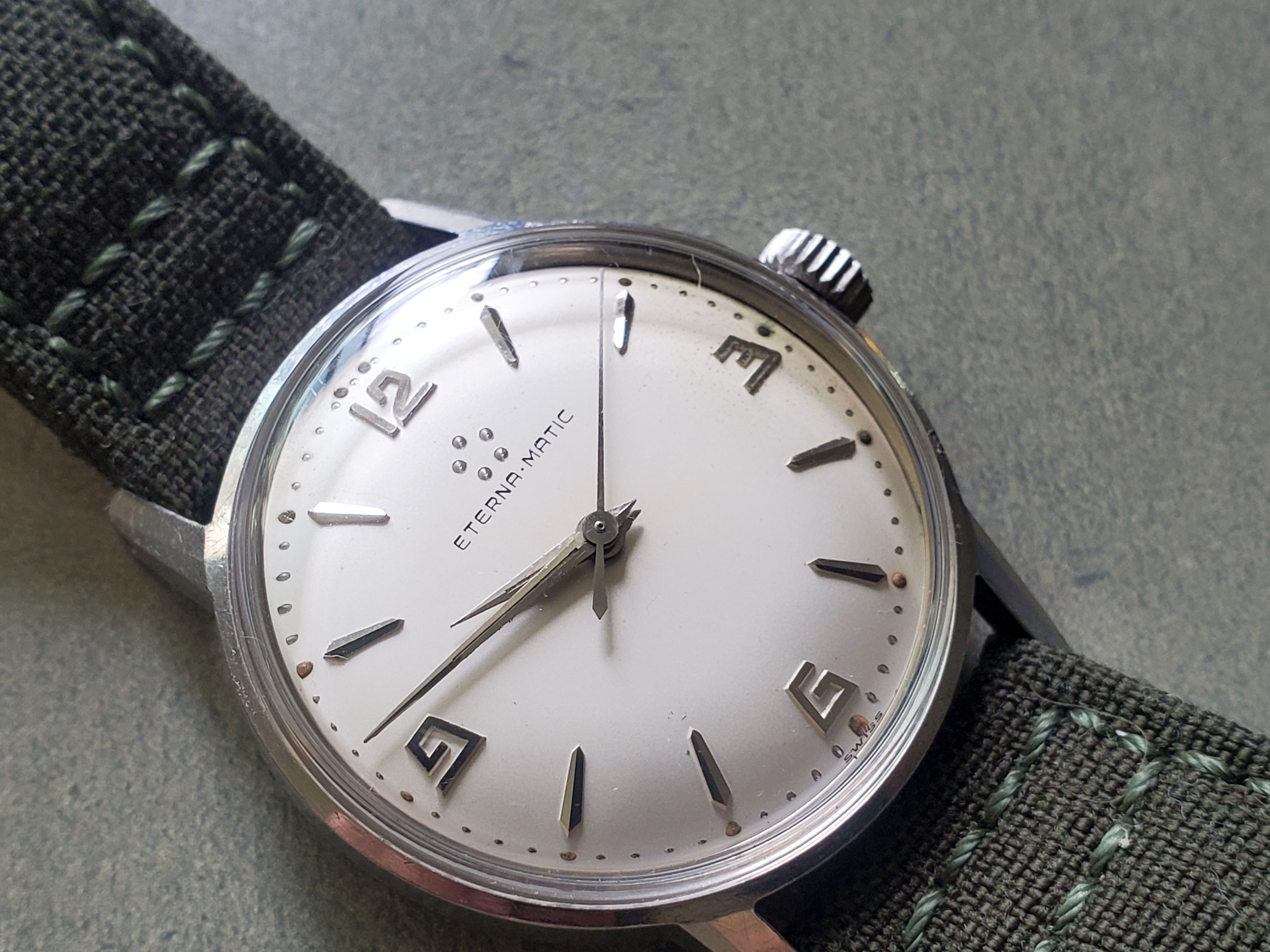 I really like the oblique numerals on this Eterna I recently picked up. Despite a little damage to the dial around 3 o'clock, this watch currently has the highest enjoyment-to-cost ratio of any in my modest collection.