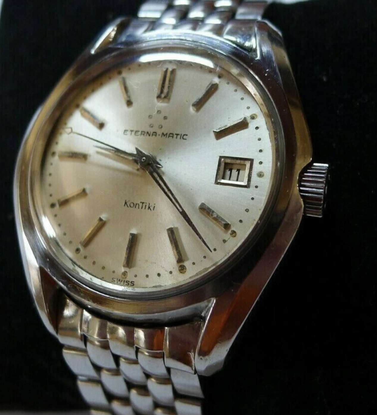 You might like this, from 1960. Case might be a little soft, and personally I would always miss the little ship when I looked at the back. Seems correct though, and the GF 18kt bracelet would be a yes from me, thanks. Annoyingly, it's one of those "price on request" dealers, but I'm hazarding my guess at "too expensive for me". I would love it to go to an Eterna lover though, rather than someone who just wants a vintage gold watch for their birthday.