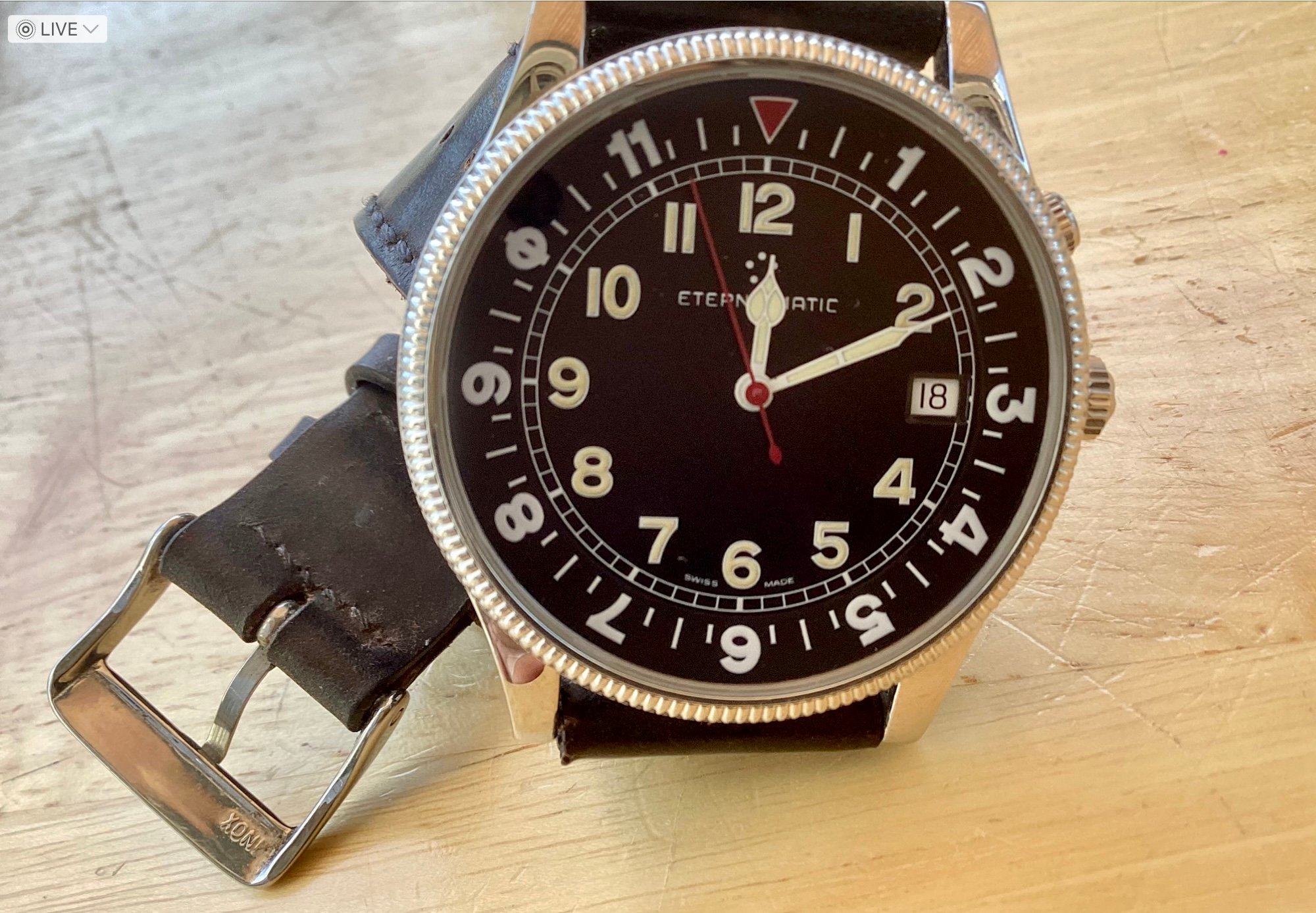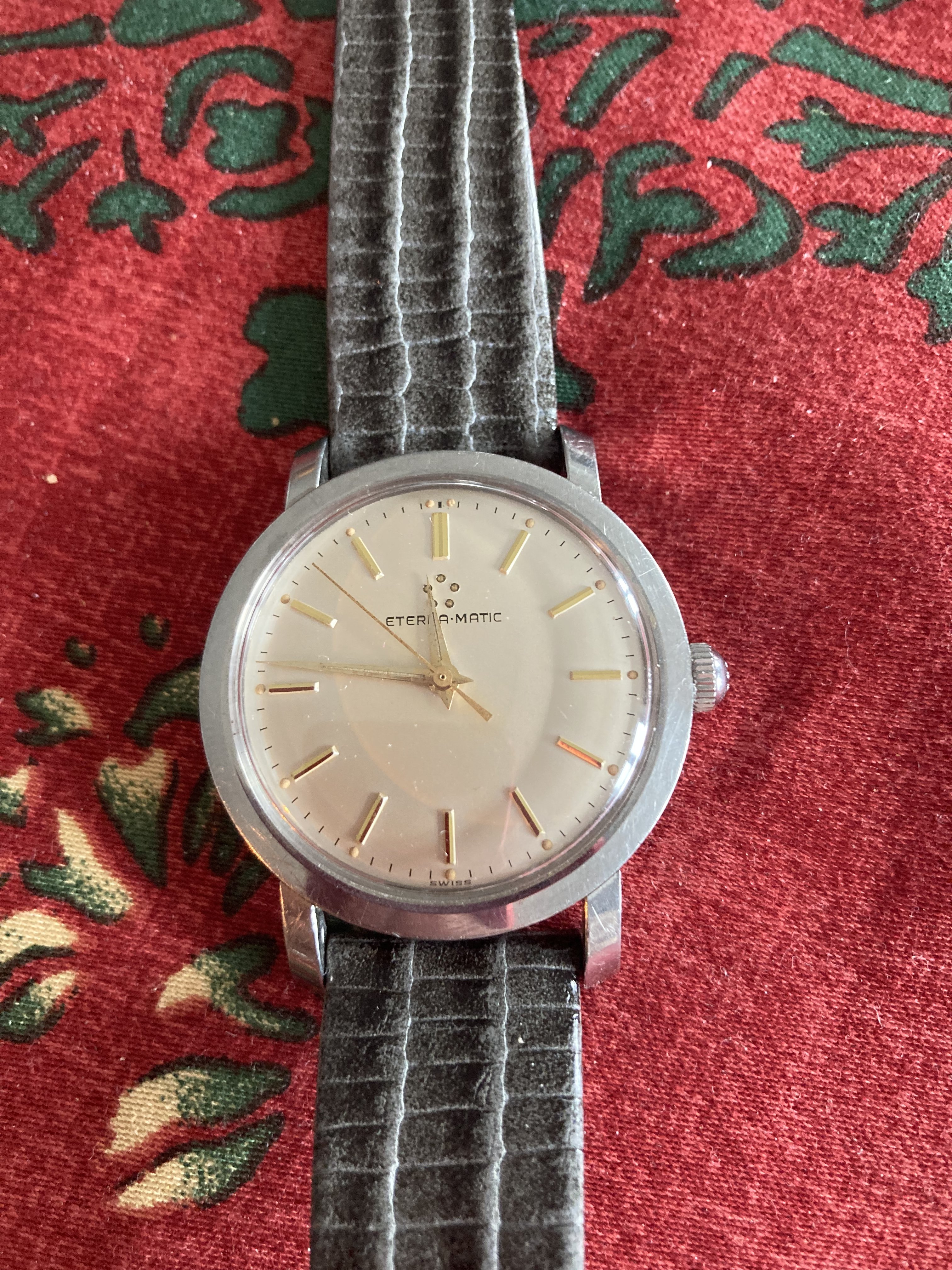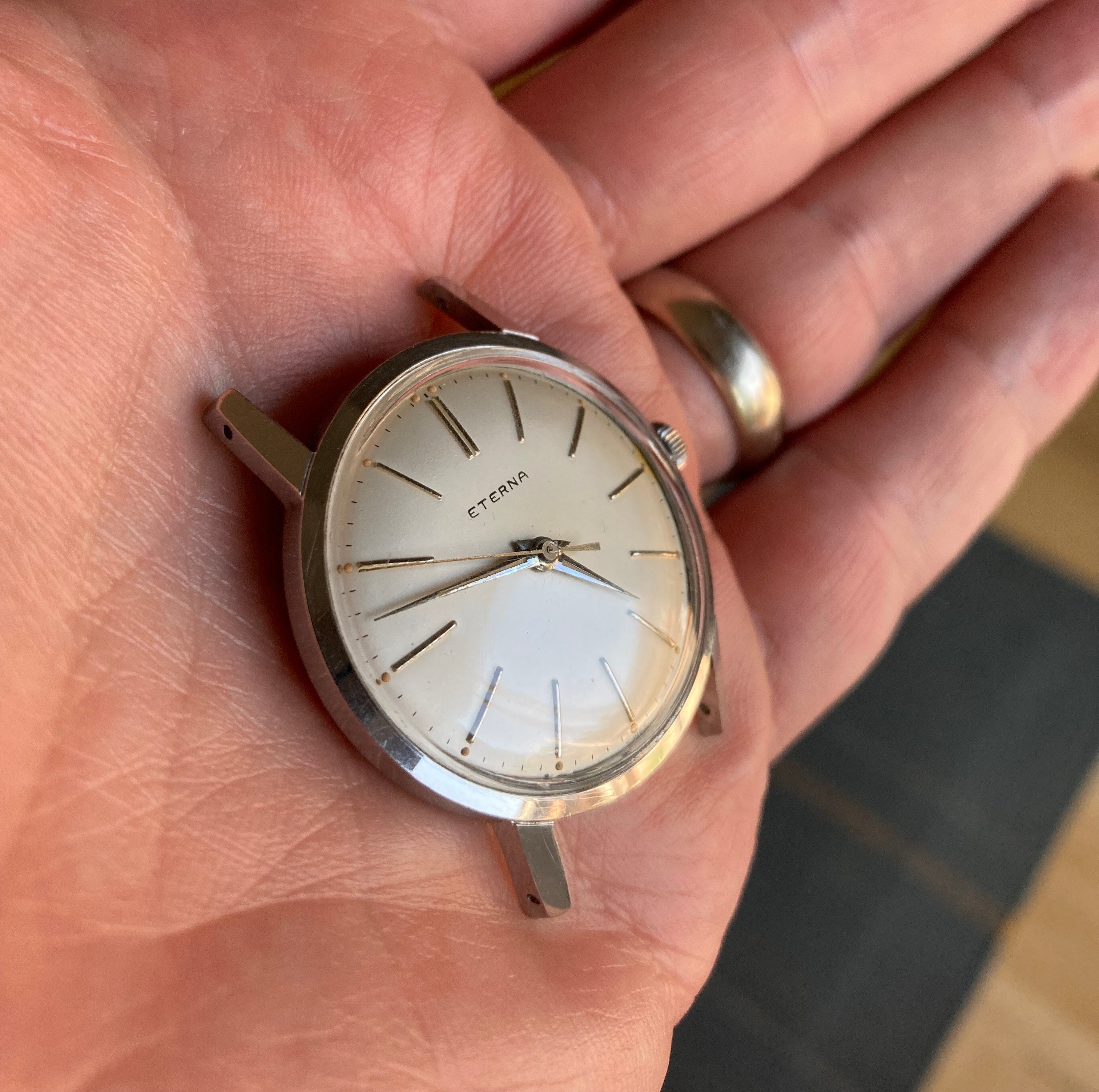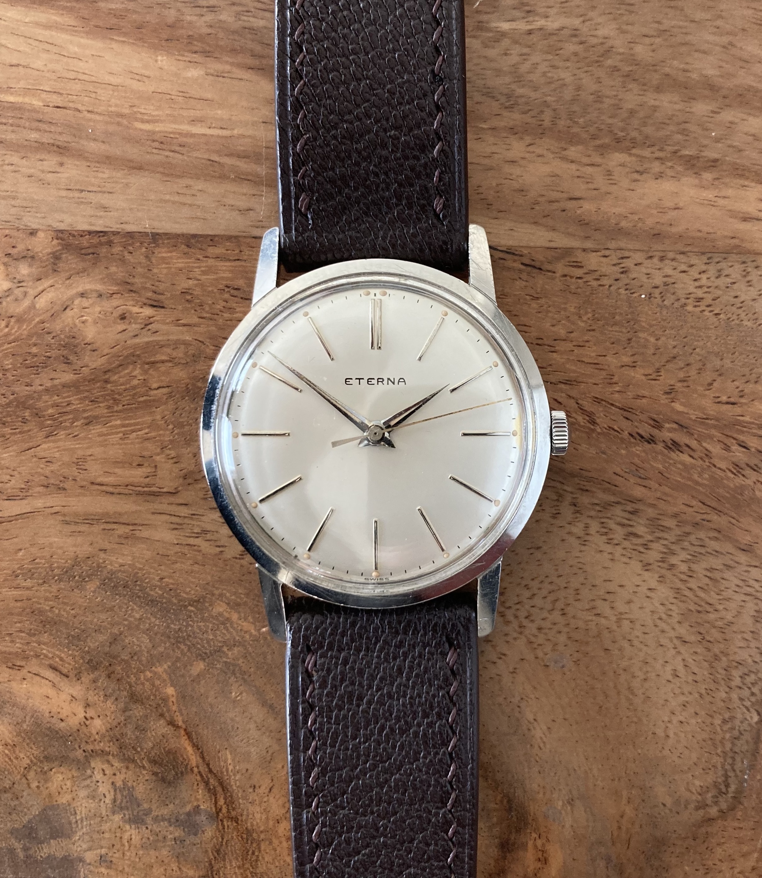 New arrival today: Eterna-Matic Centenaire with a perfect glossy black dial and to my surprise, really cool triple facetted lugs. The facets weren't visible on the seller's pictures.