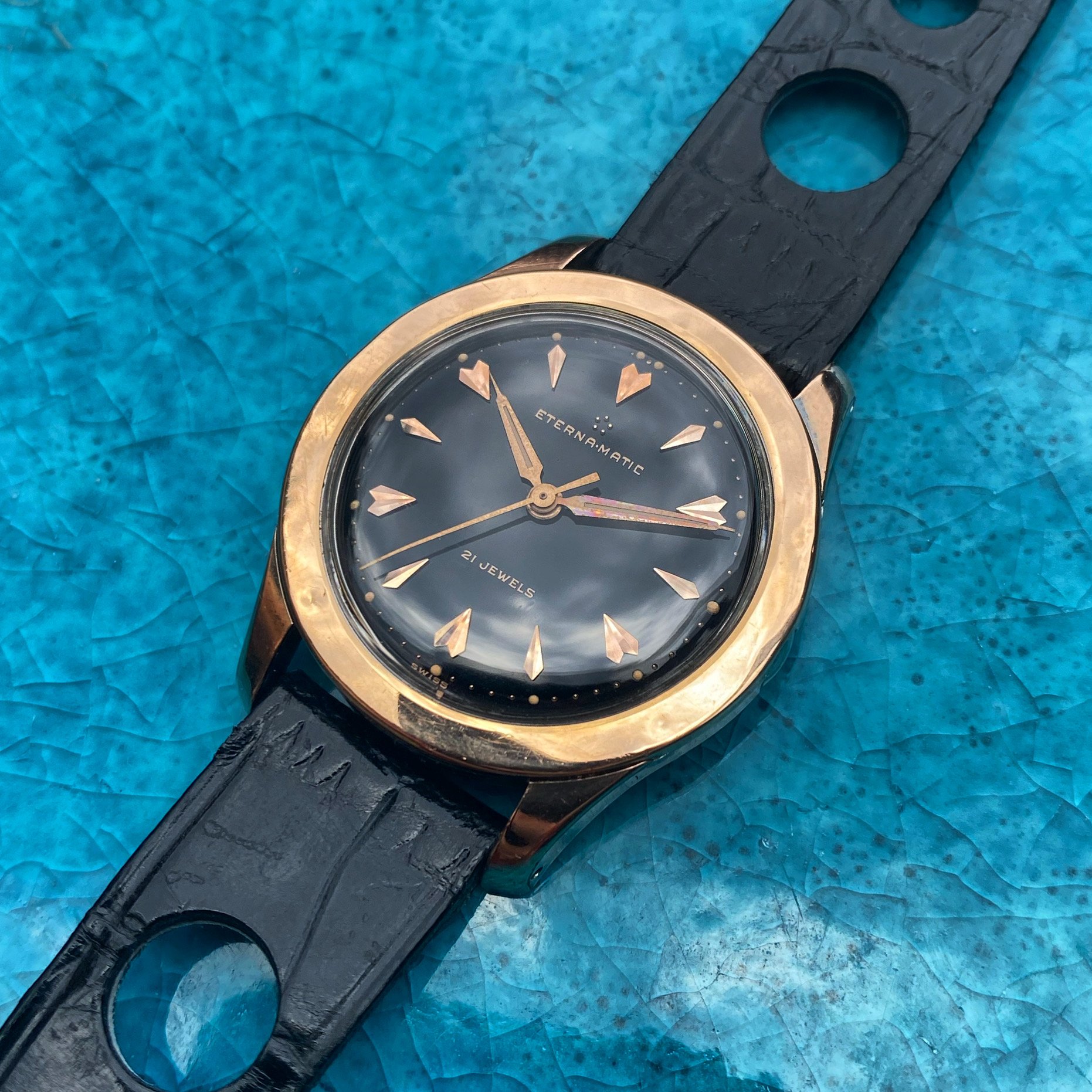 Posts 167 Likes 549 Mooieklokjes ·Aug 24, 2023 A rose gold capped Eterna Matic in a stunning symmetrical configuration.