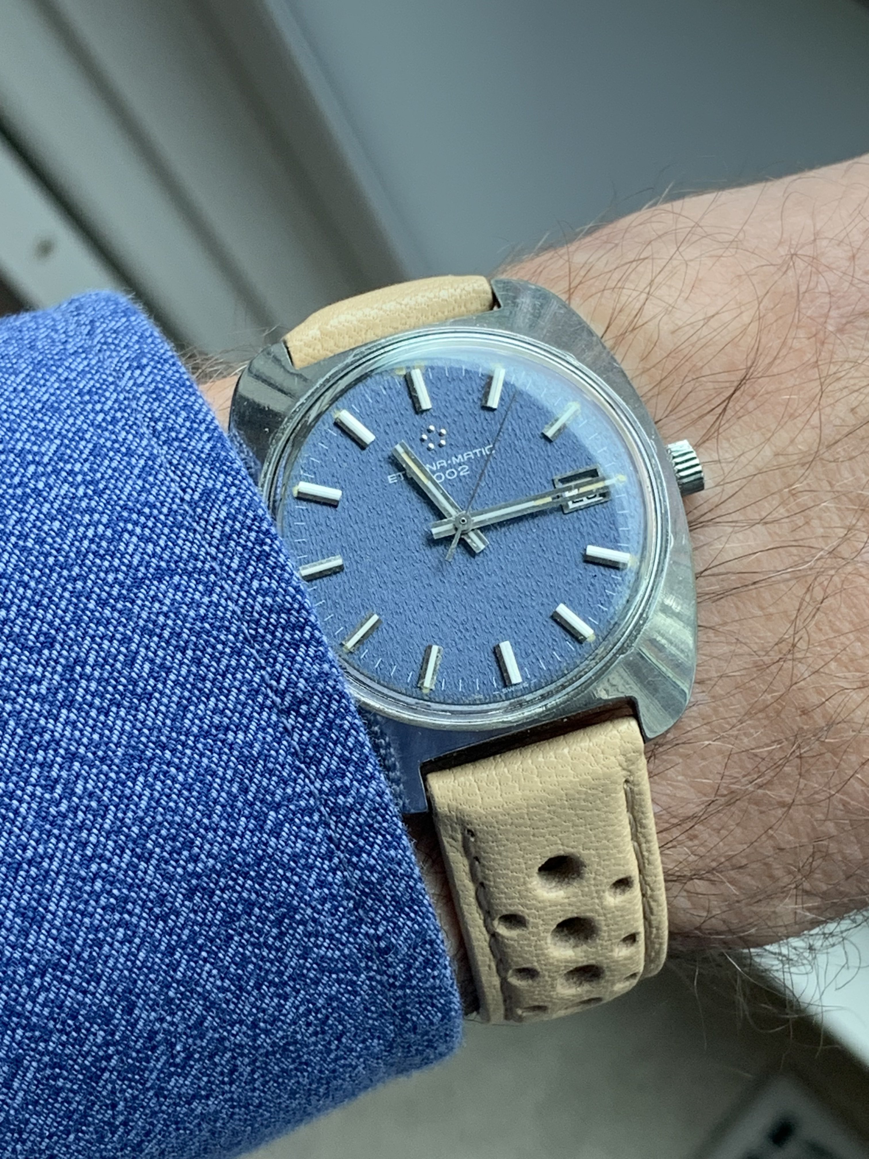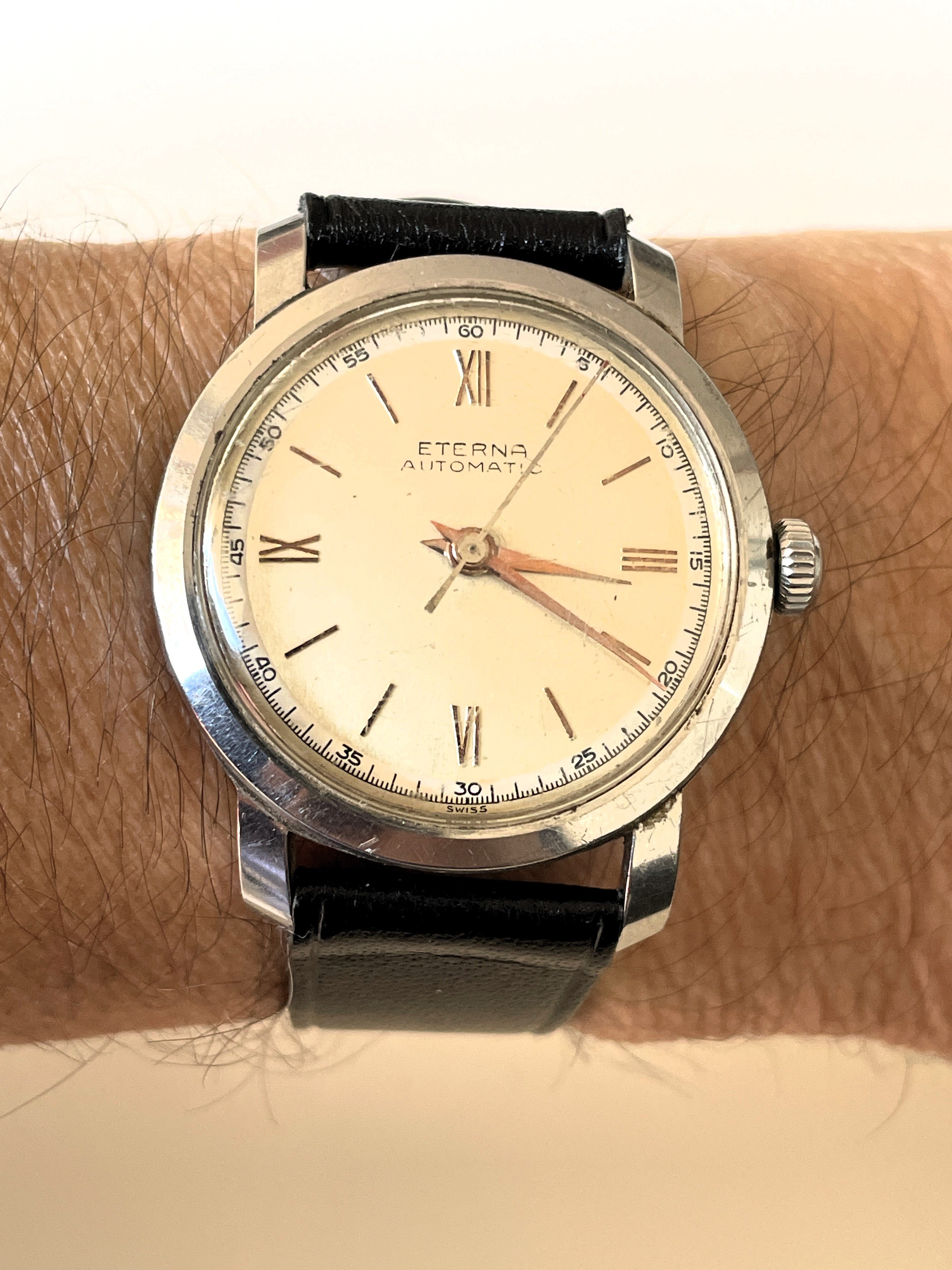 Posts 3,810 Likes 41,205 LesXL ·Jan 27, 2024 New to the collection... Not a Matic though, yet an Eterna 😀 34.5mm sharp case and lovely dial Edited: Jan 27, 2024