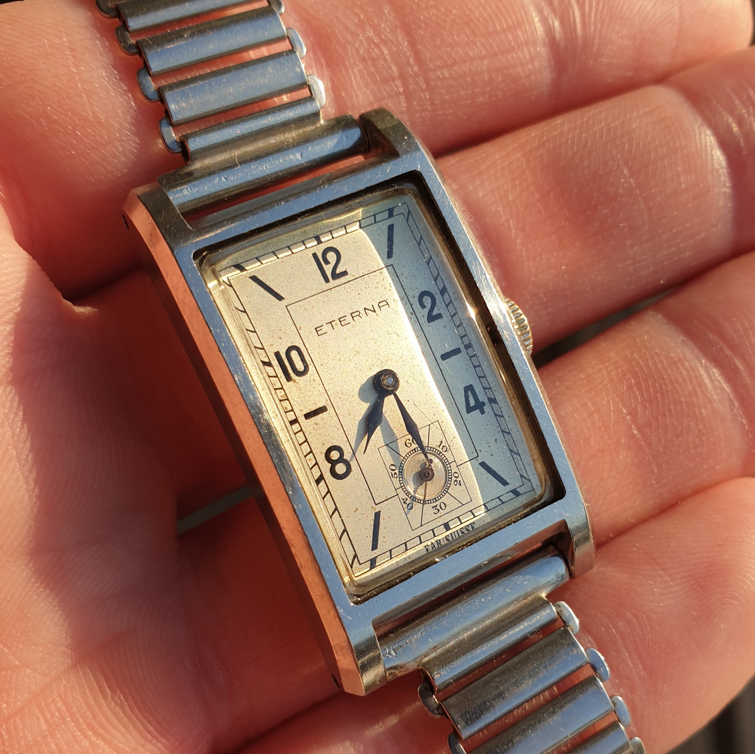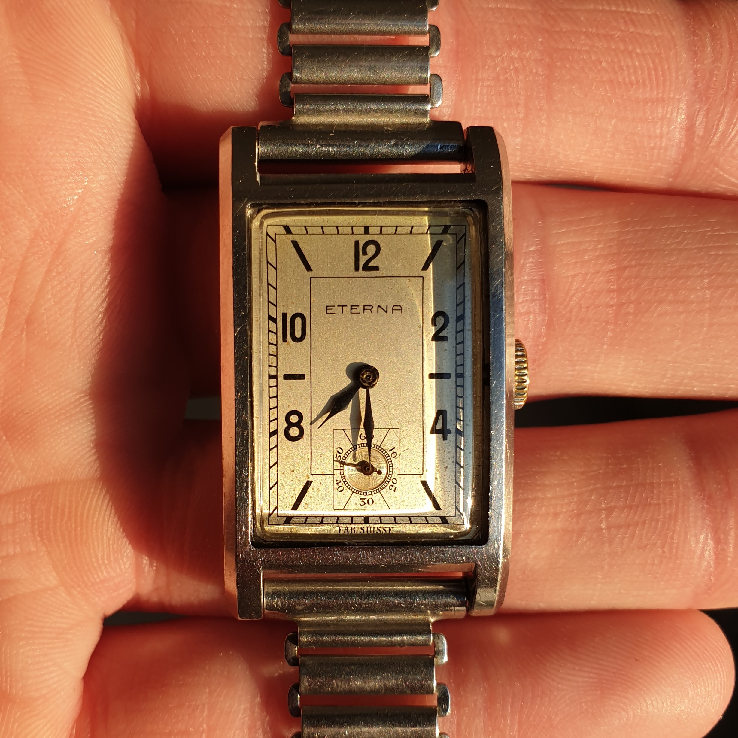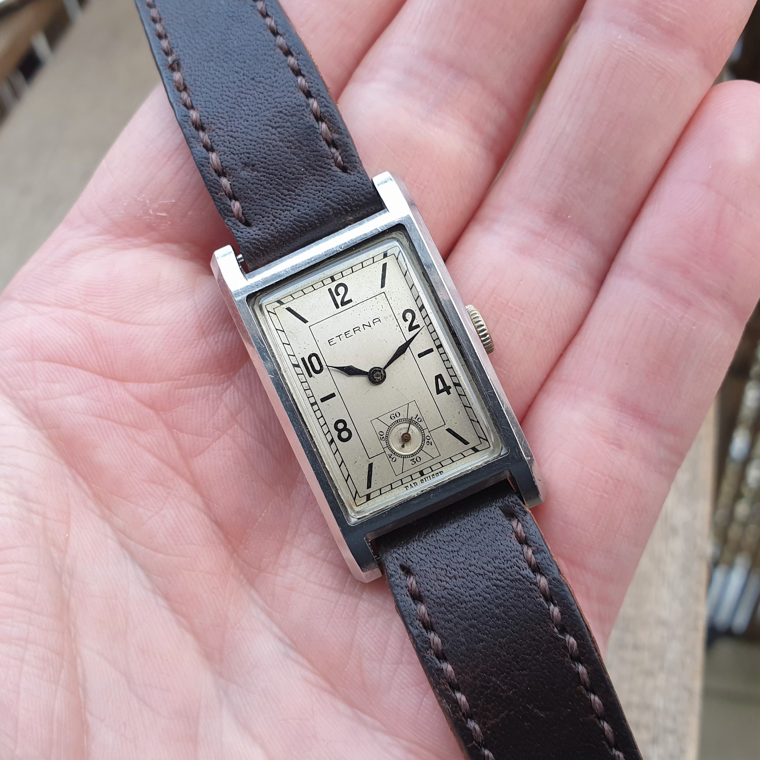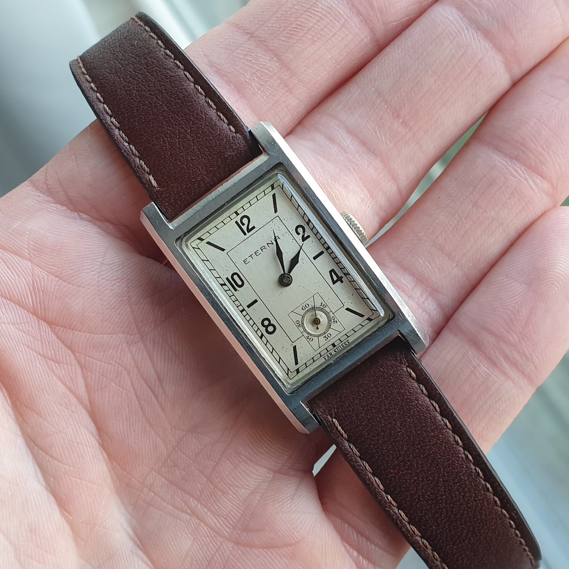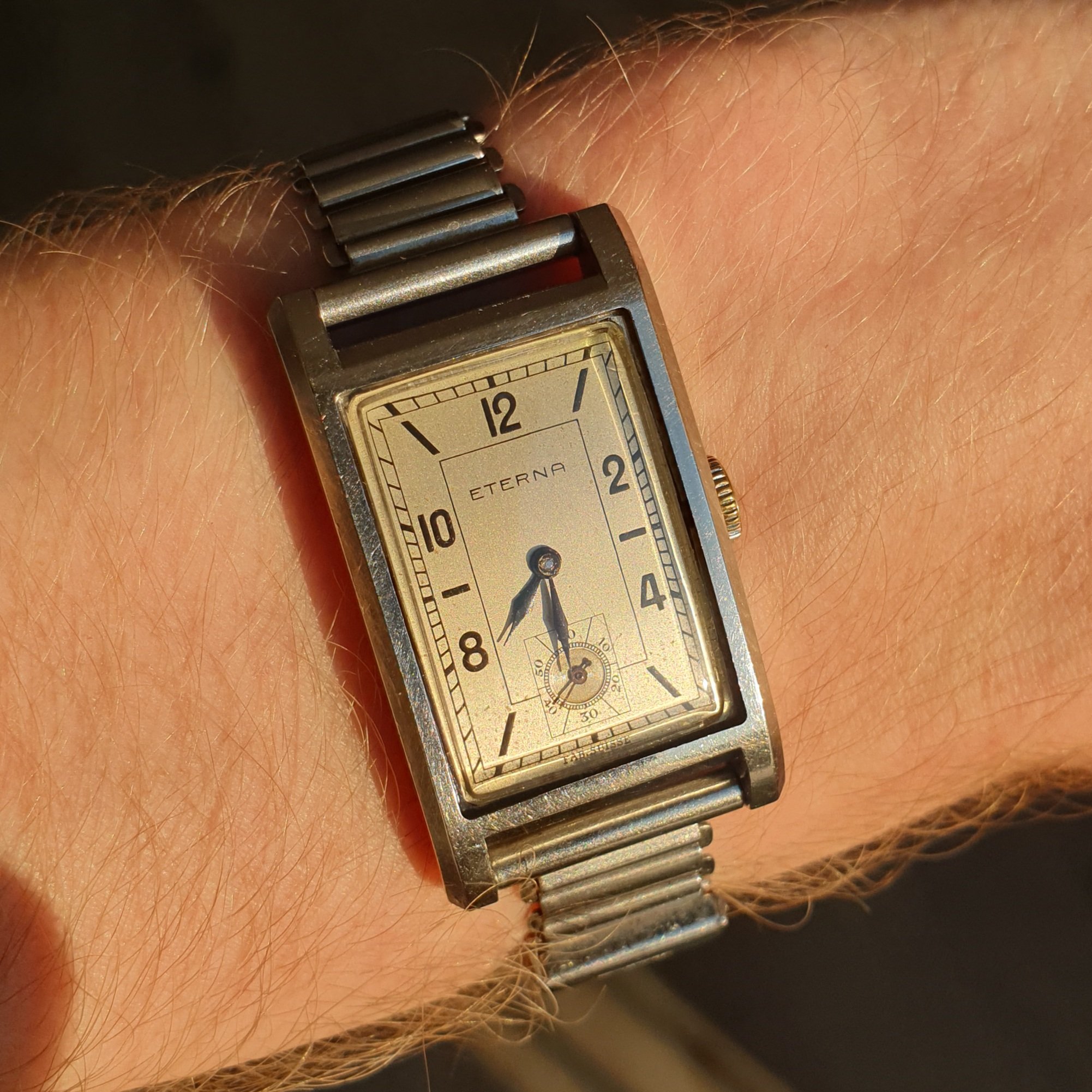 Up for grabs is my trusty Eterna with a great art deco dial. Do note this is a 90 year old watch, so its condition alone is a testament to the amazing quality Eterna produced back in the day (do excuse the fanboying!). The case is a clamshell variant, which should need no further introduction. Still, here's some background: https://www.vintagewatchstraps.com/blogCH189190.php