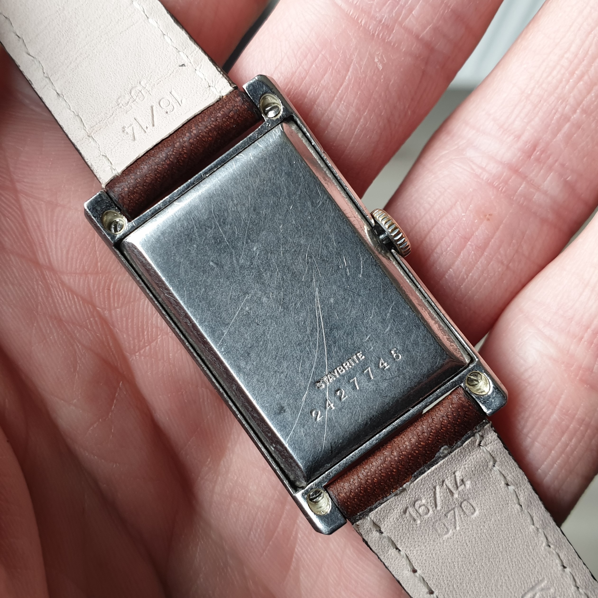 Did I mention Staybrite? That's right, solid Staybrite. No oxidation, no plating. Top notch quality, indeed, and its hefty weight when picking up the watch confirms that notion.