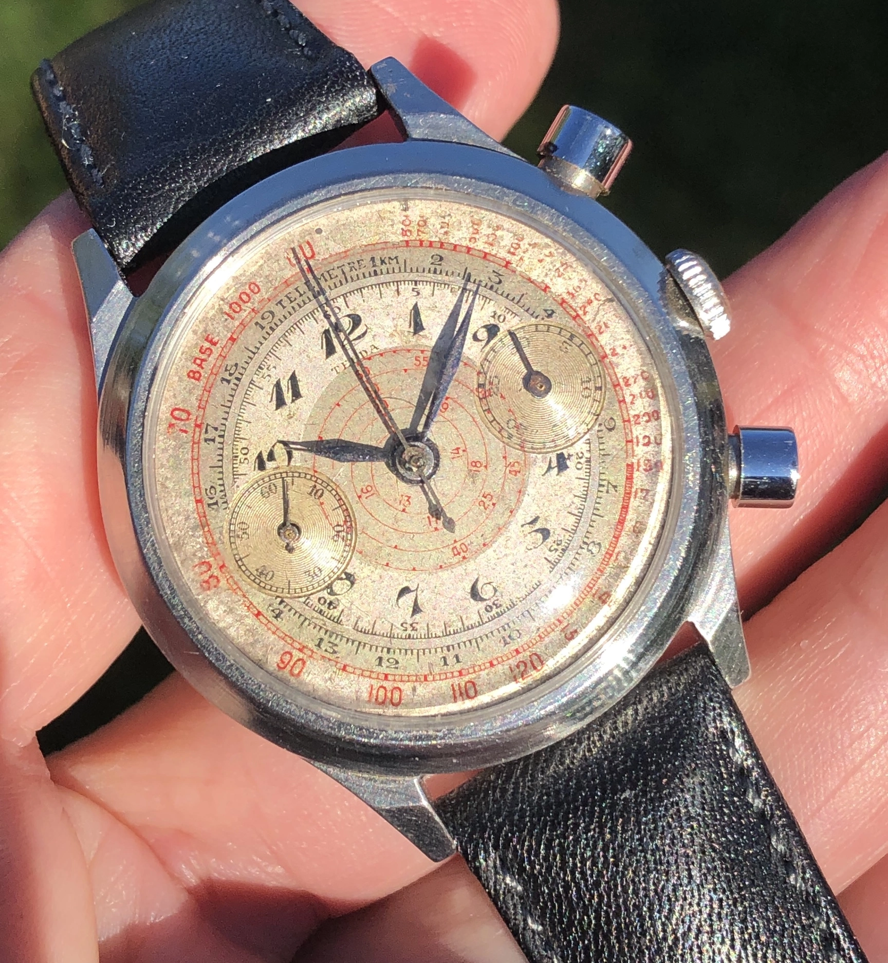 The lugs have lost the really sharp bent shape, but overall I like it. What's the size and what movement? Does it have Spillman markings, or just the style? I had this Telda Valjoux 22, which really looked like a Spillman case, but it was just in the style. It had no case-maker mark or the distinctive Spillman case-back engravings.