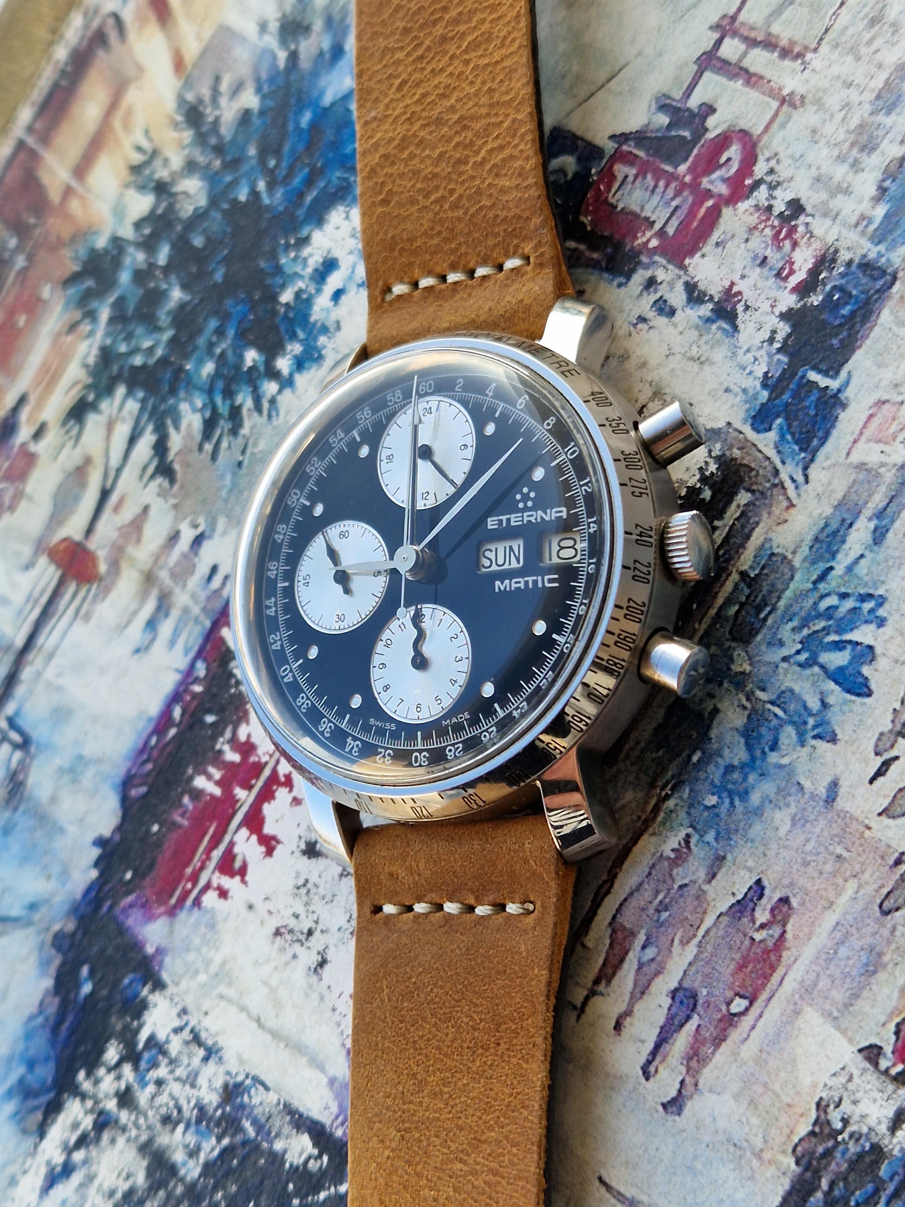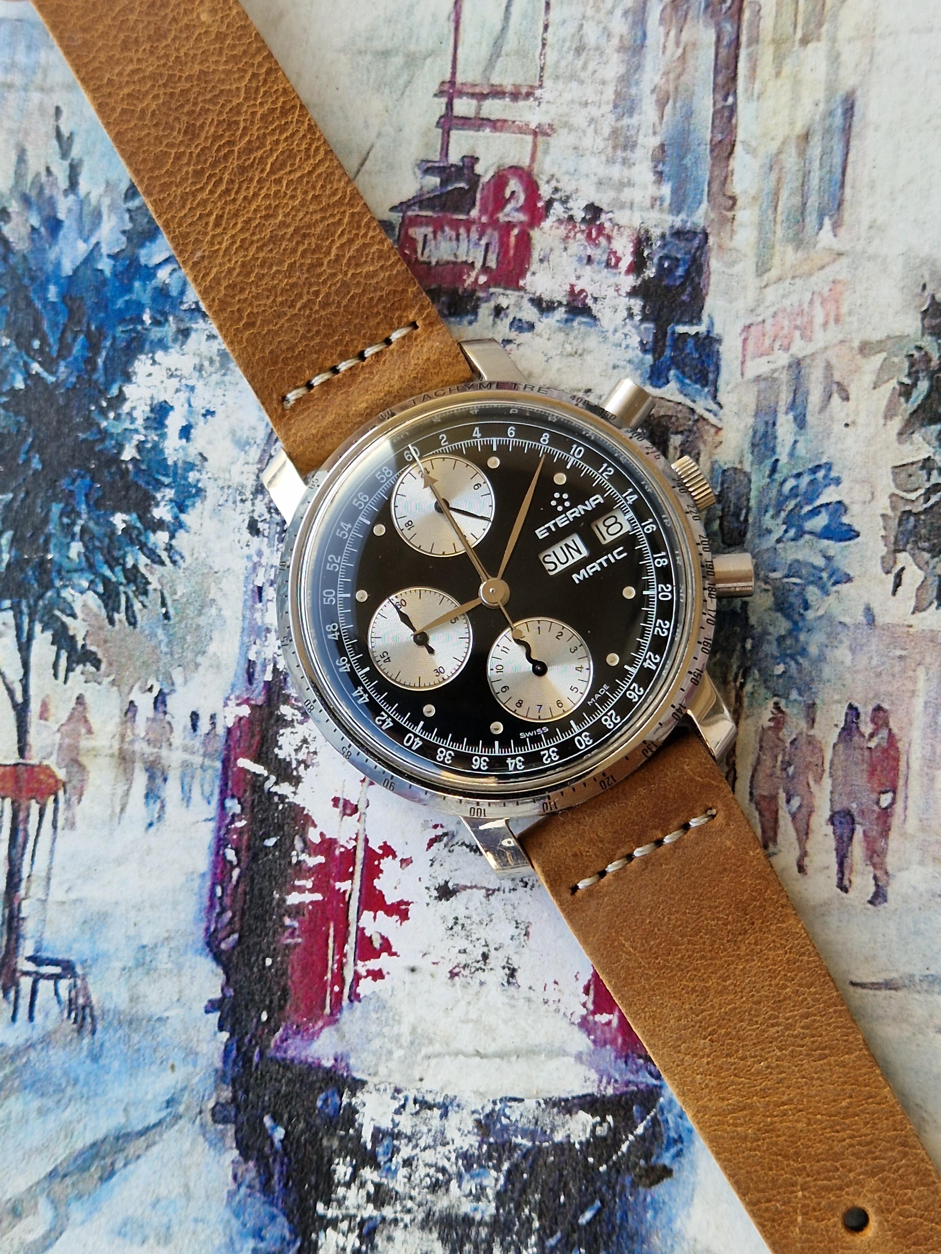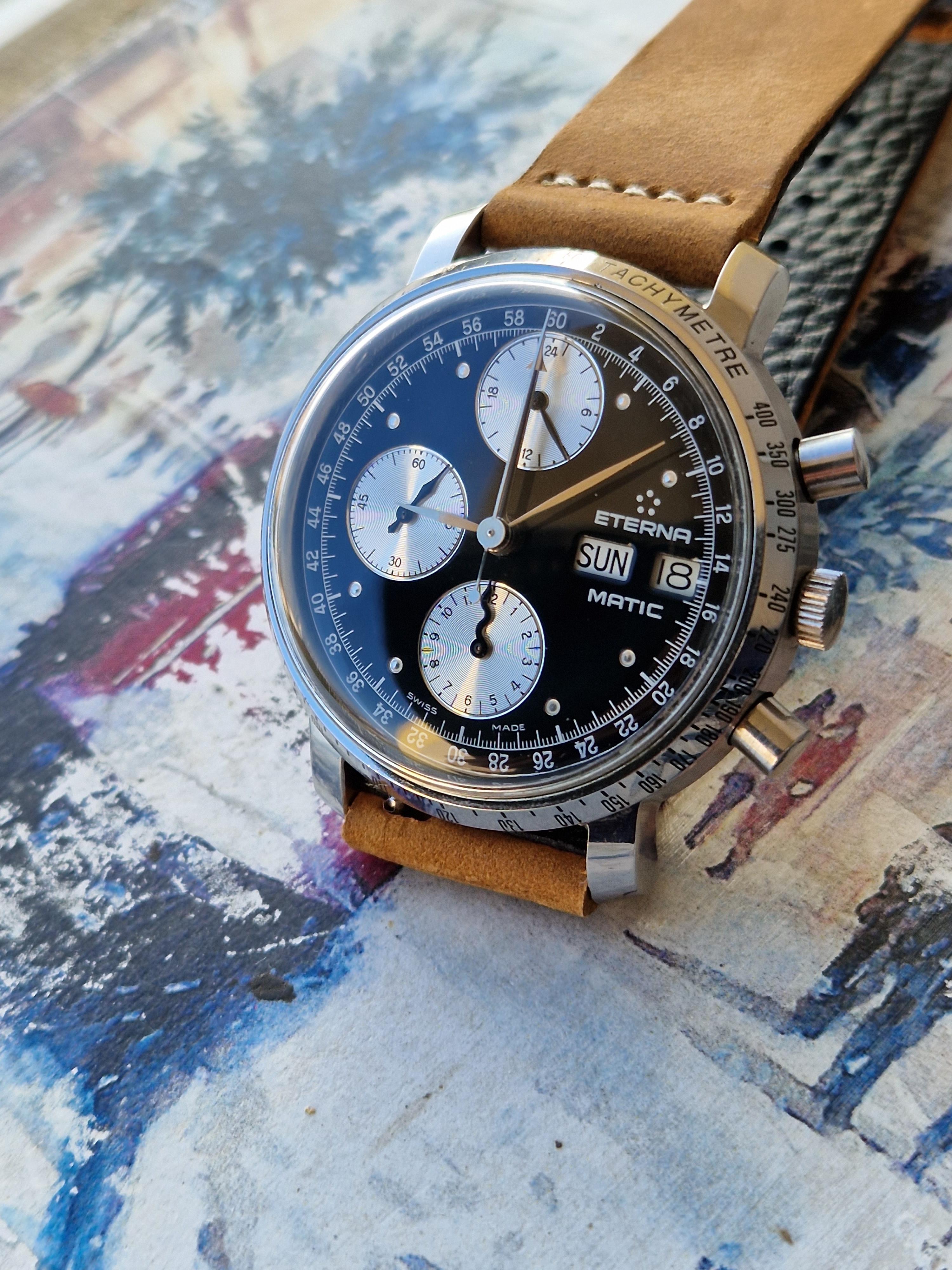 buckle is vintage eterna (I have purchase it after pictures) and strap replacement, new leather strap