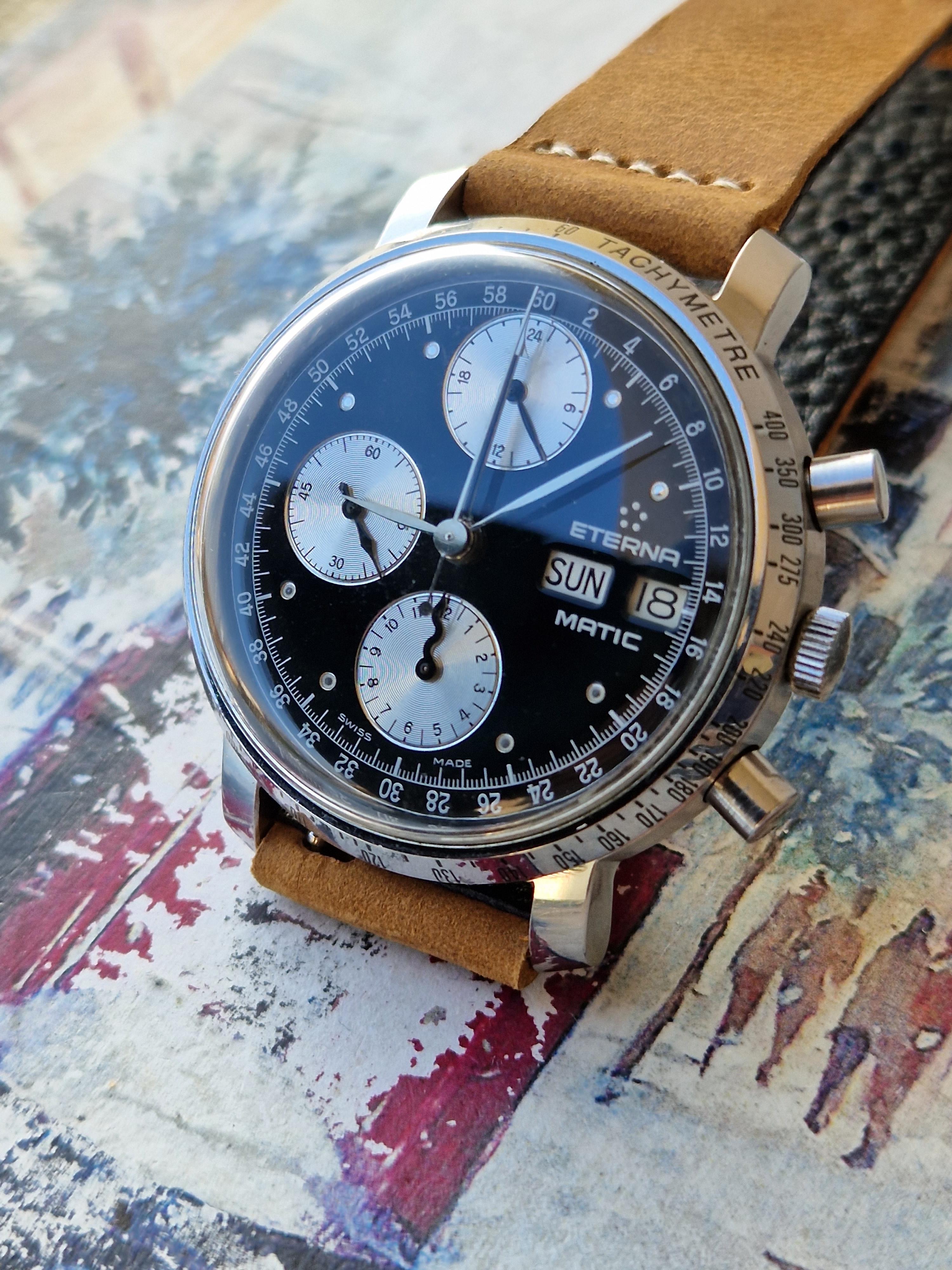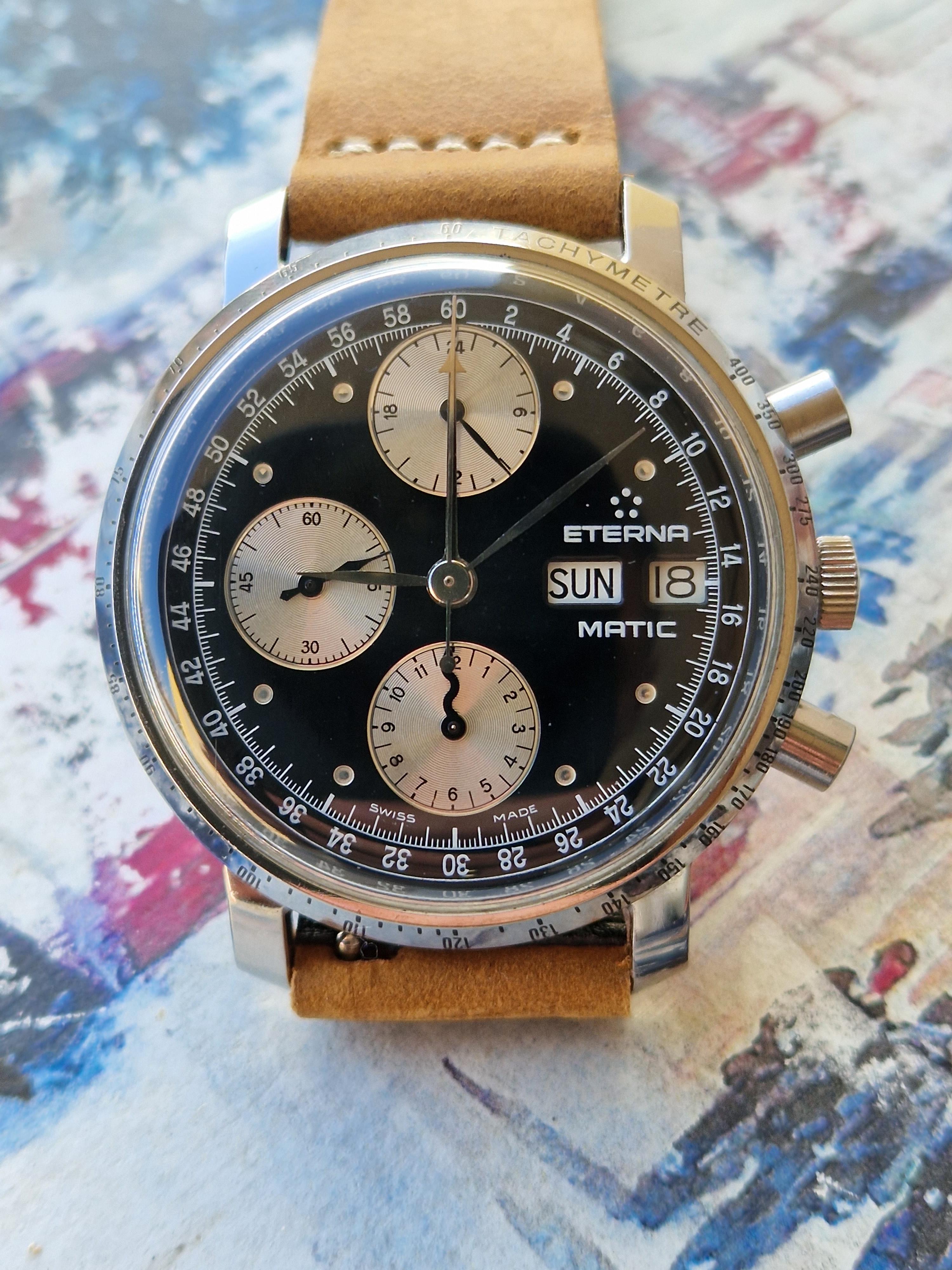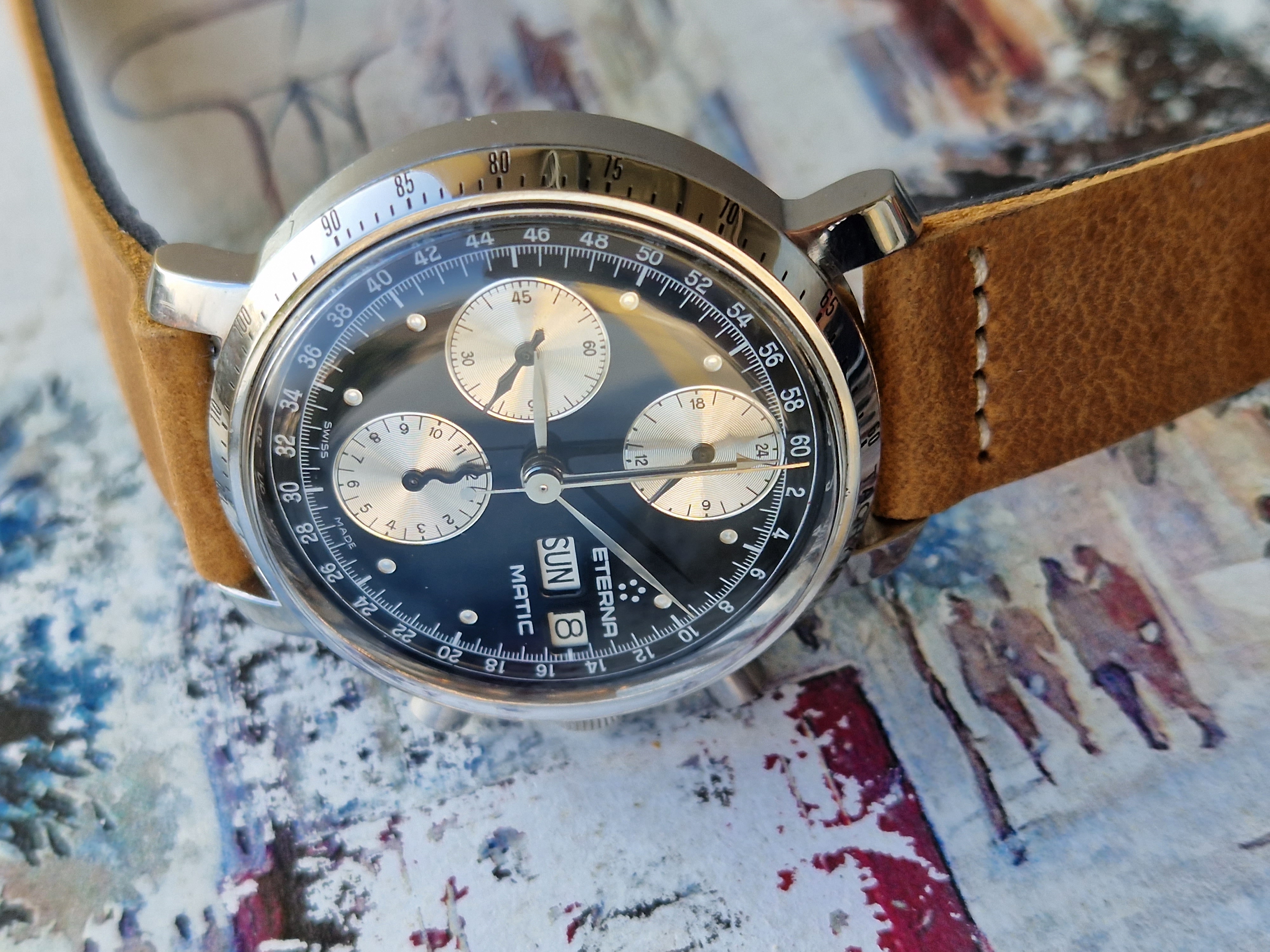 buckle is vintage eterna (I have purchase it after pictures) and strap replacement, new leather strap