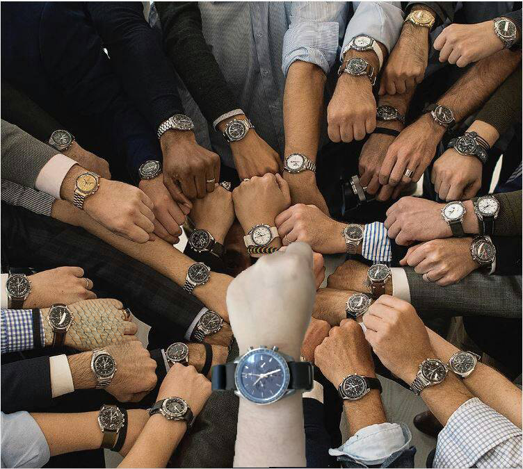 I find it so bizarre that only one of many people in this photo have lizard scale hands and why would a lizard even need to set his watch. Clearly some do, but most don't.