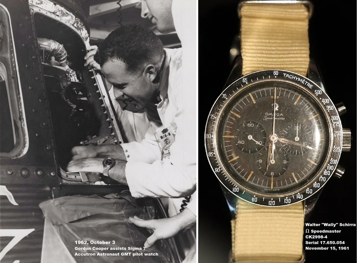 CK2998-4, movement 17.650.054, worn during Sigma 7, used for SCUBA diving, bezelless since 1965, last seen on his wrist in 1966.
