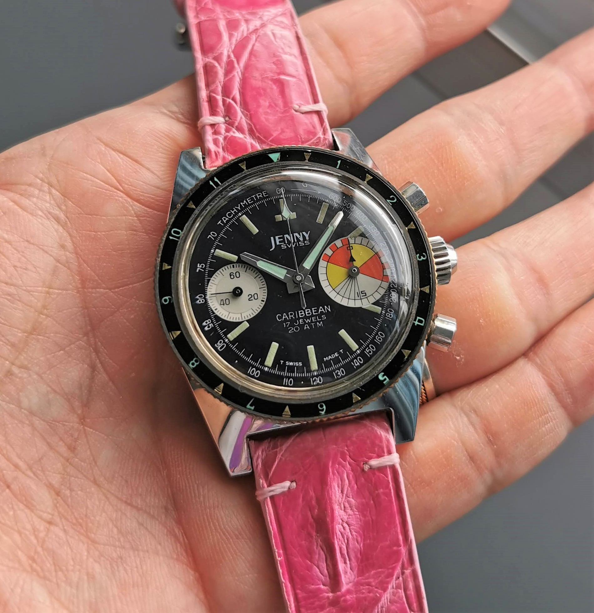 So it makes sense that I'm into these racing chronographs. Lately, I've been searching for ones with 'exotic' dials.