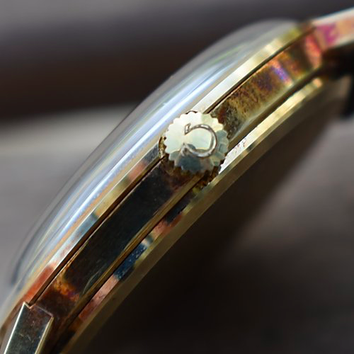 You may have noticed the tarnish or discolouration on the case. For those of you who do not what what tarnish is, it is when a thin layer of corrosion appears on the metal. Gold in its pure form does not tarnish but the metals added to it does. This watch is 14k gold by the way (you'll see this information when I show the opened caseback later).