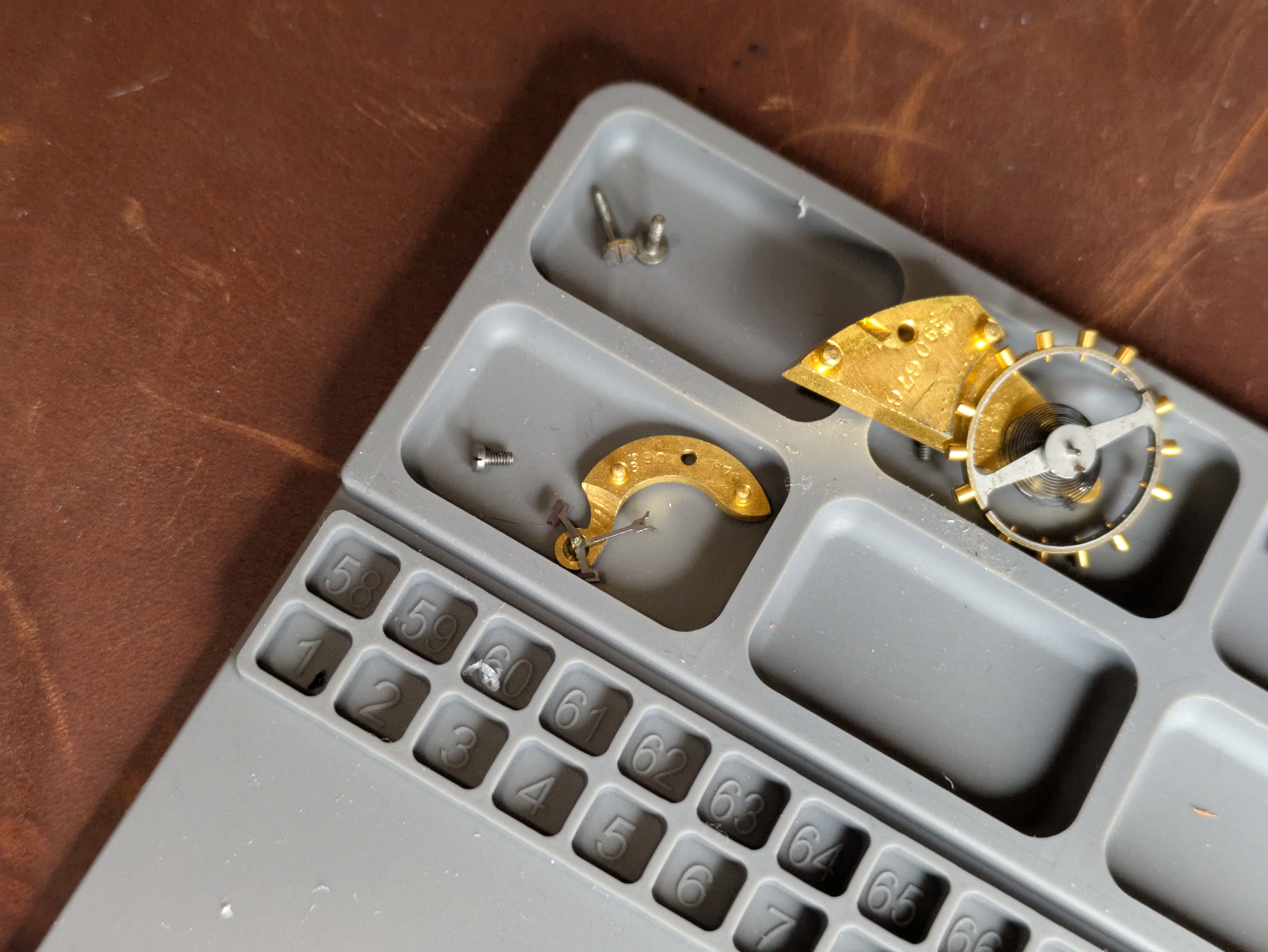 3- The replacement mainspring has yet to arrive (showing up Saturday after I leave!), so any replacement parts that would delay re-assembly can be ordered while I'm gone.