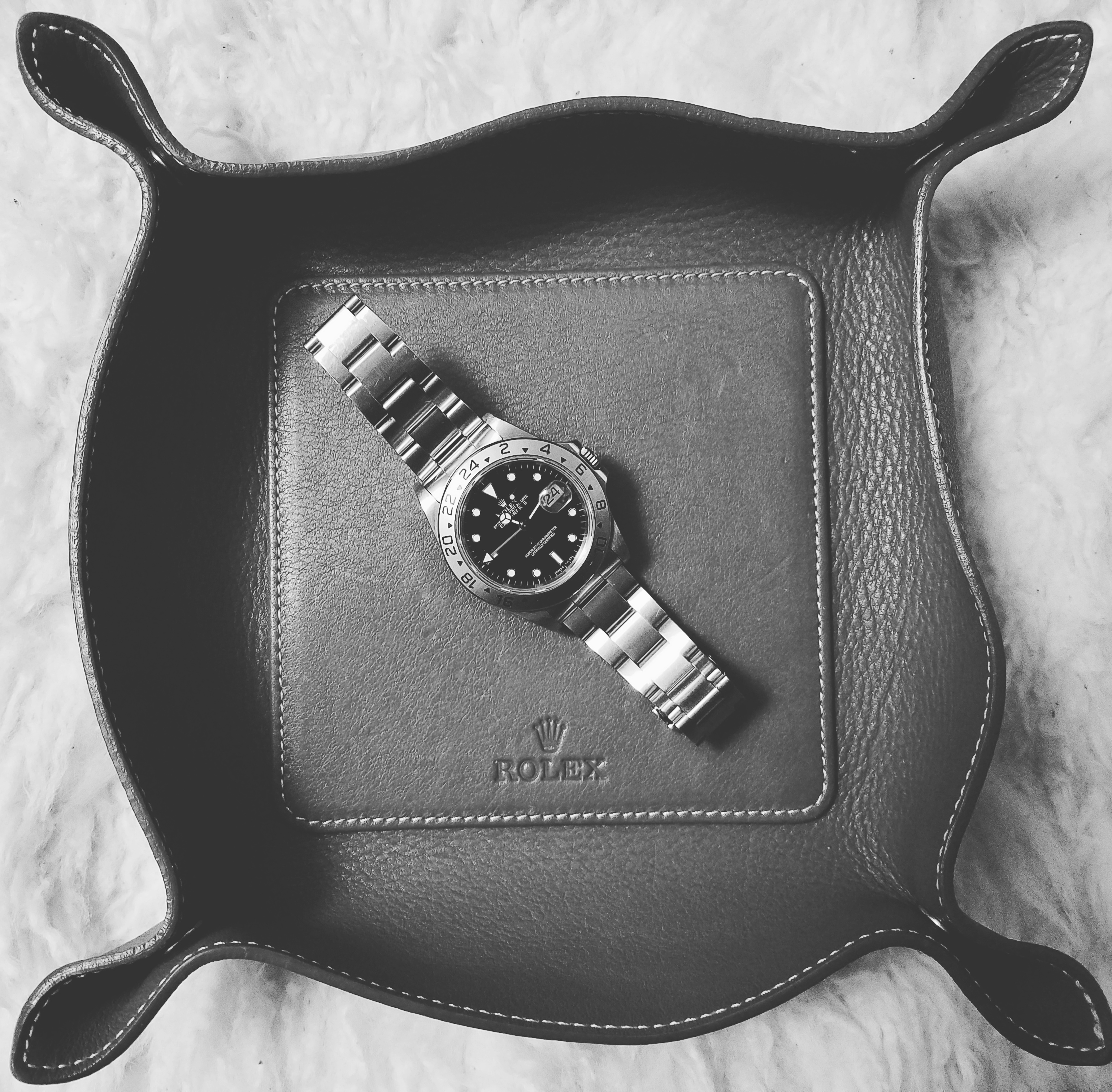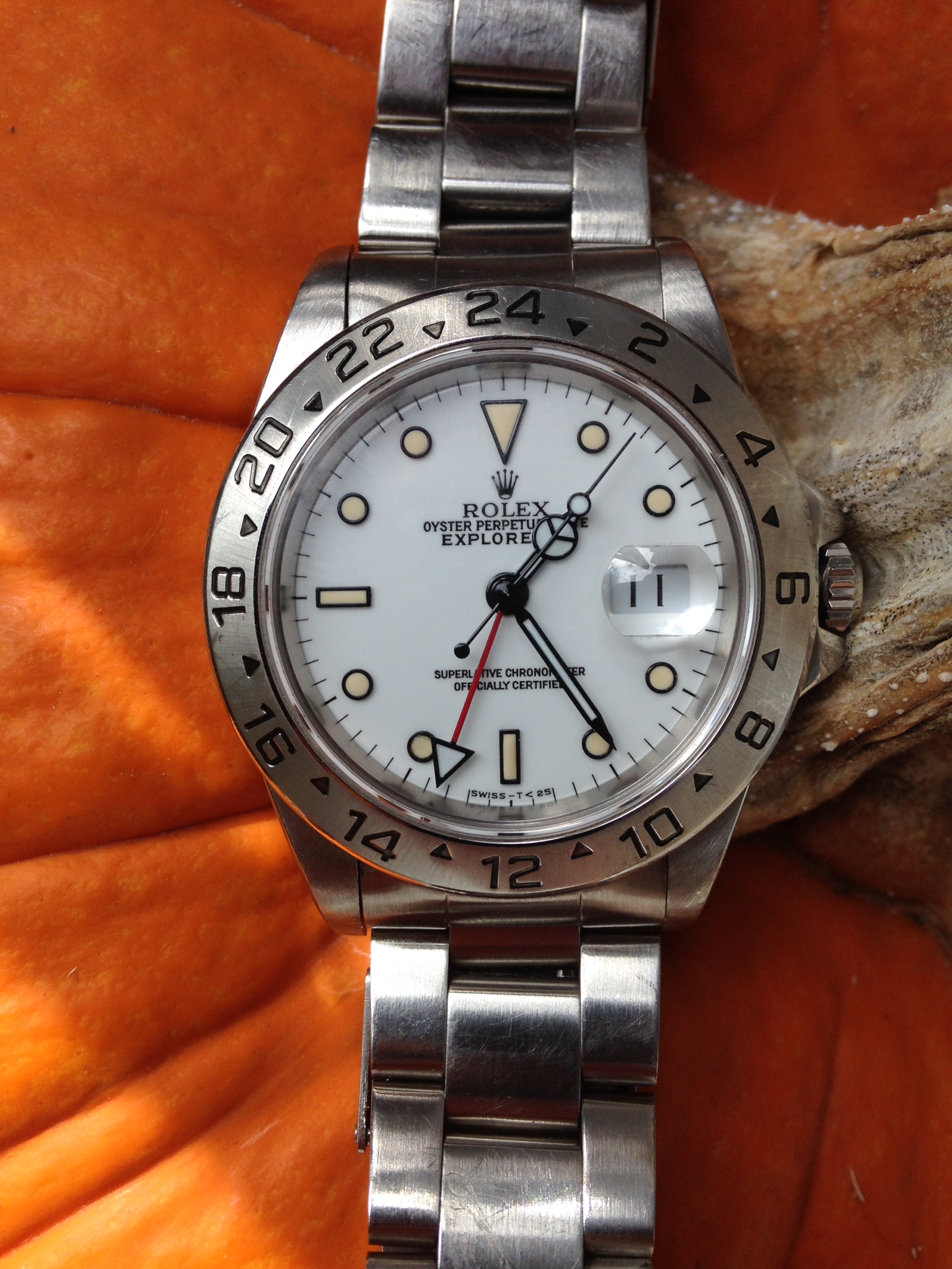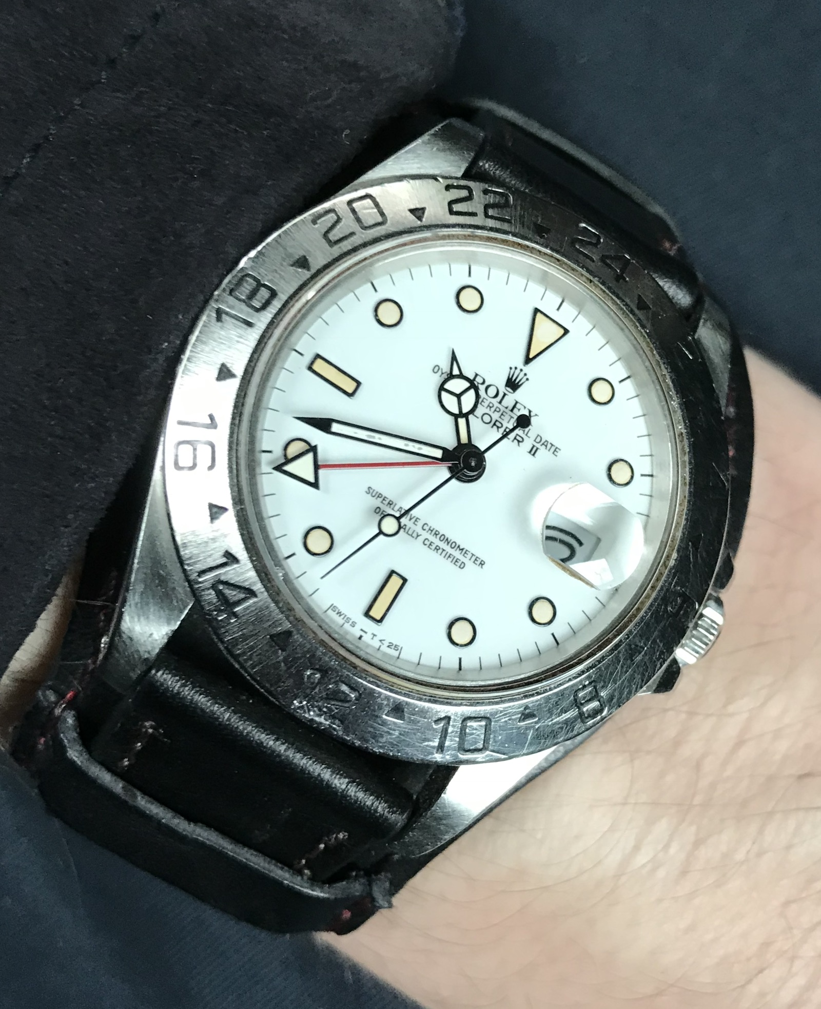 ·I love my Black Dial Explorer II. It's my weekend/knock around watch, I swim with it, hike with it, not concerned about scratching the bezel or bracelet. I love the matte center (non-polished) bracelet links. This watch turned me on to getting on the wait list for the new Deepsea D-Blue and Daytona Black Dial.