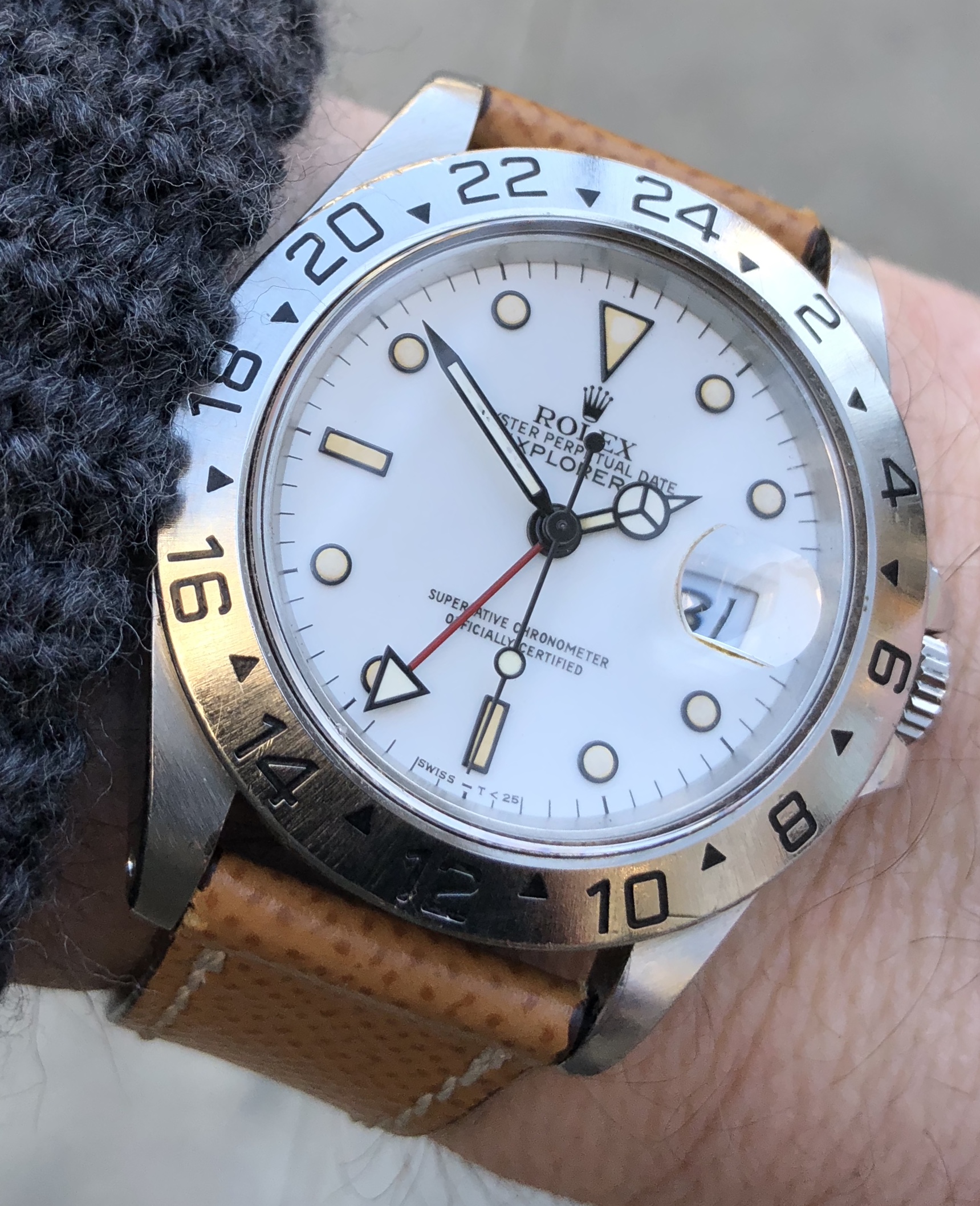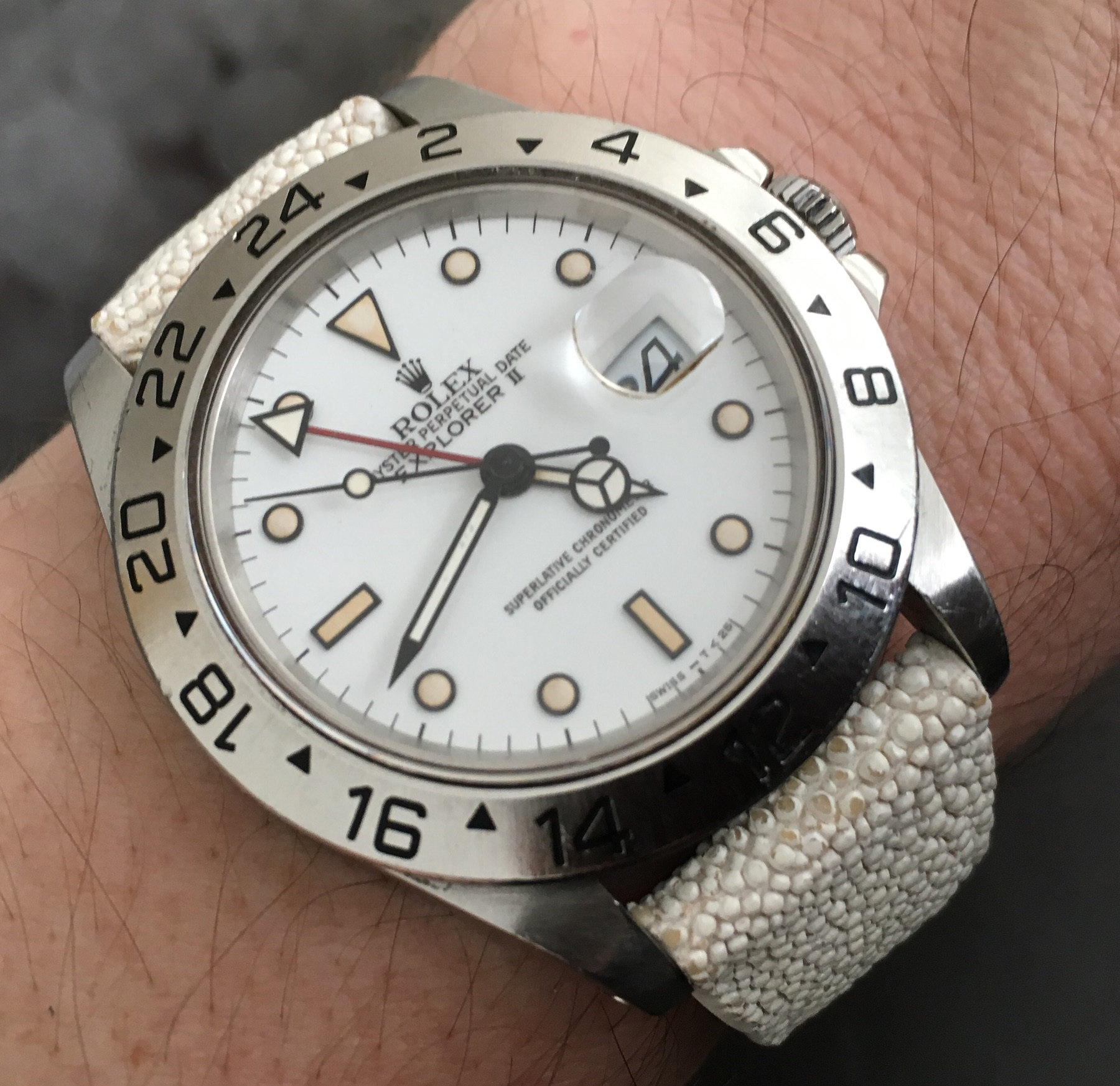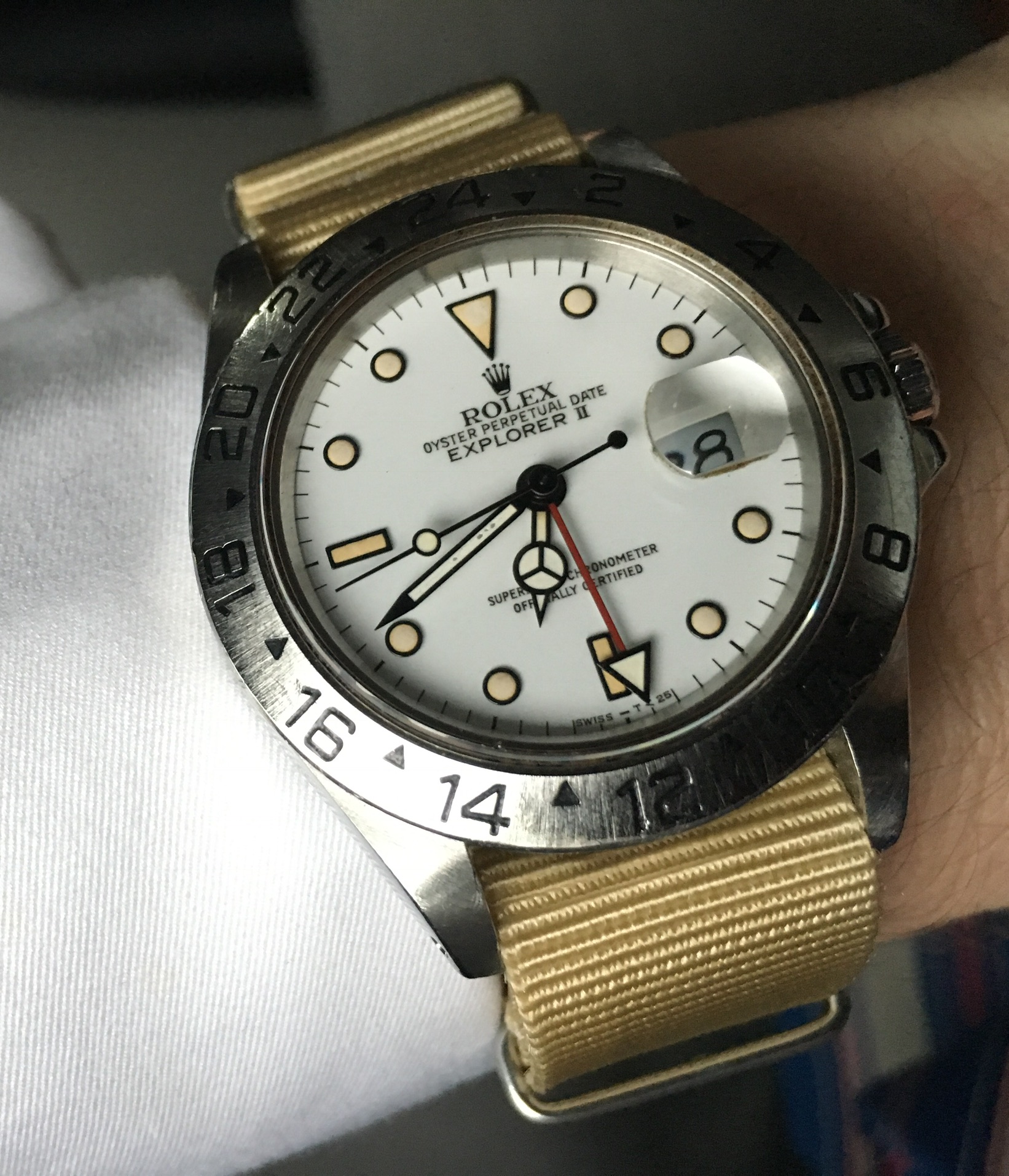 ·I love my Black Dial Explorer II. It's my weekend/knock around watch, I swim with it, hike with it, not concerned about scratching the bezel or bracelet. I love the matte center (non-polished) bracelet links. This watch turned me on to getting on the wait list for the new Deepsea D-Blue and Daytona Black Dial.