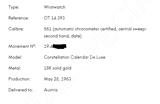 It is stated that it's a 18k Constellation Calendar De Luxe OT 14393 allthough it's a 14k Constellation 14393SC.