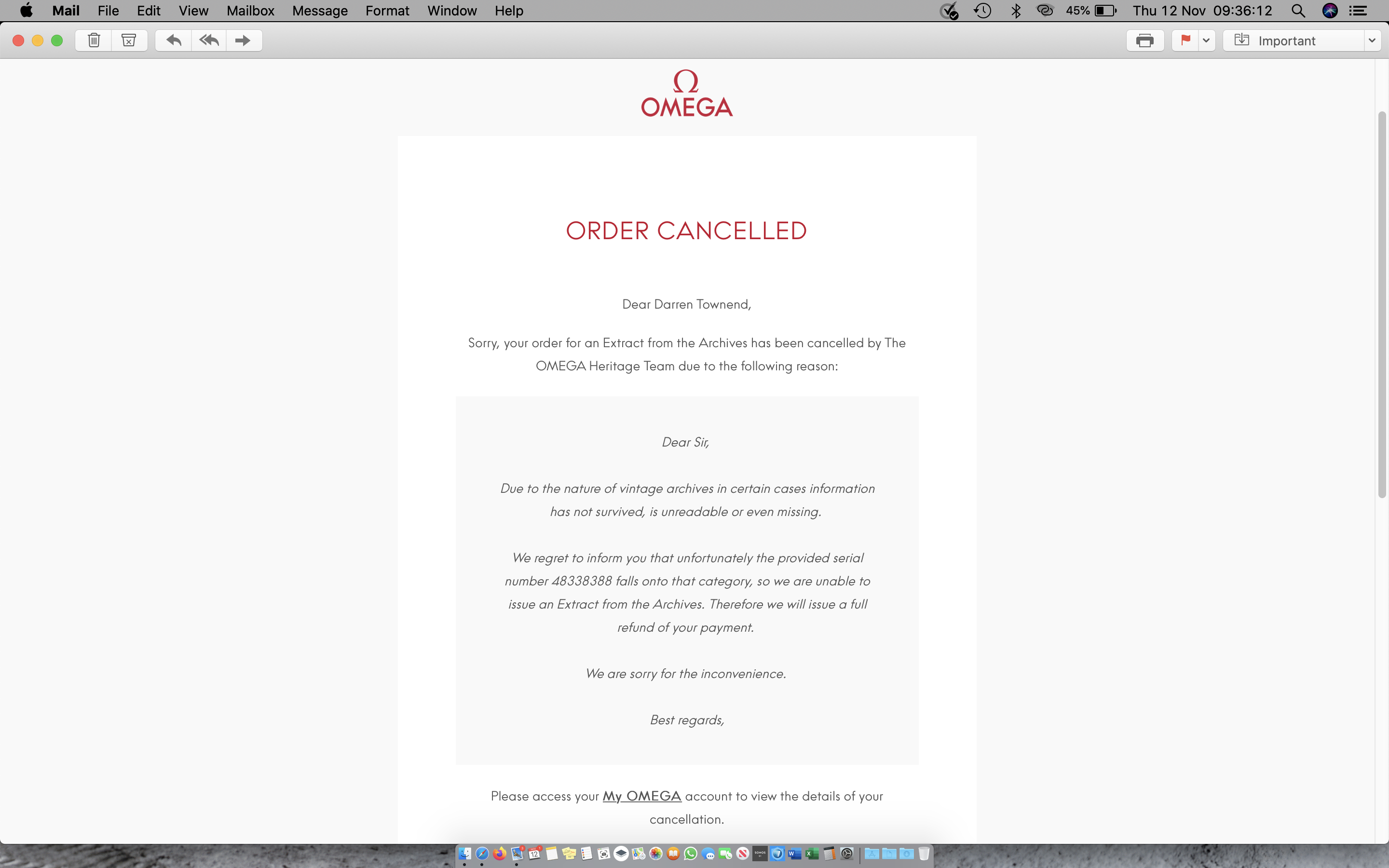 Just got the email from Omega - Extract cannot be issued by Omega. A refund will be given. I am happy to refund everyone as the funds are still sat in PP until the issue of the extract which we now know won't happen.