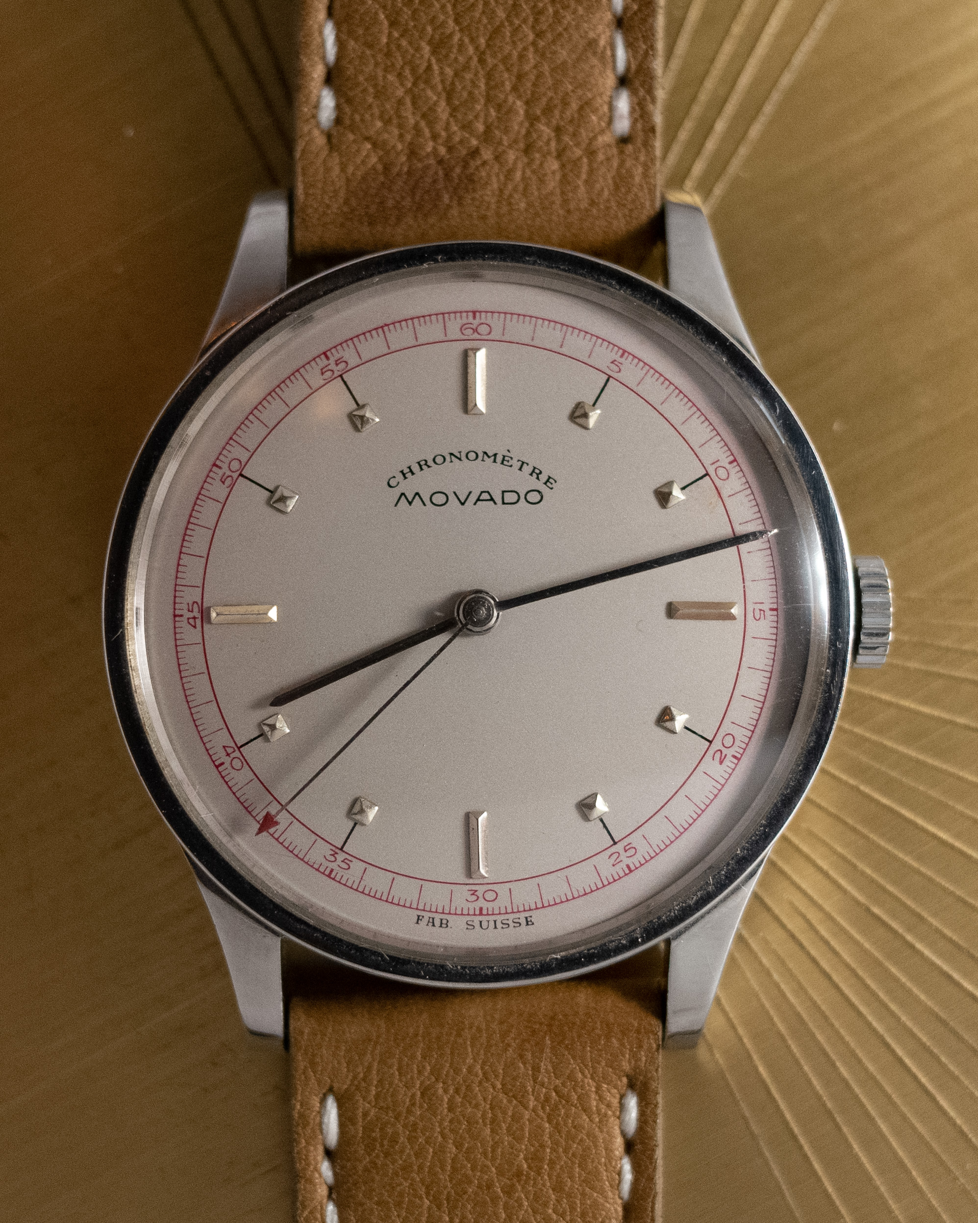 I haven’t personally seen another example of this dial, but I can say the same for a lot of other Movado dials from the period. Years ago when I was evaluating the watch, I do remember finding a number of other examples with pyramid style markers, the same fonts, hands and case. I’m pretty happy with it, and would love to hear your questions if they are coming from a place of expertise in vintage Movado beyond that of my own.