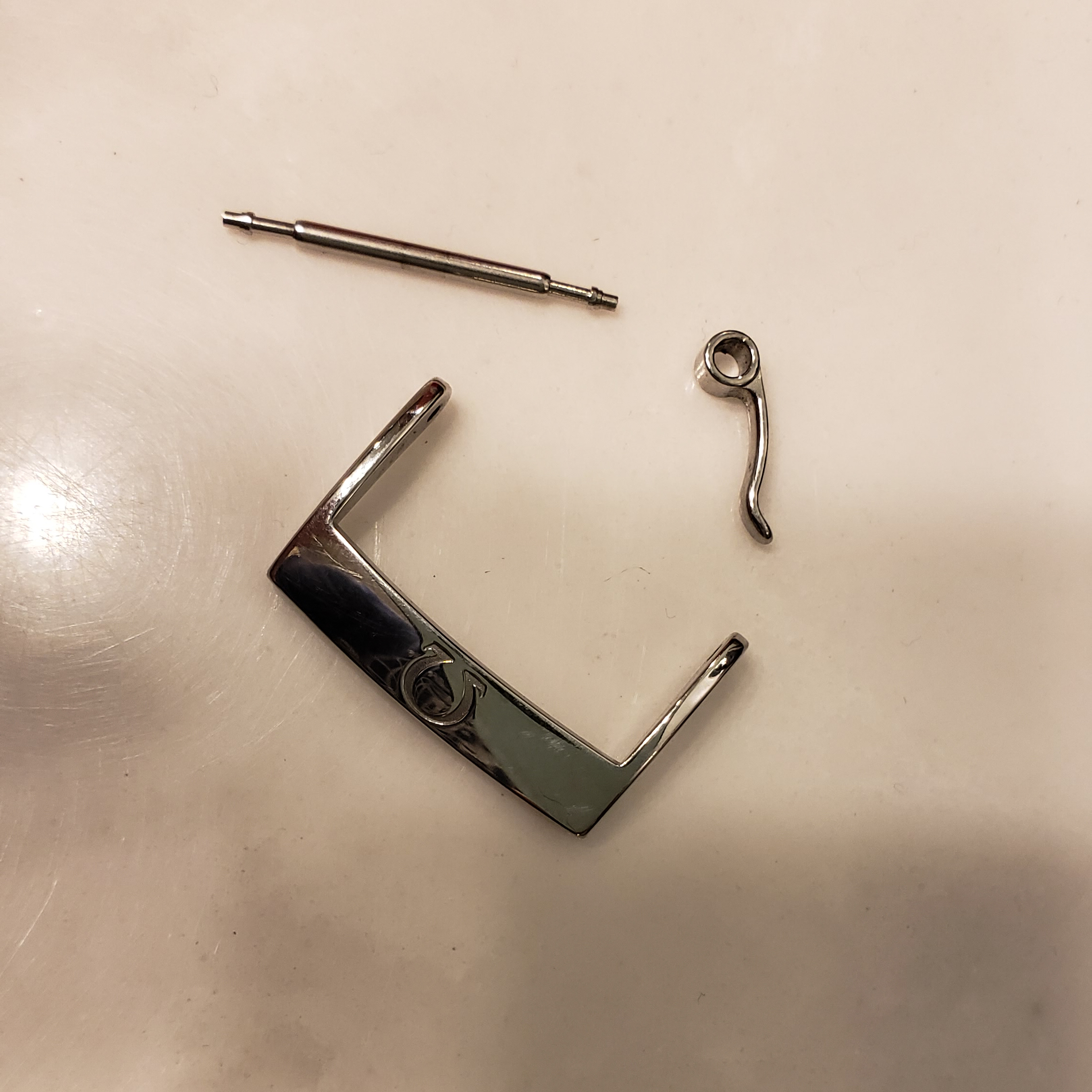 I purchased a fake on Ebay after purchasing the actual directly from Omega. I liked the Omega enough to purchase a spare and thought I found a good deal on Ebay. Nope! Here are the photos of the original and fake together. It should be noted that using a high powered magnifying glass reveals differences in the laser etching on the individual components. The Omega etching is a bit neater than the fake, but it looks like they are both done using a laser. I realized mine was fake after the buckle broke. The spring bar of the fake is obviously significantly inferior.