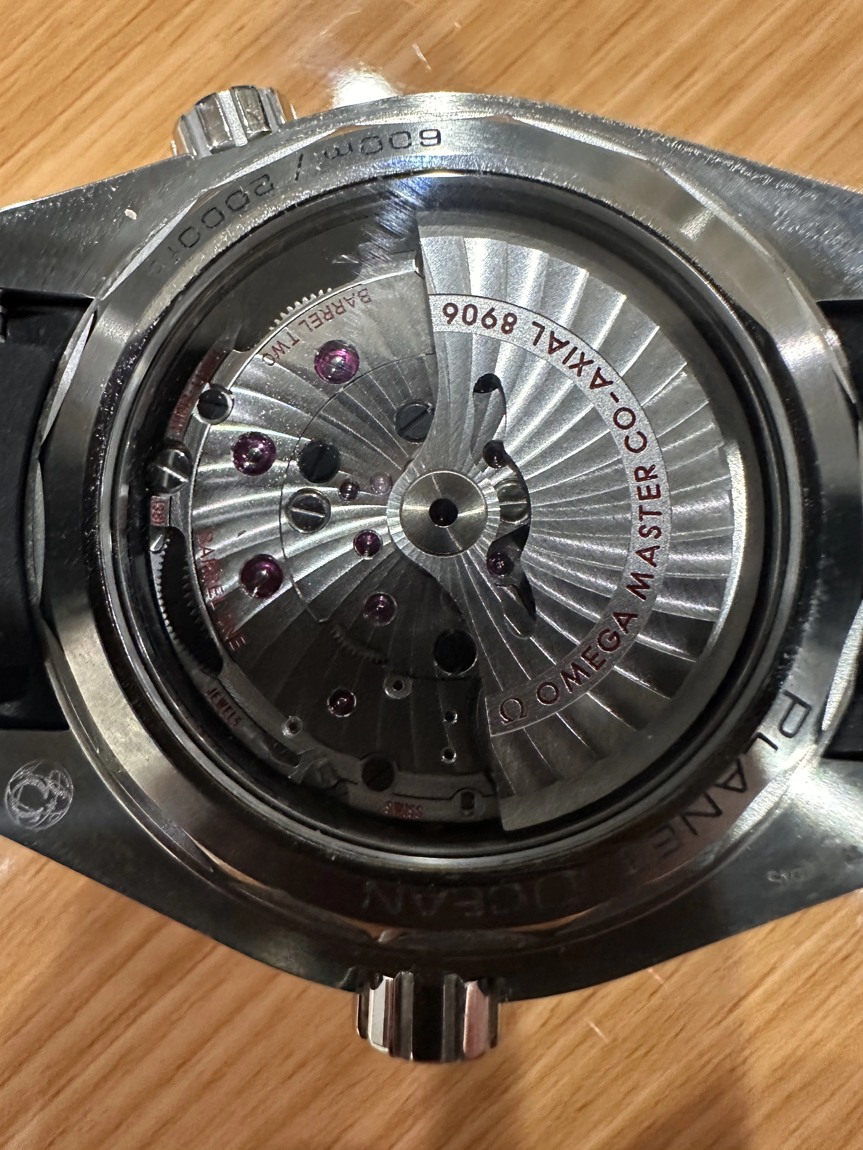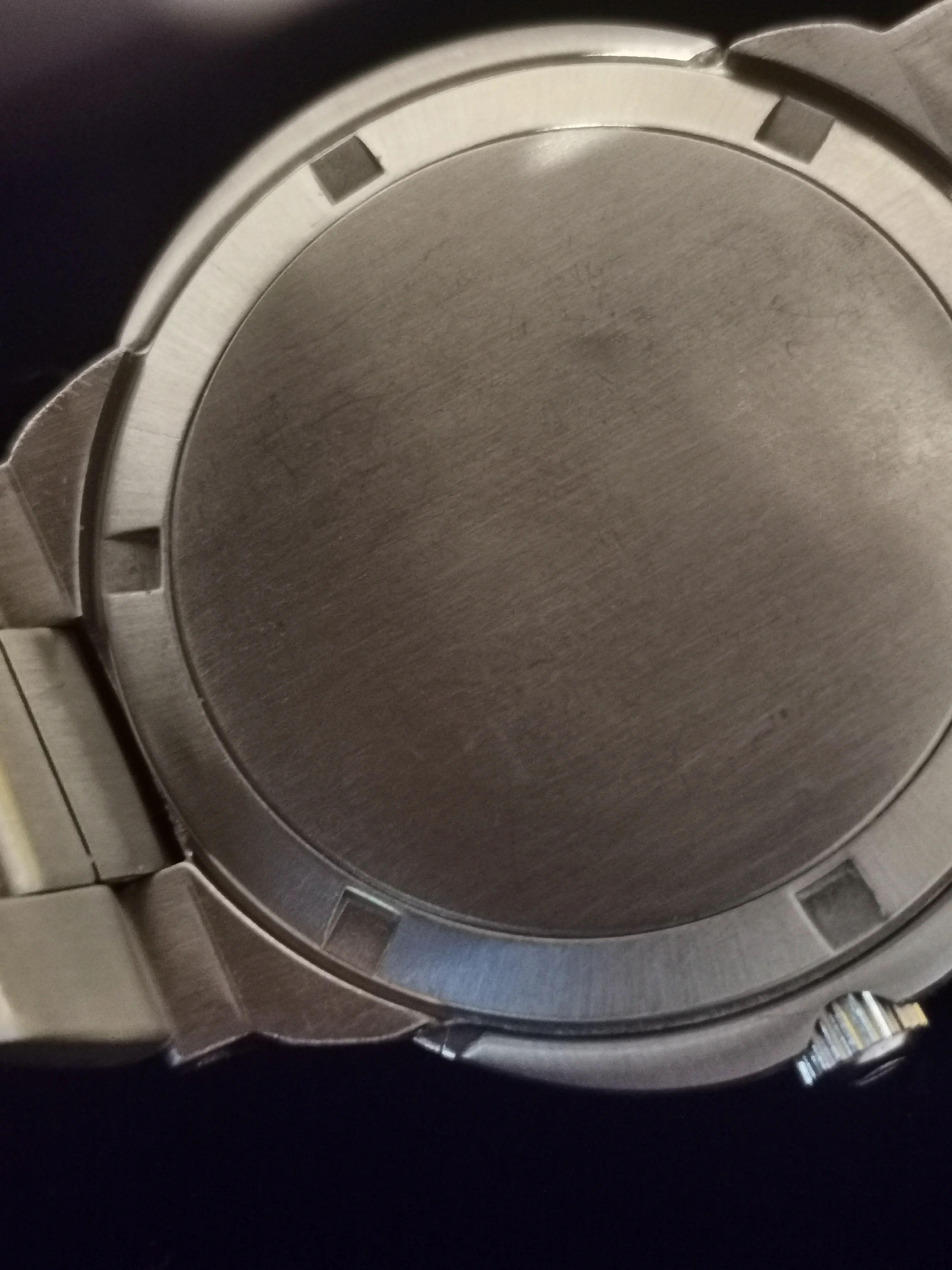 Hi, No markings at all on the outside of the case back.