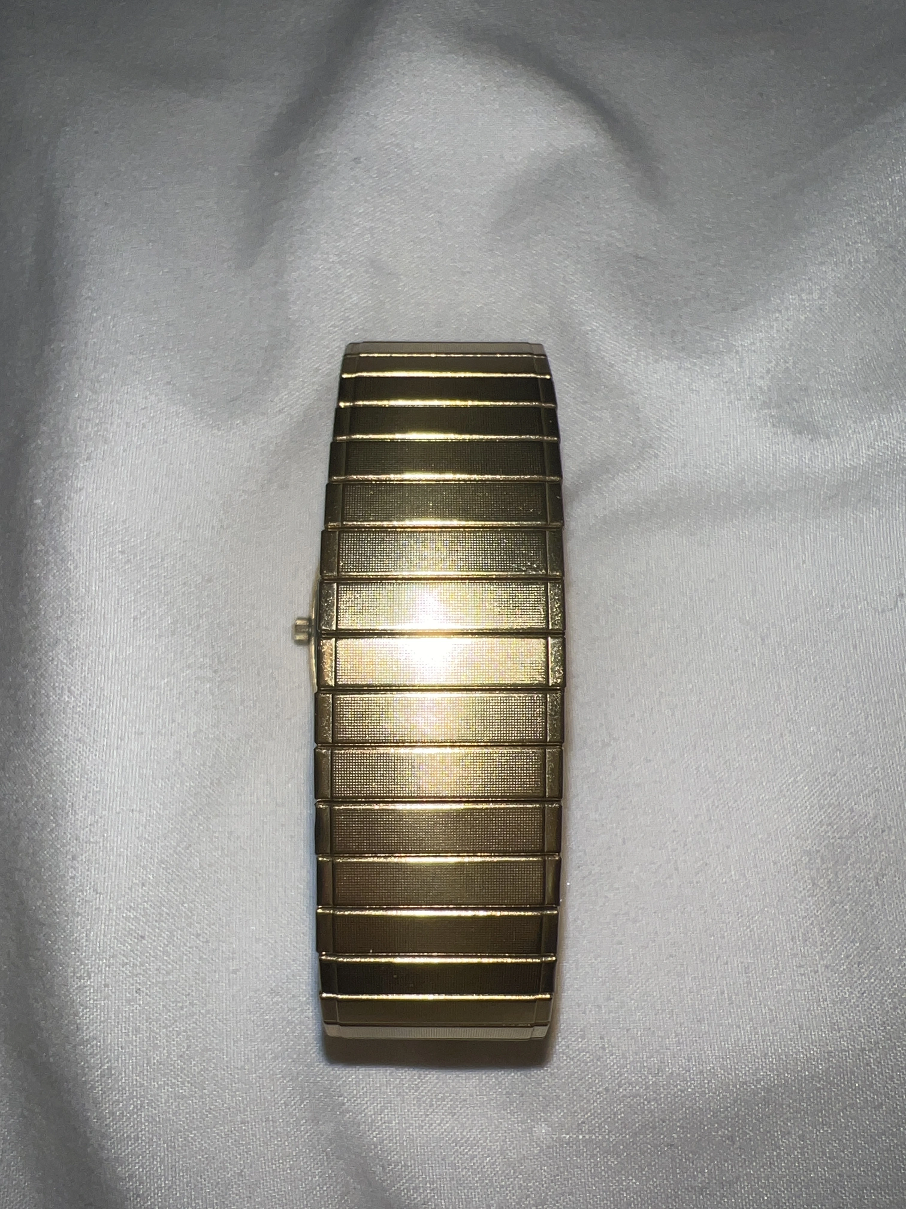 The watch itself has stopped so whether it needs a new battery or full repair (or if it’s unsalvageable) I’m not sure. Other than that there are a couple of scuffs on the gold around the face and a couple of scratches on the back by the bracelet looks to be in good shape.