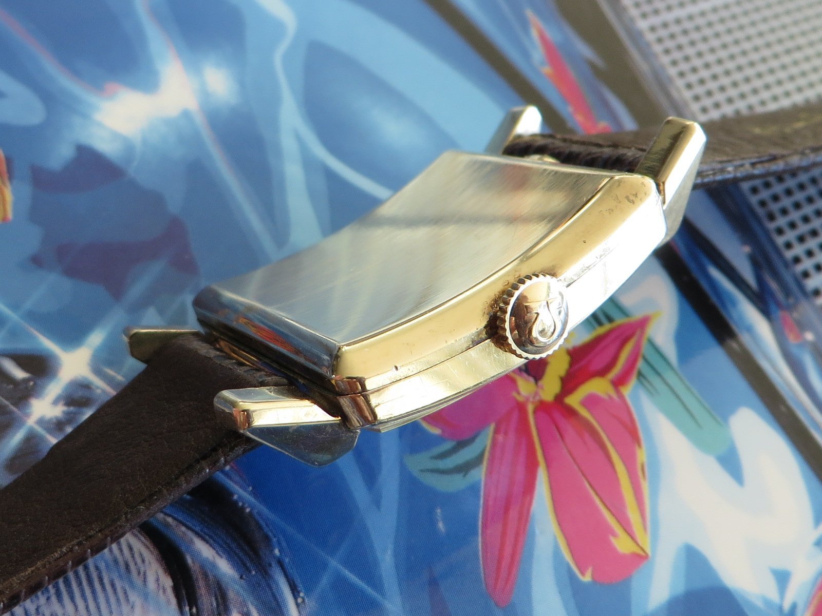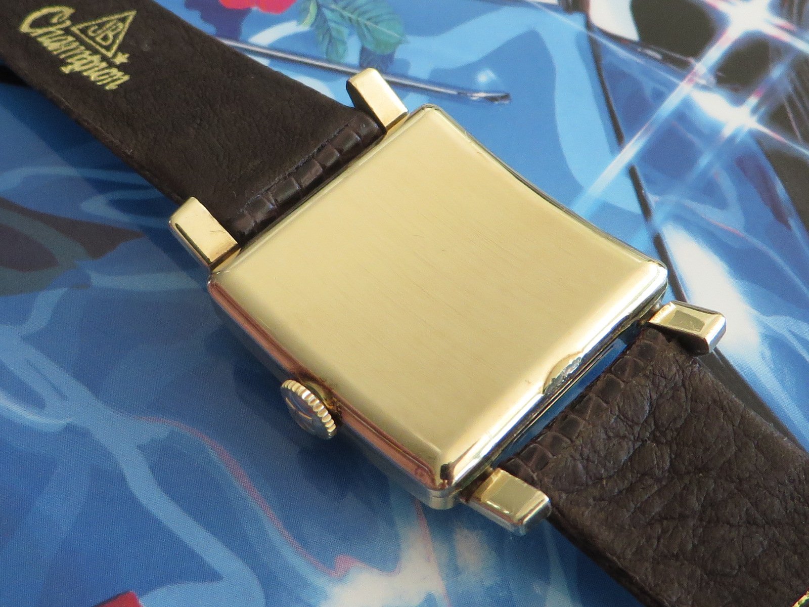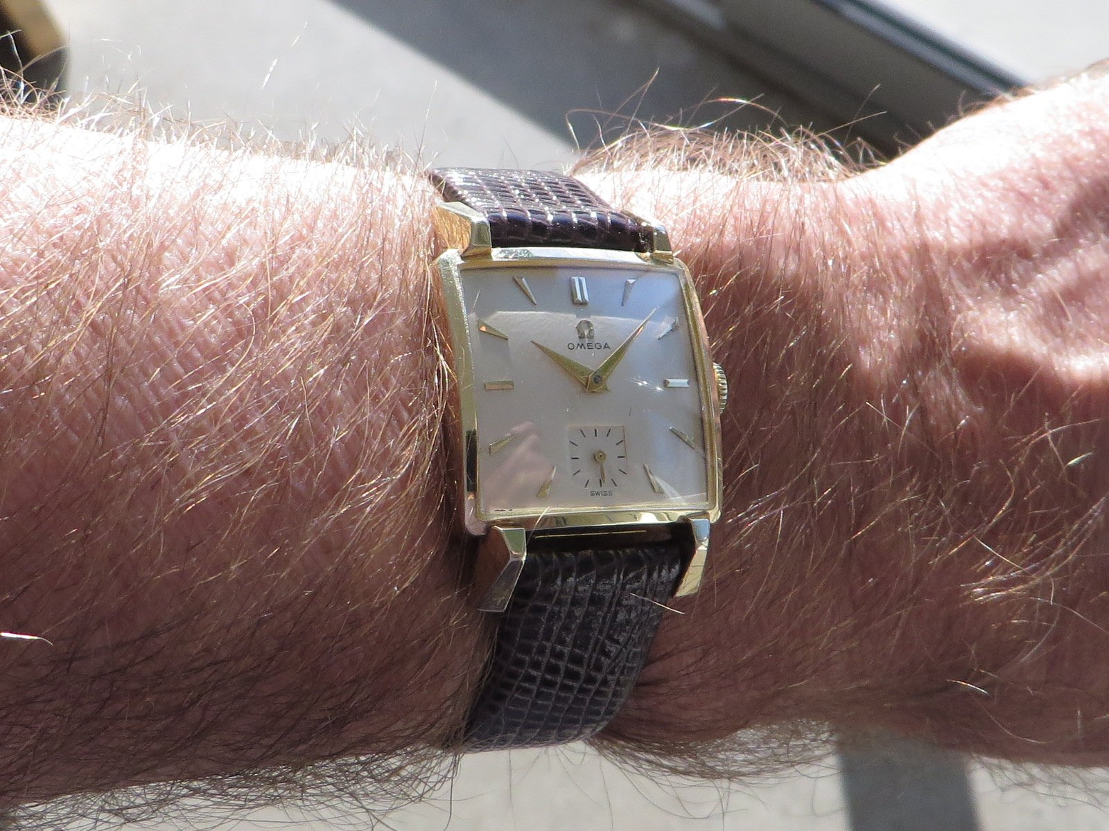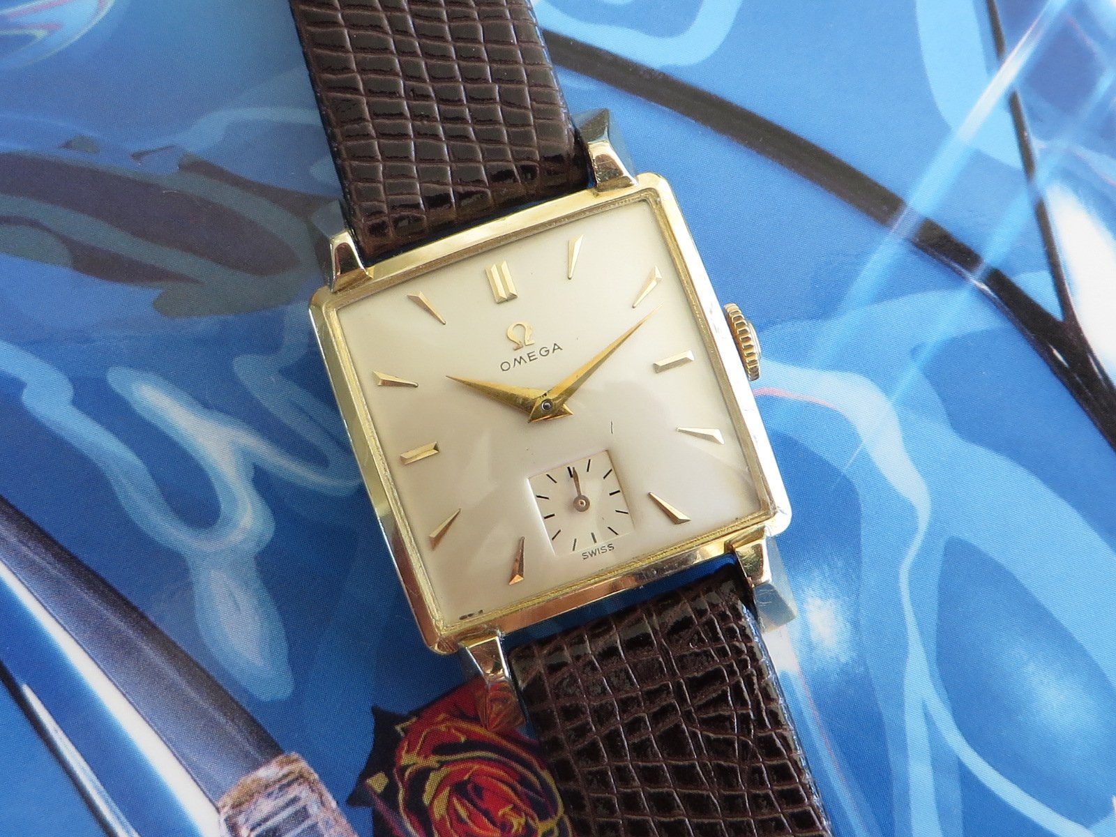 路路Vintage Omega AficionadoBeautiful reference N-6259 extra fancy curved back (think Gruen Curvex) 14K yellow gold-filled dress watch with double arched top and multi-faceted lugs. Nice crisp edges and the glass crystal is free of cracks or chips. Fitted with a vintage JB Champion lizard calf strap and includes the original red Omega box.