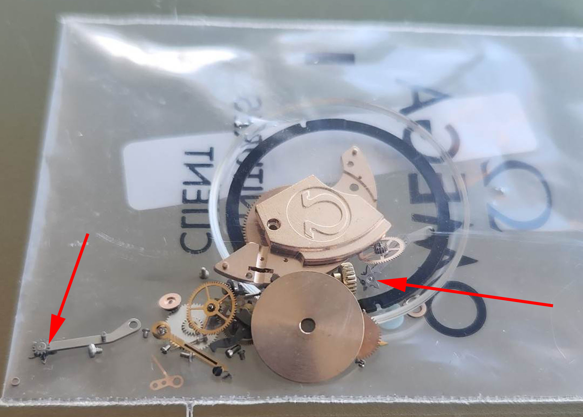 There are two of the same part (date corrector lever) in the bag of used parts...the movement only uses 1. 馃槙馃槙馃槙