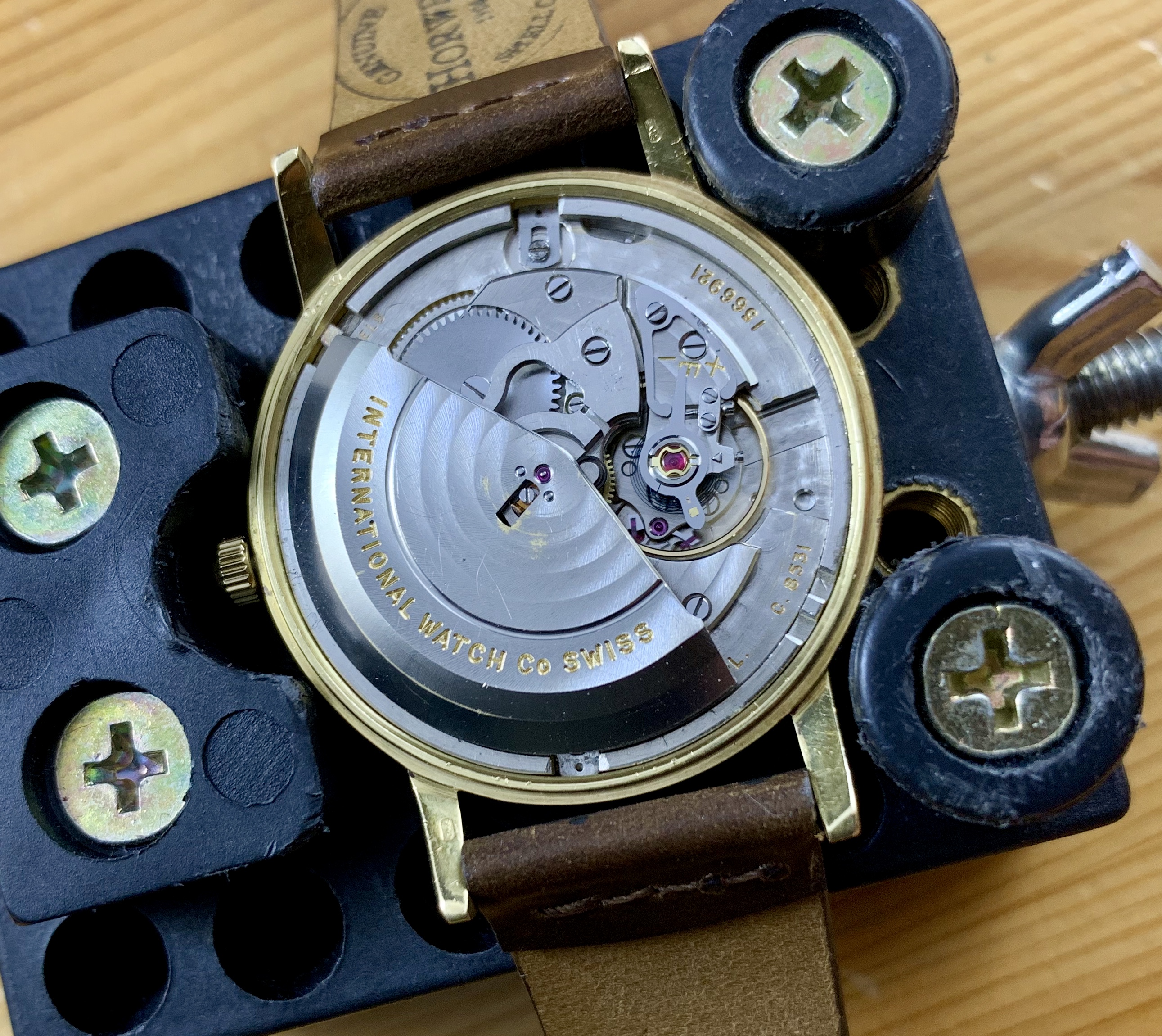 Inside is a 21 jewel cal. 8531 pellaton automatic movement. The movement was serviced by my watchmaker about 3 weeks ago - his inscription can be seen on the inside of the case back.