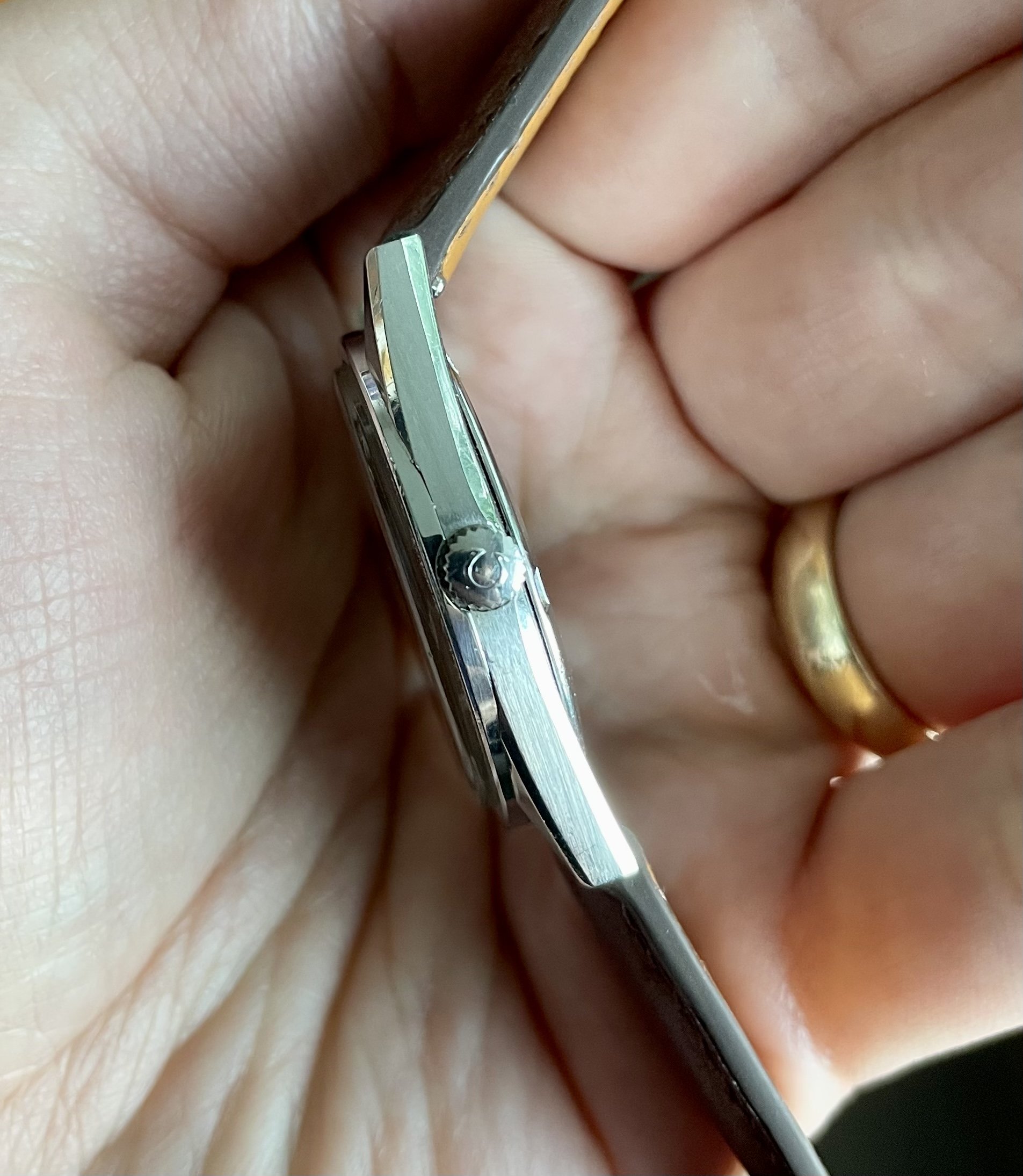Super thin design at approximately 7.5mm thick, 33mm wide not including the crown, and 19mm between the lugs.