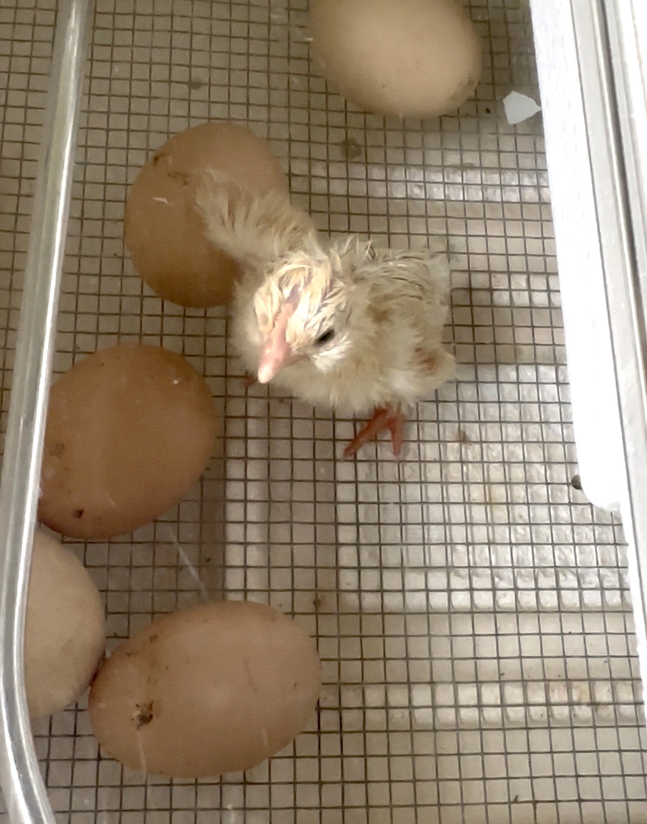Update on the chicks. 9 of the 13 hatched, one passed over night leaving me with eight energetic chicks. Feisty little things. Probably end up with 8 roosters 😁