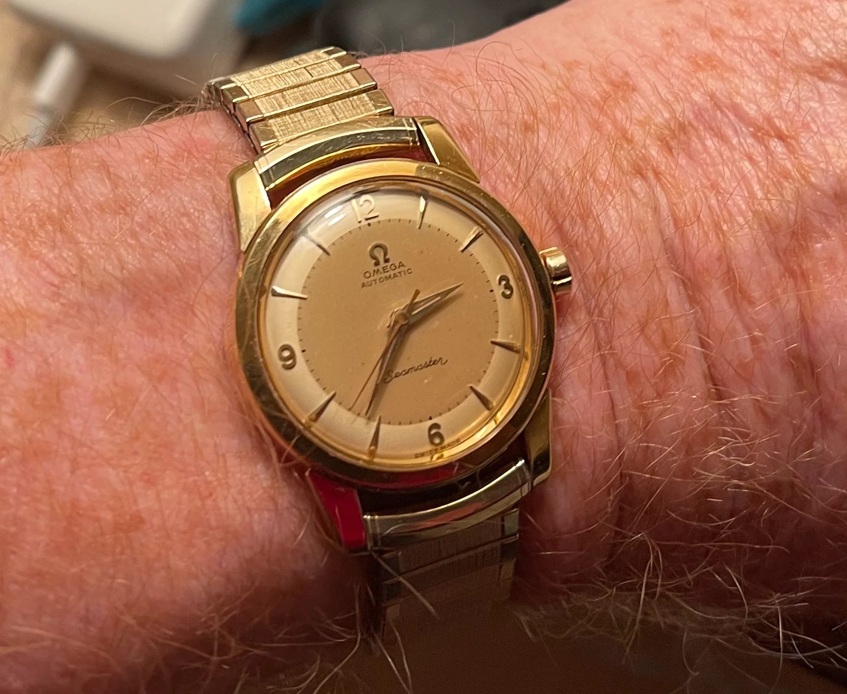 ·So I was visiting my father-in-law and he says - "You know, I purchased an Omega watch while I was in the service in 1962." I asked him to show it to me. Wow, box, hang tag and the watch is in incredible shape. He wears a Rolex DJ so this one just sits in his drawer. I would have loved to buy it from him but it was obvious that he still is emotionally attached to the watch even though it just sits in his dresser. Cool watch. I have no idea if it is considered rare or not. It doesn't matter, he likes it. Still runs, never serviced.