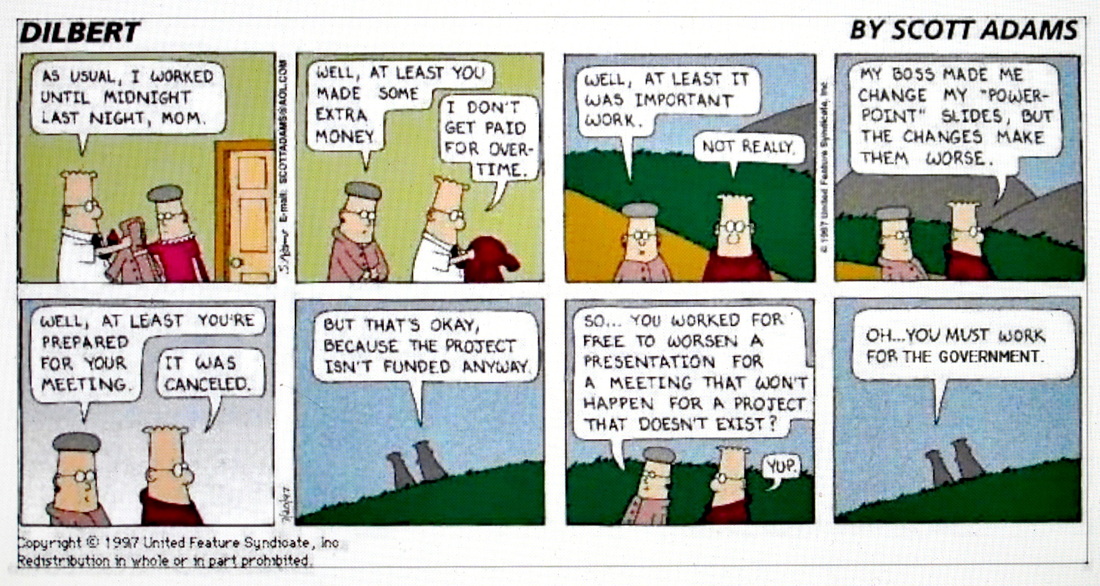 You could always gauge the level of morale by how many Dilbert cartoons were posted on someone's cubilce wall. If one of them was circled, you'd better tiptoe out of there.