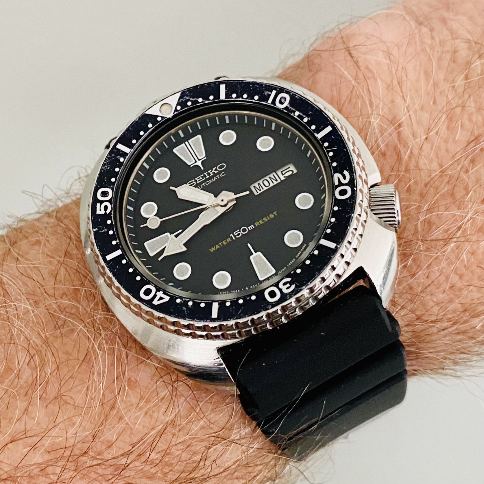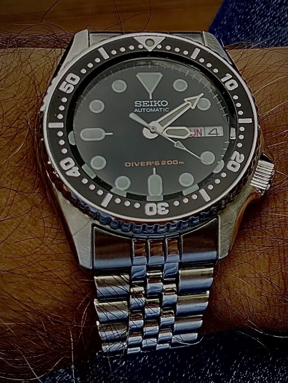 My grandfather on my mom's side gave me one of the first Seiko Kinetic Quartz watches around the same time. I loved the idea of the automatic movement rotor charging the battery. Unfortunately it had an integrated bracelet with a rubber component, and the bracelet was sized by slicing off segments of the rubber! So later on when I didn't have skinny high school wrists anymore, the watch didn't fit comfortably at all. We got someone to frankenstein attach a metal extender on, but it was really janky and kind of ruined the look and feel of it.