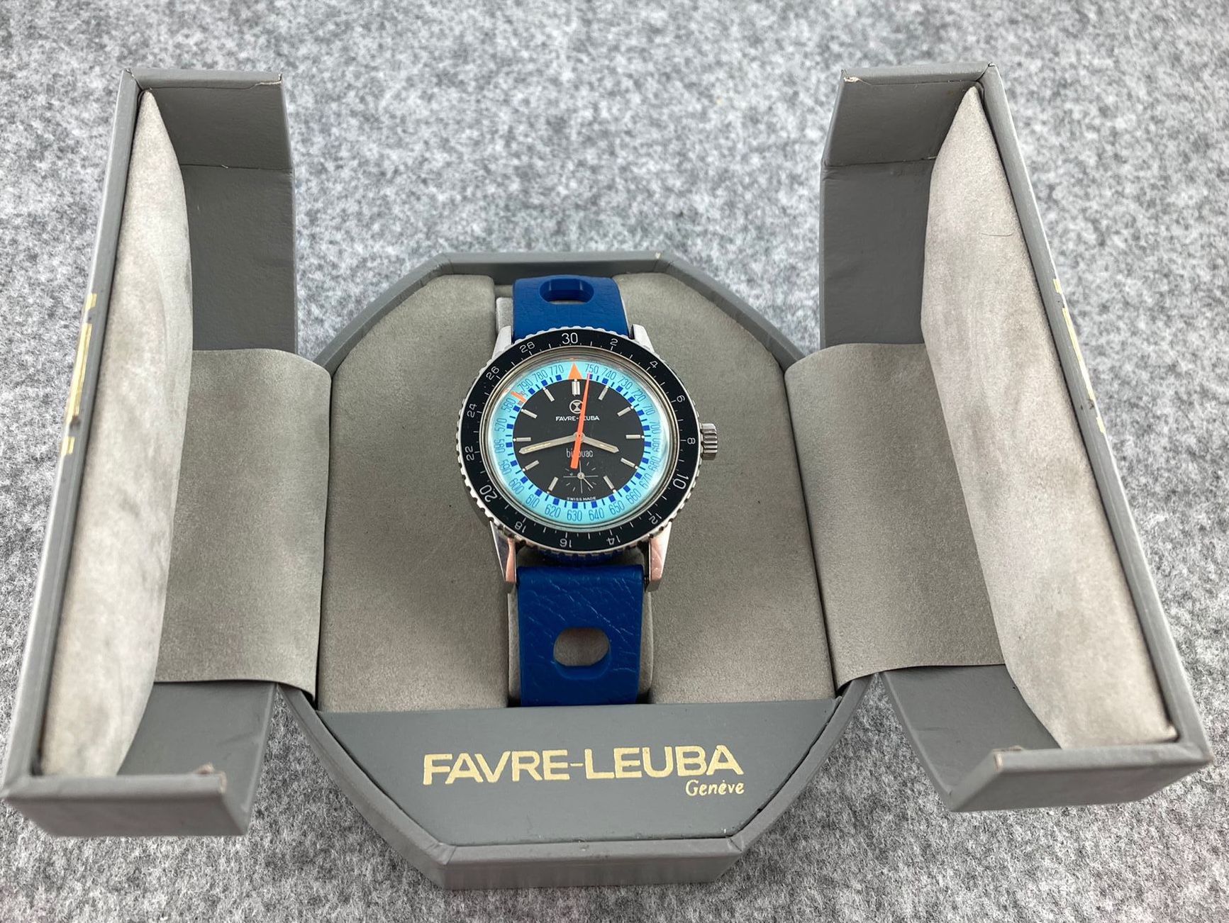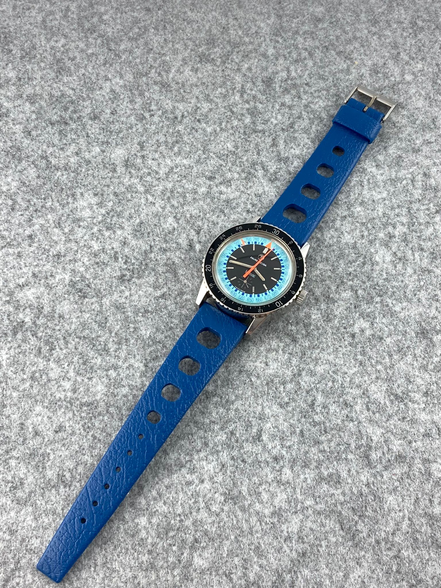 NOS blue Tropic Sport strap 20mm with original Favre-Leuba buckle