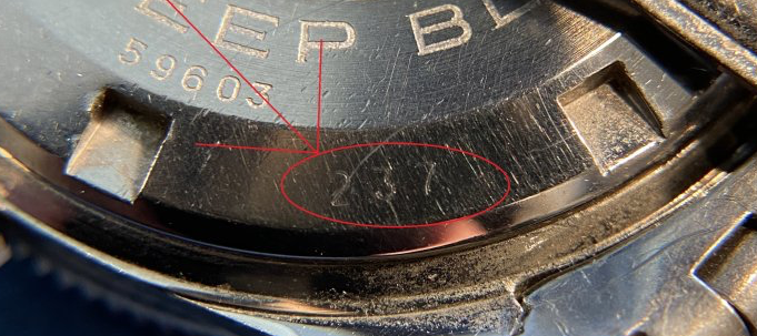 What is confusing here is my two earliest versions, serial 237 and 242 each came with different bezels. Metal on 237 and plastic on 242. And there is no way that either of them were replaced as the cases are different and cannot accept different bezels. In effect, case 237 can only accept the metal bezel but will not fit the plastic bezel. The same goes for 242 which will accept a plastic bezel but not the earlier, metal version. Beneath the inserts they have different ratchet mechanisms and literally differerent mid-case construction to accept either plastic or metal variety. Yet they are so close in serial number...