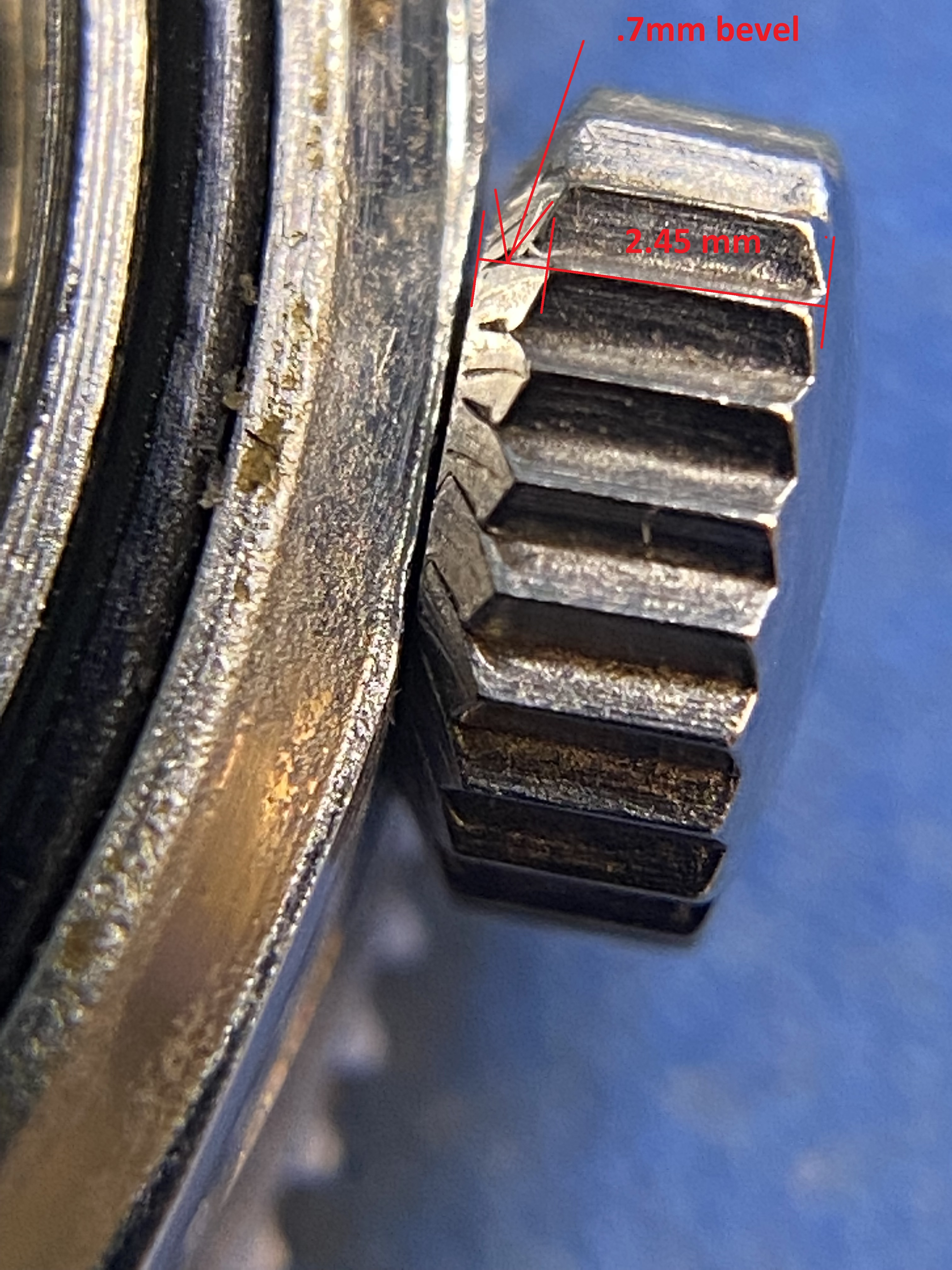 4. The crown bevel is what gives it enough clearance off the midcase. Not easy to see in my pic, but the bevel allows the crown tines to have about a .7mm clearance so they don't interfere with the bezel teeth.