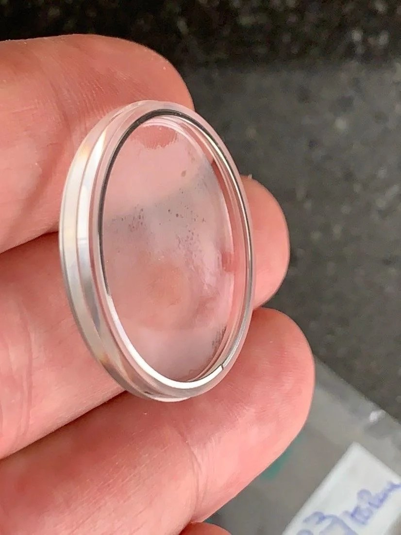 o The plastic sidewalls are about 1.0mm thick, so you will have to file down the base by about 0.2mm around, reducing the diameter of this section by 0.4mm to achieve the 29.5mm diameter needed to fit the watch.