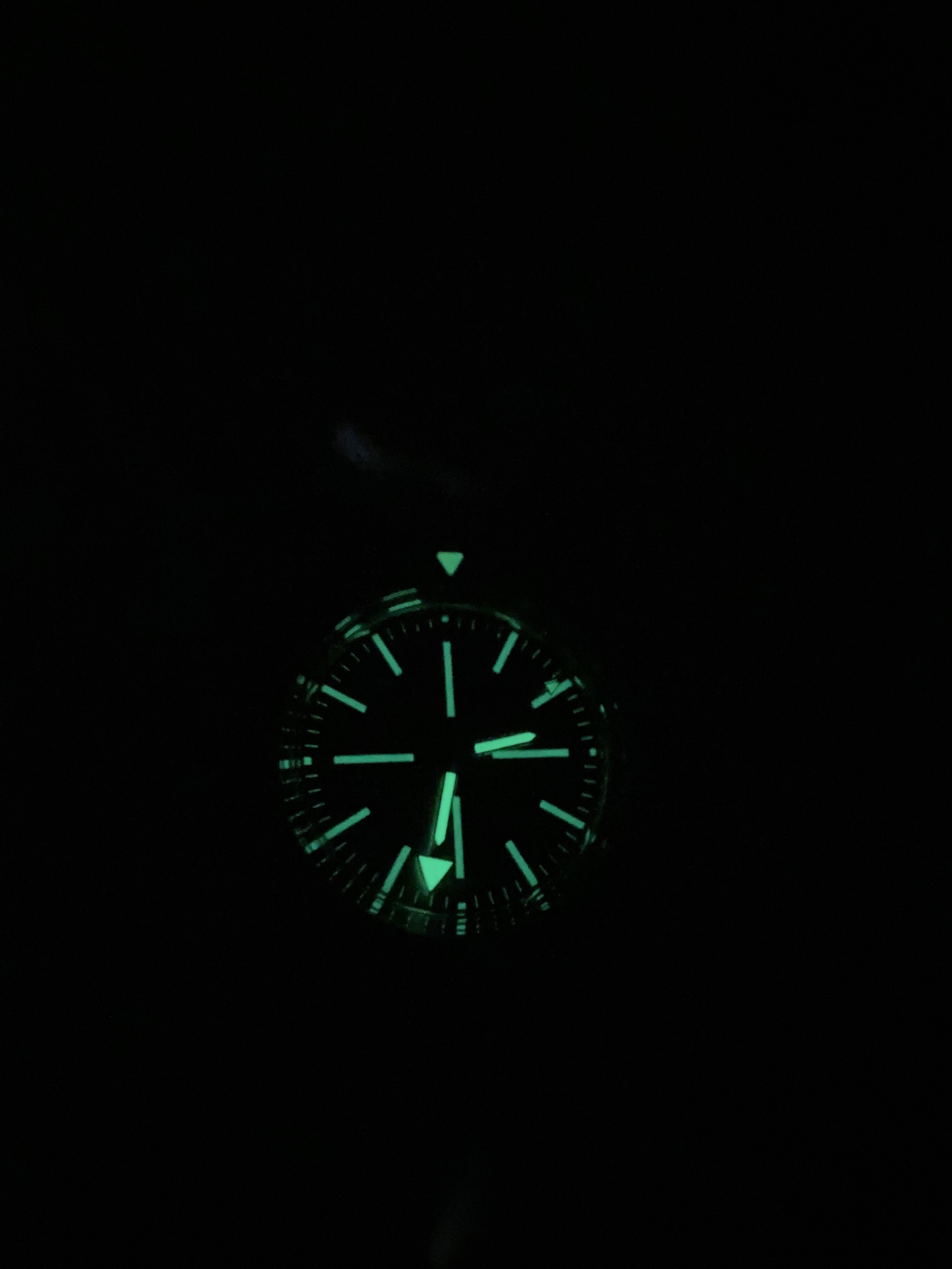 Tritium sunburst Dial & Hands with light greenish Lume.