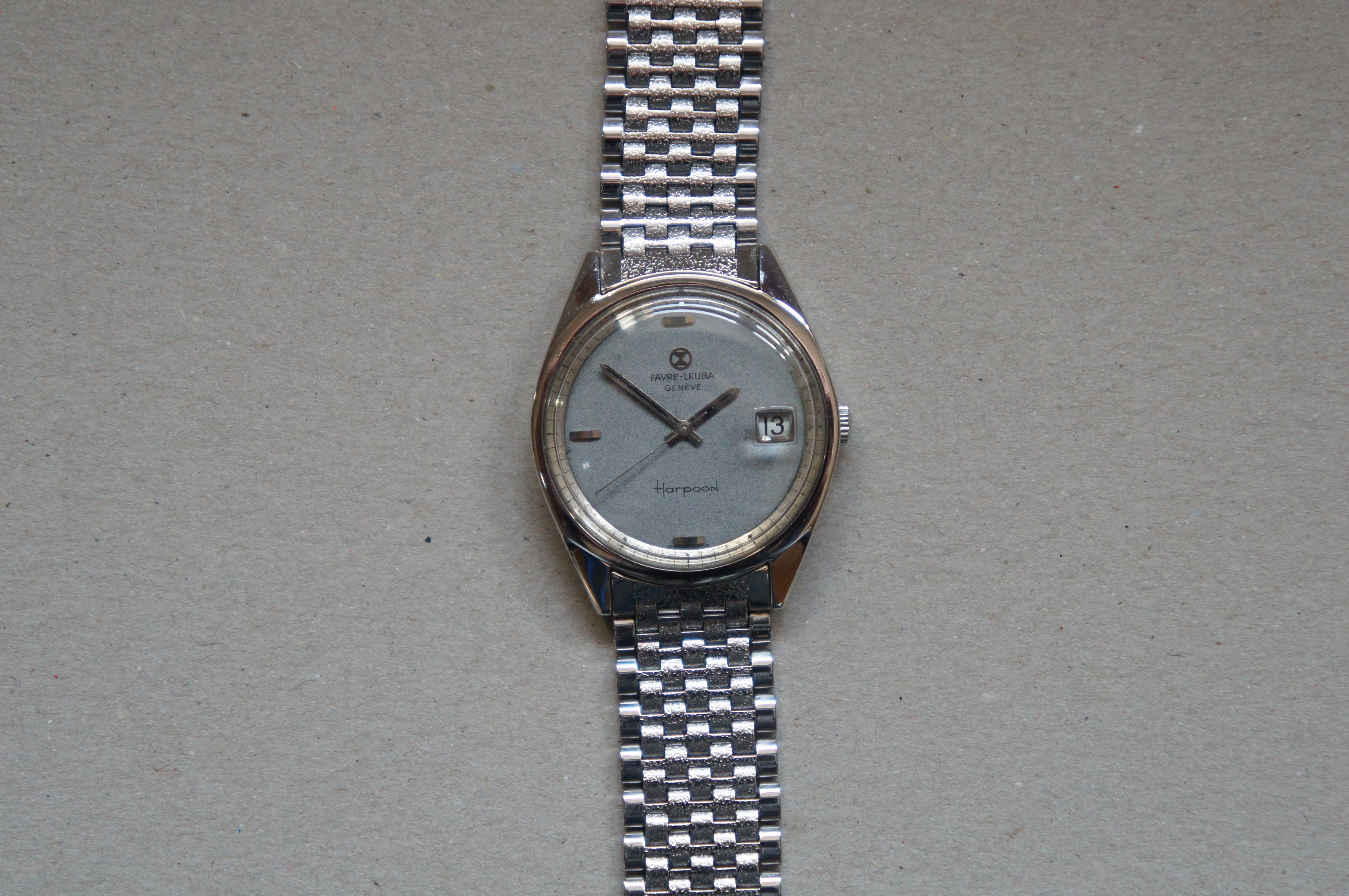 Movement: Favre Leuba cal 1152, it has a semi quick set by changing the time between 21-24h. I had it serviced couple of years back, but I cannot find the papers. Anyways, the warranty expired for sure, so for the purpose of this sale, please consider it as service history unknown