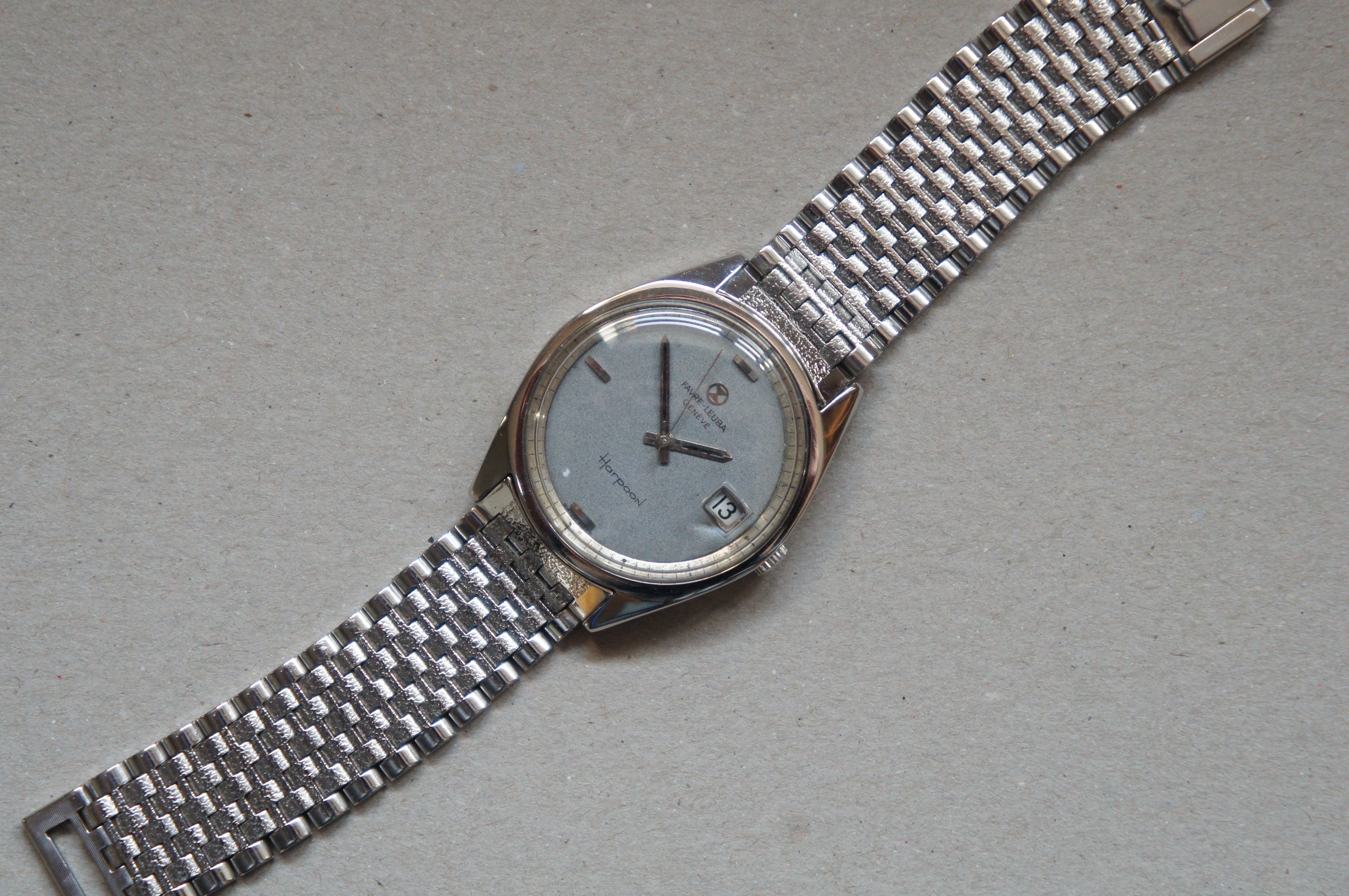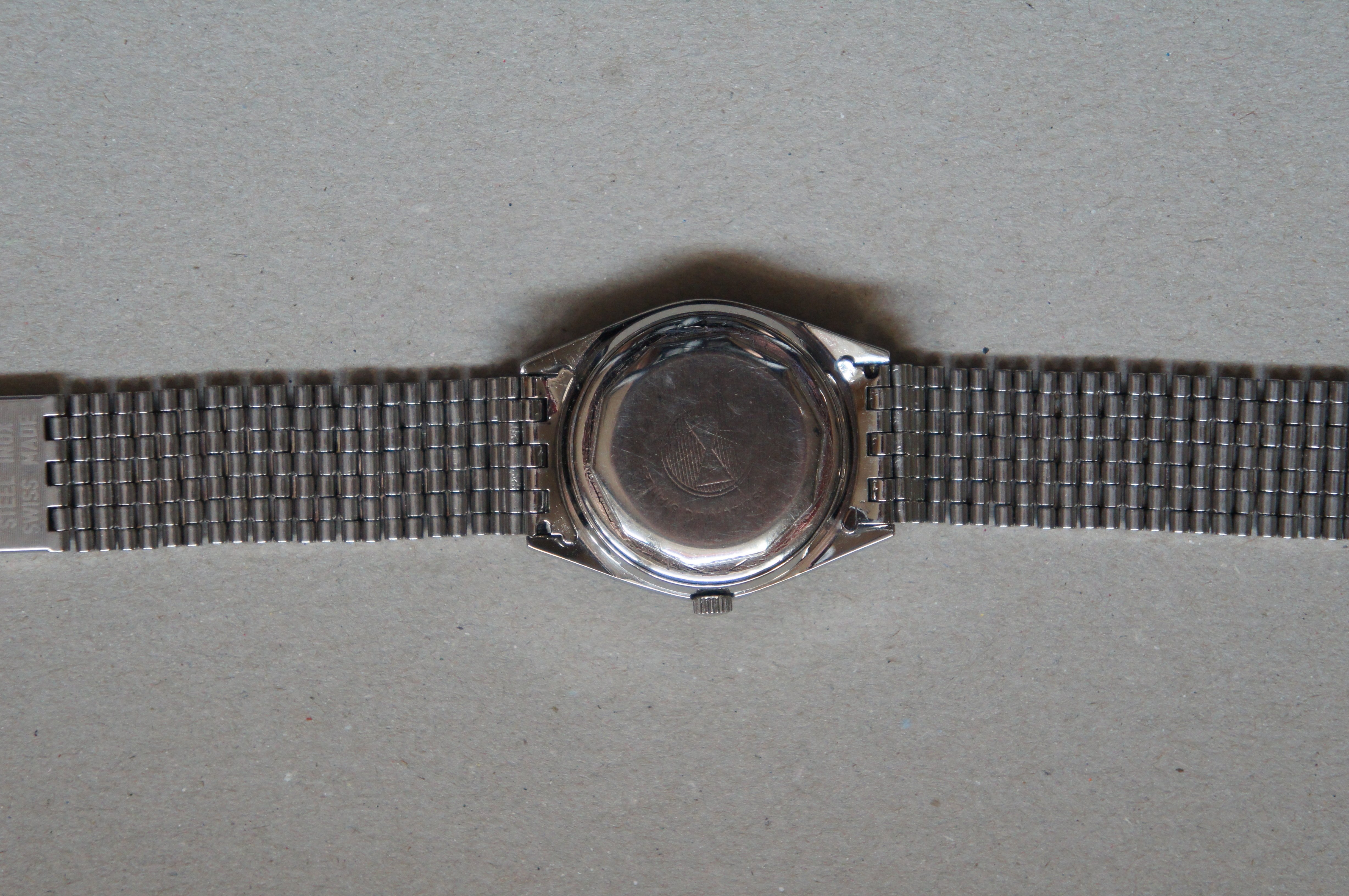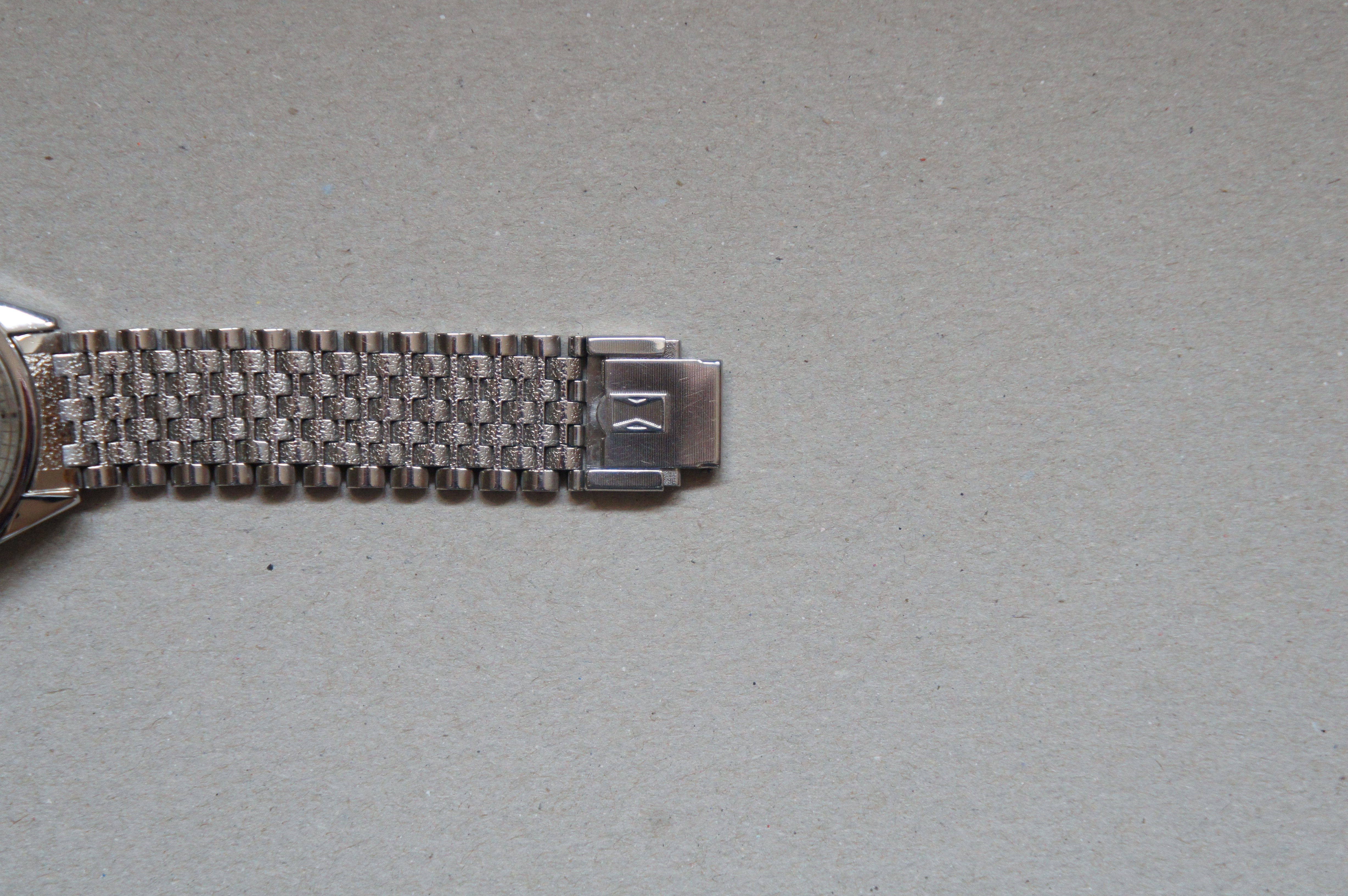 Bracelet: original NSA bracelet with original Favre-Leuba buckle. The buckle has something like an micro adjustment allowing it to extend for another ~5mm. With it extended it can fit a wrist of max 17.5cm/ 6.9 inches