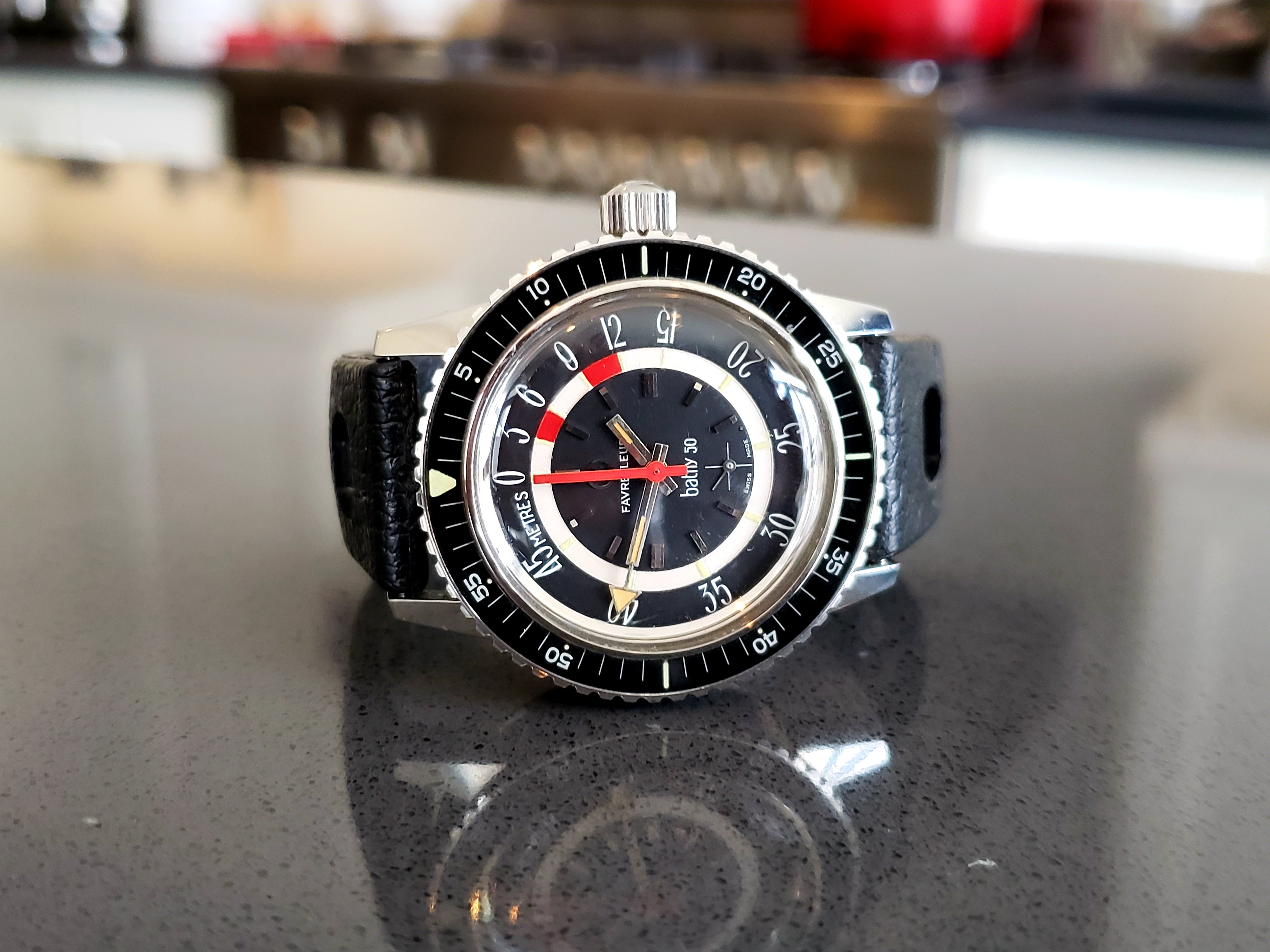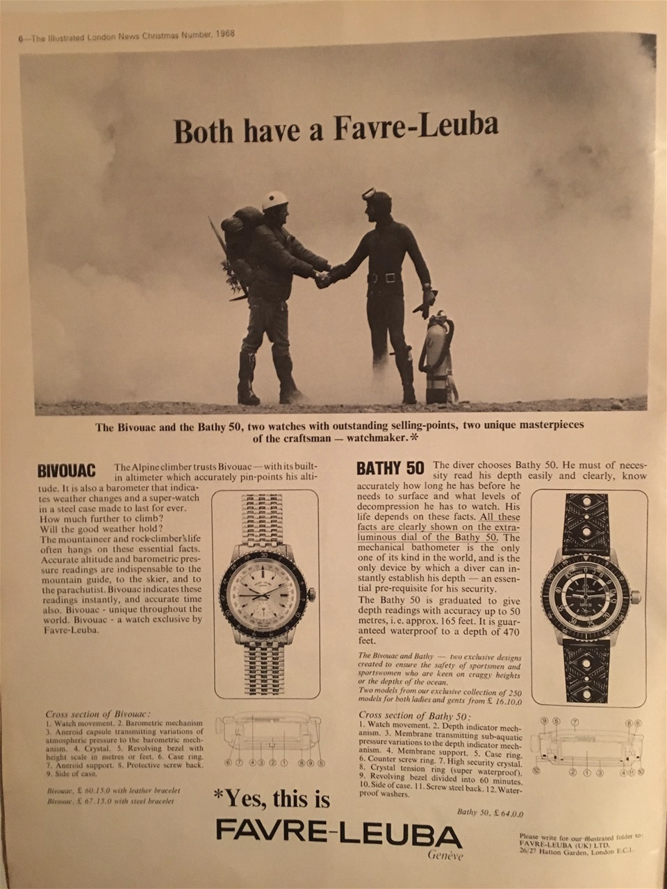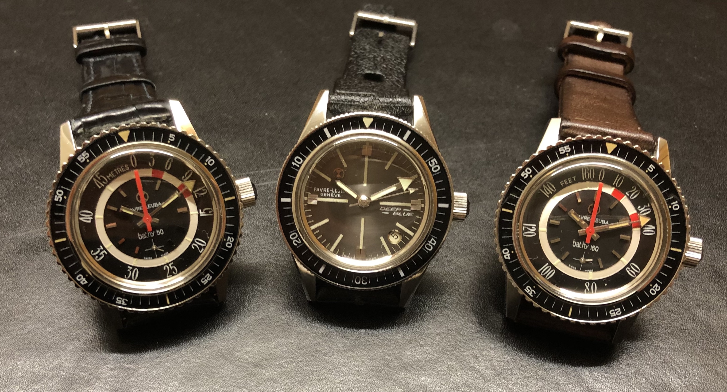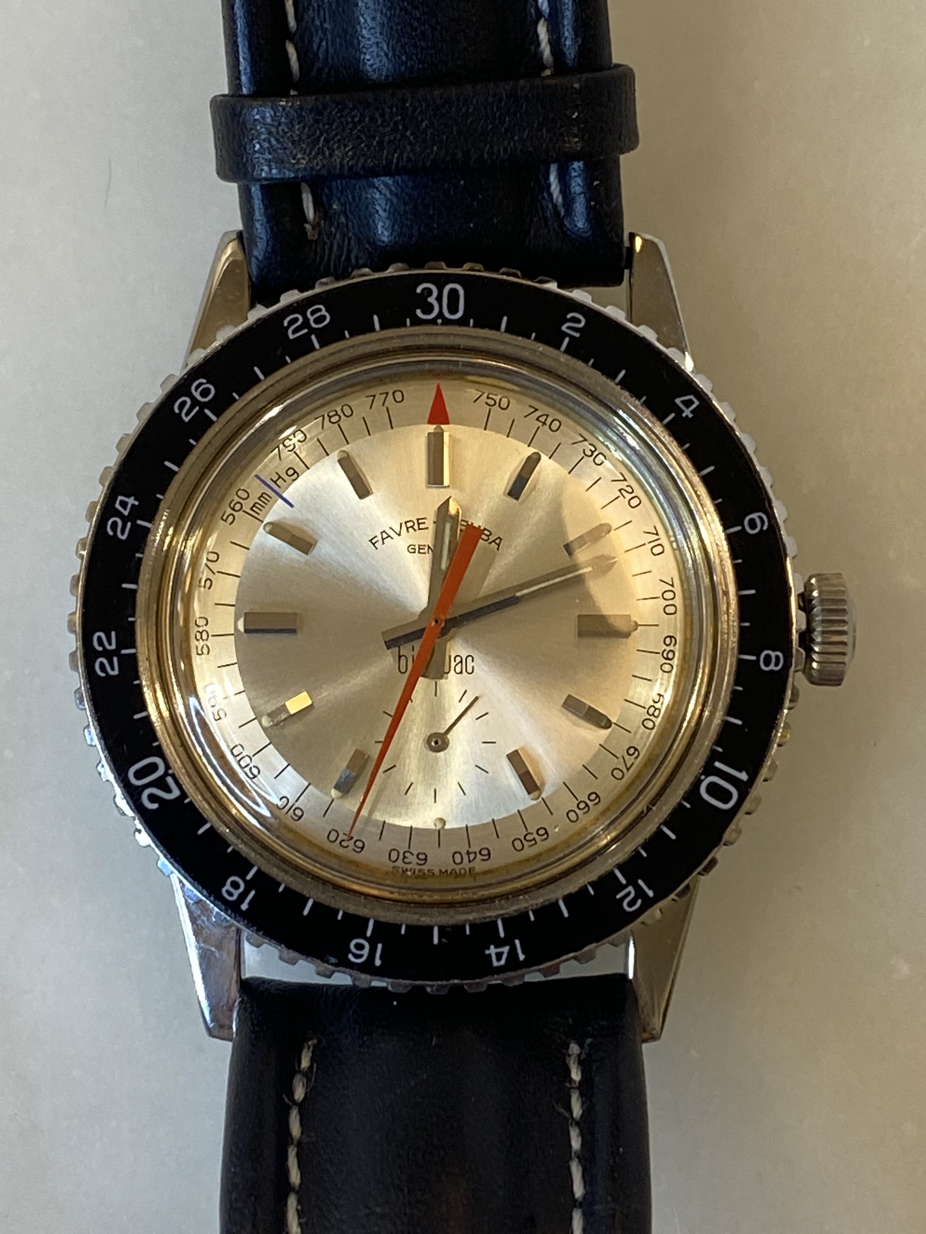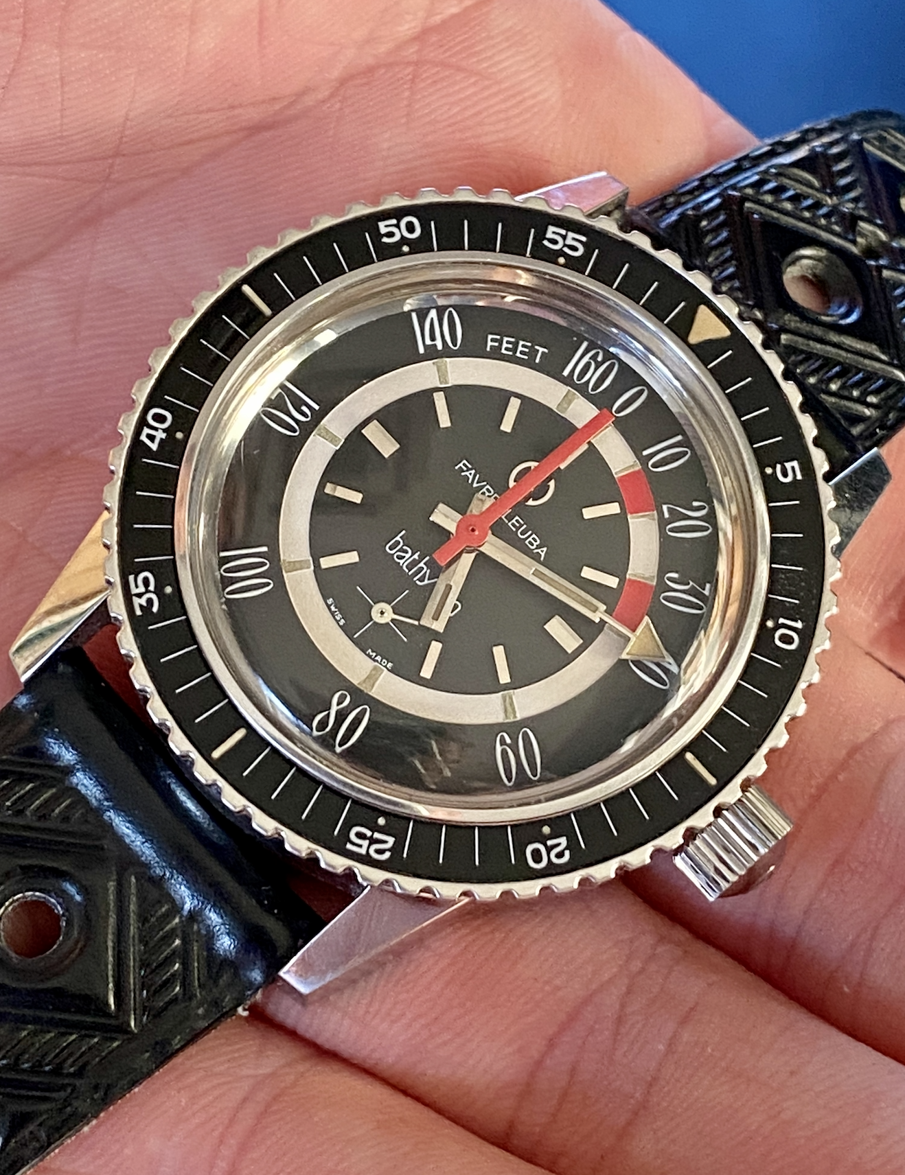 ·Found a neat diver from, i believe, the early 60's. Great complication, having the mechanical depth meter built in. This watch doesn't look like it was worn...or worn very little, as it still has its original FL "plastic" strap and buckle. Anyone know what numbers of these were made and the ratio of feet 160 versions to meters 50's? Thanks