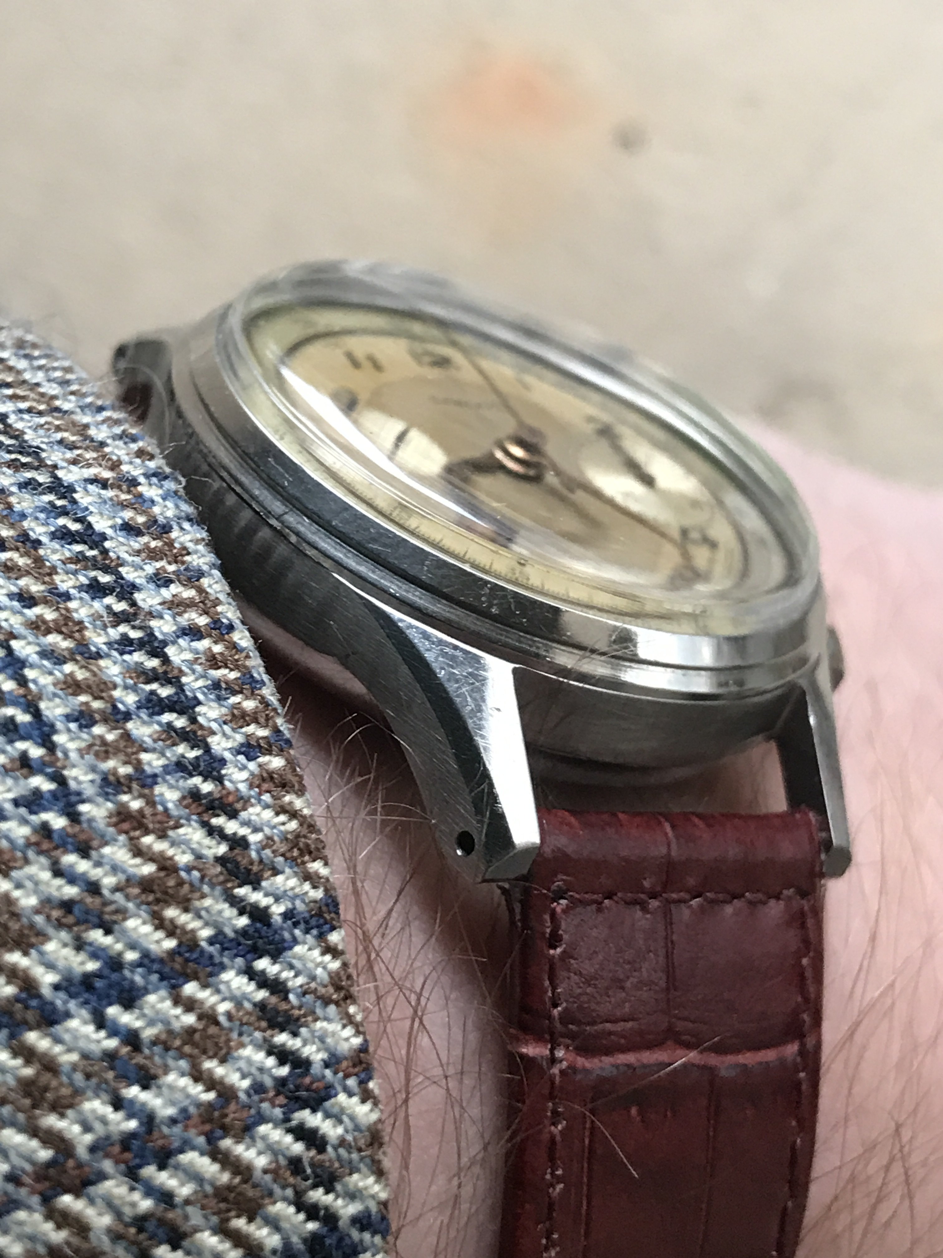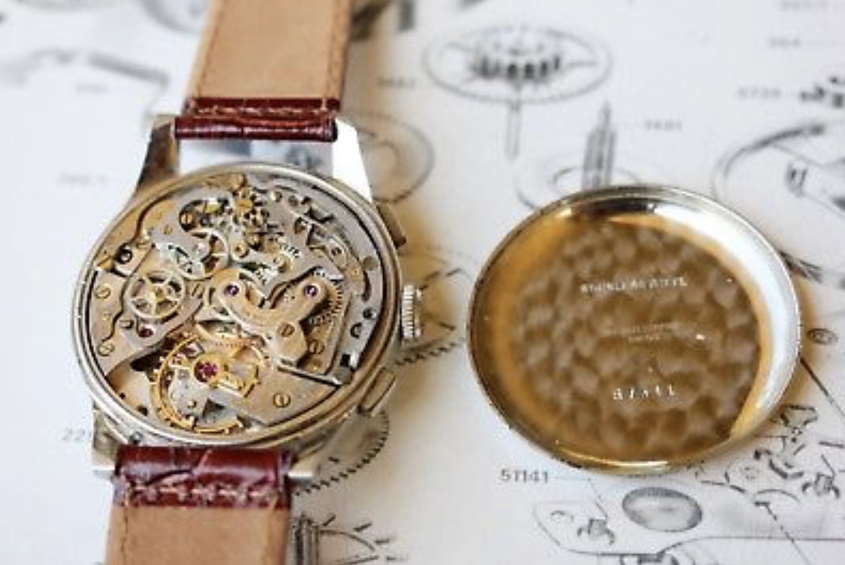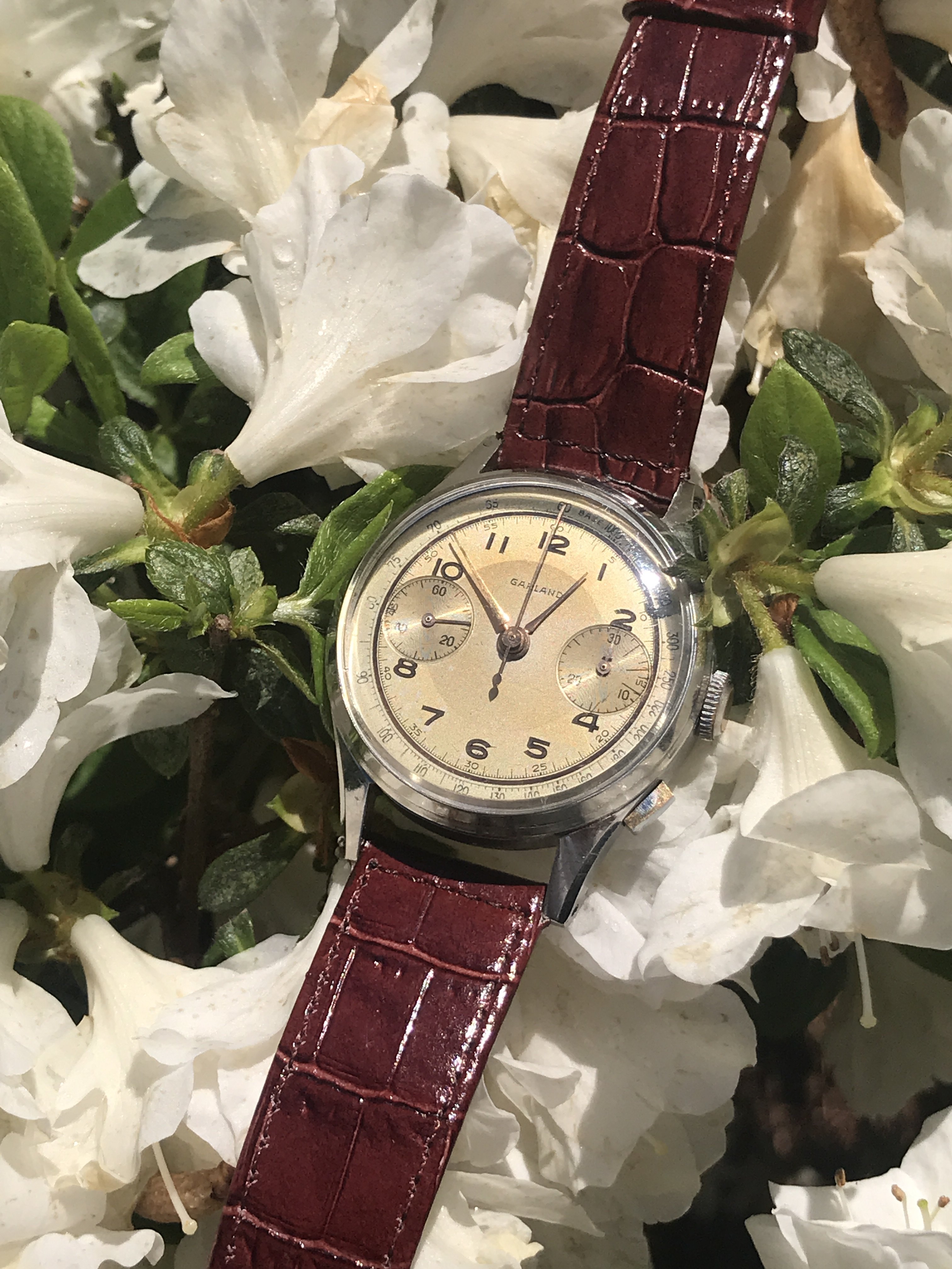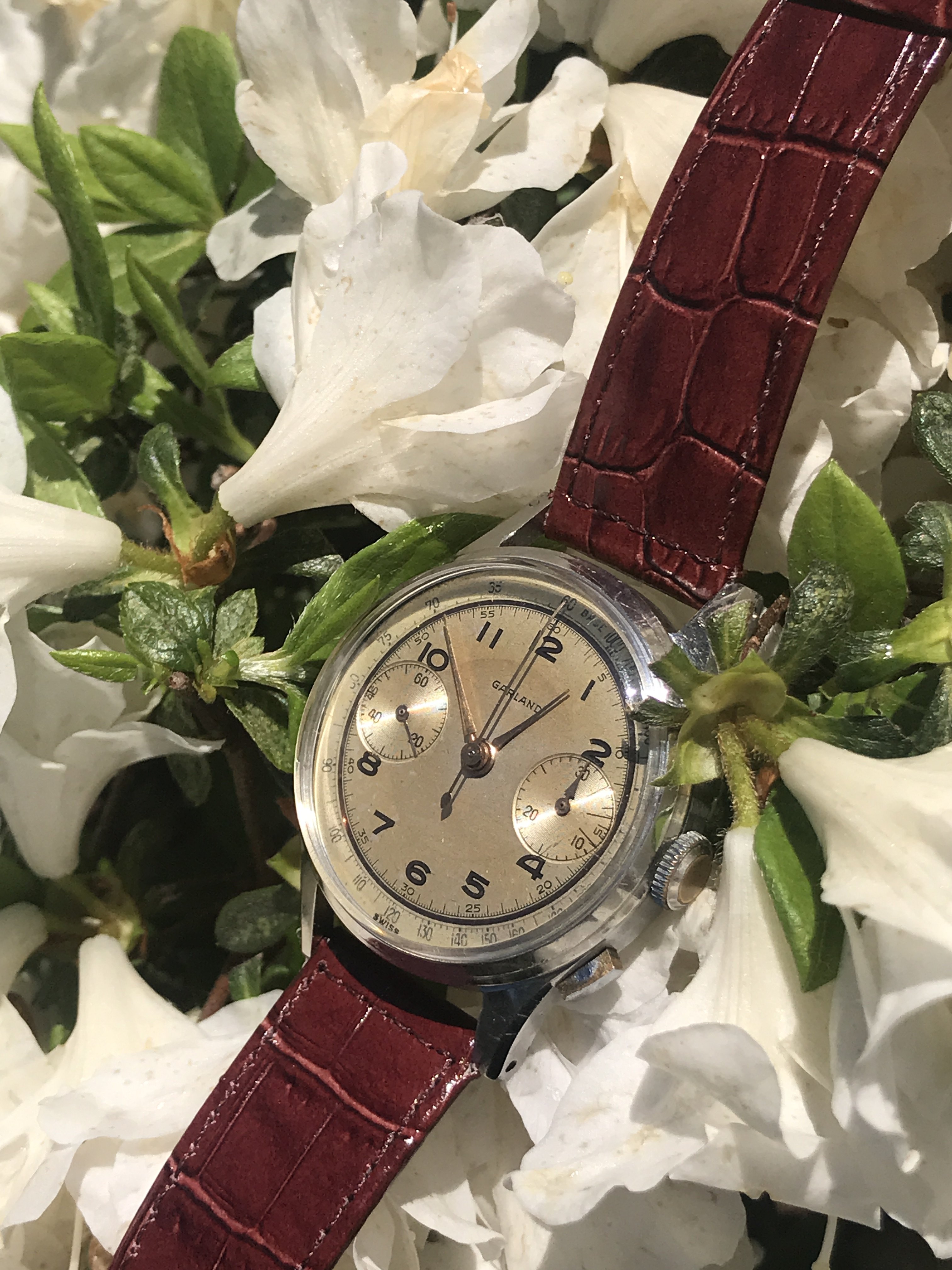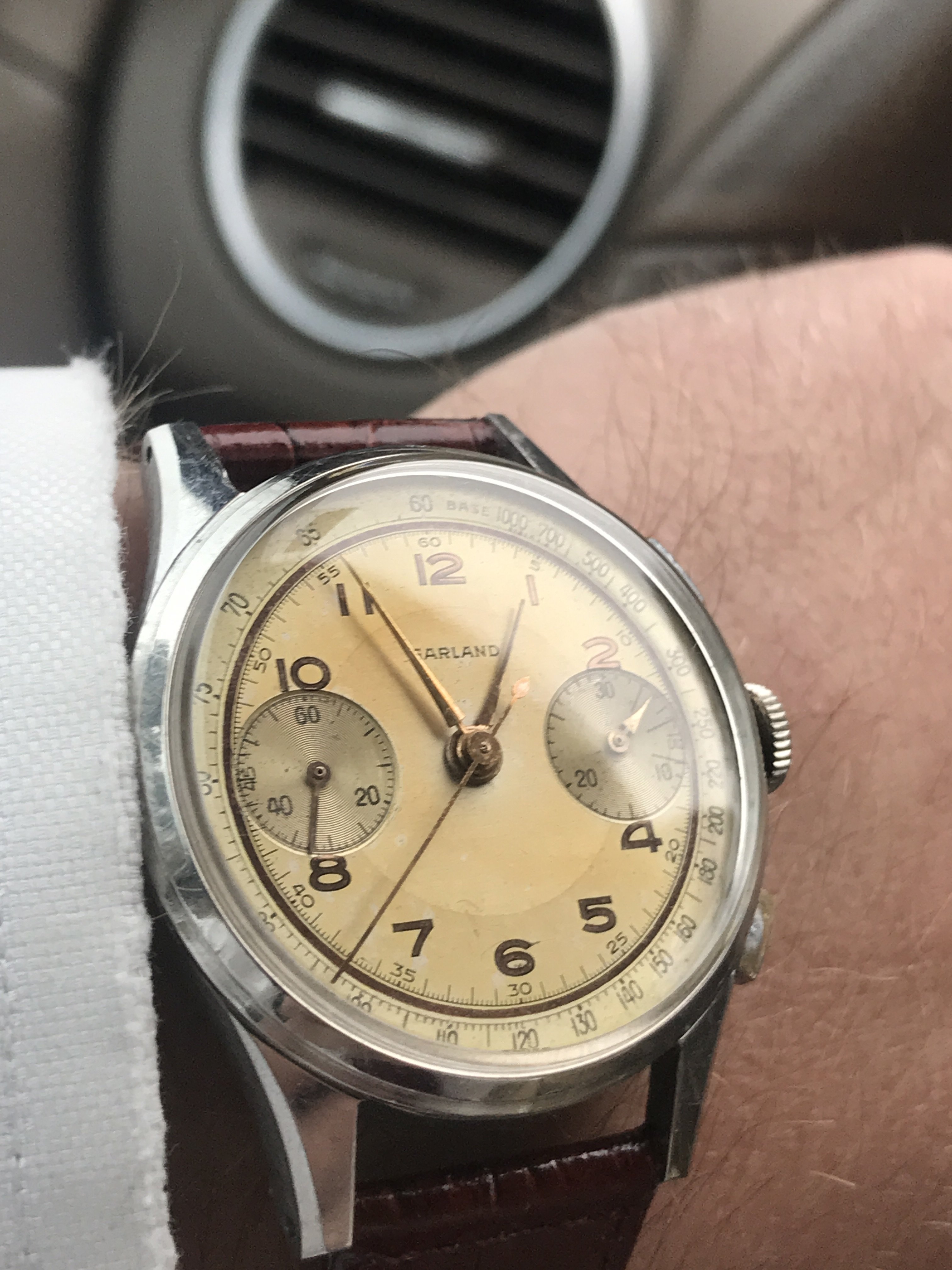 Dial: Beautiful, original dial showing slight but even patina and is a real pleasure to watch the way it changes colors in different light. Signed Garland, 60 second and 30 minute counters. Original gold plated hands.