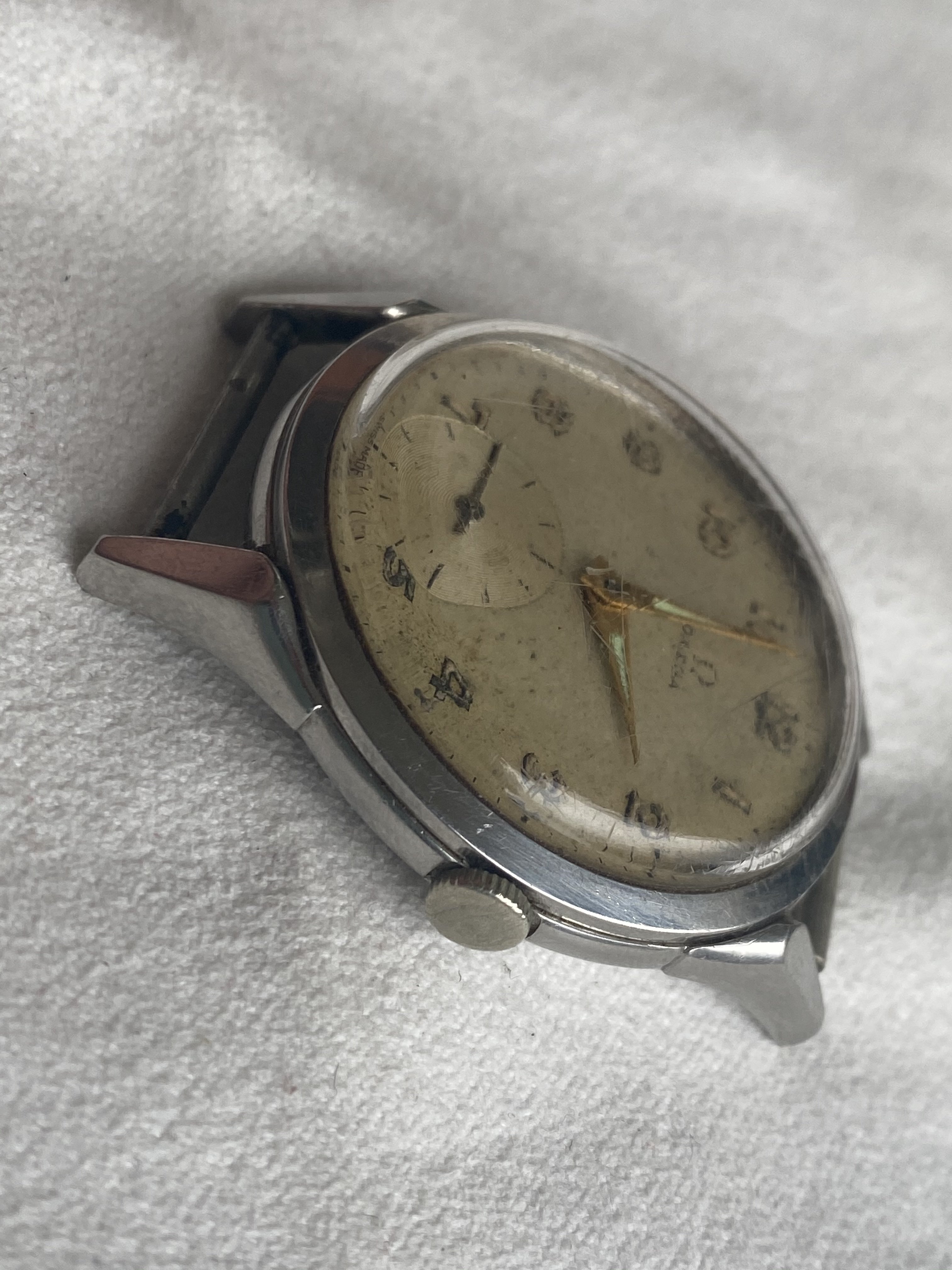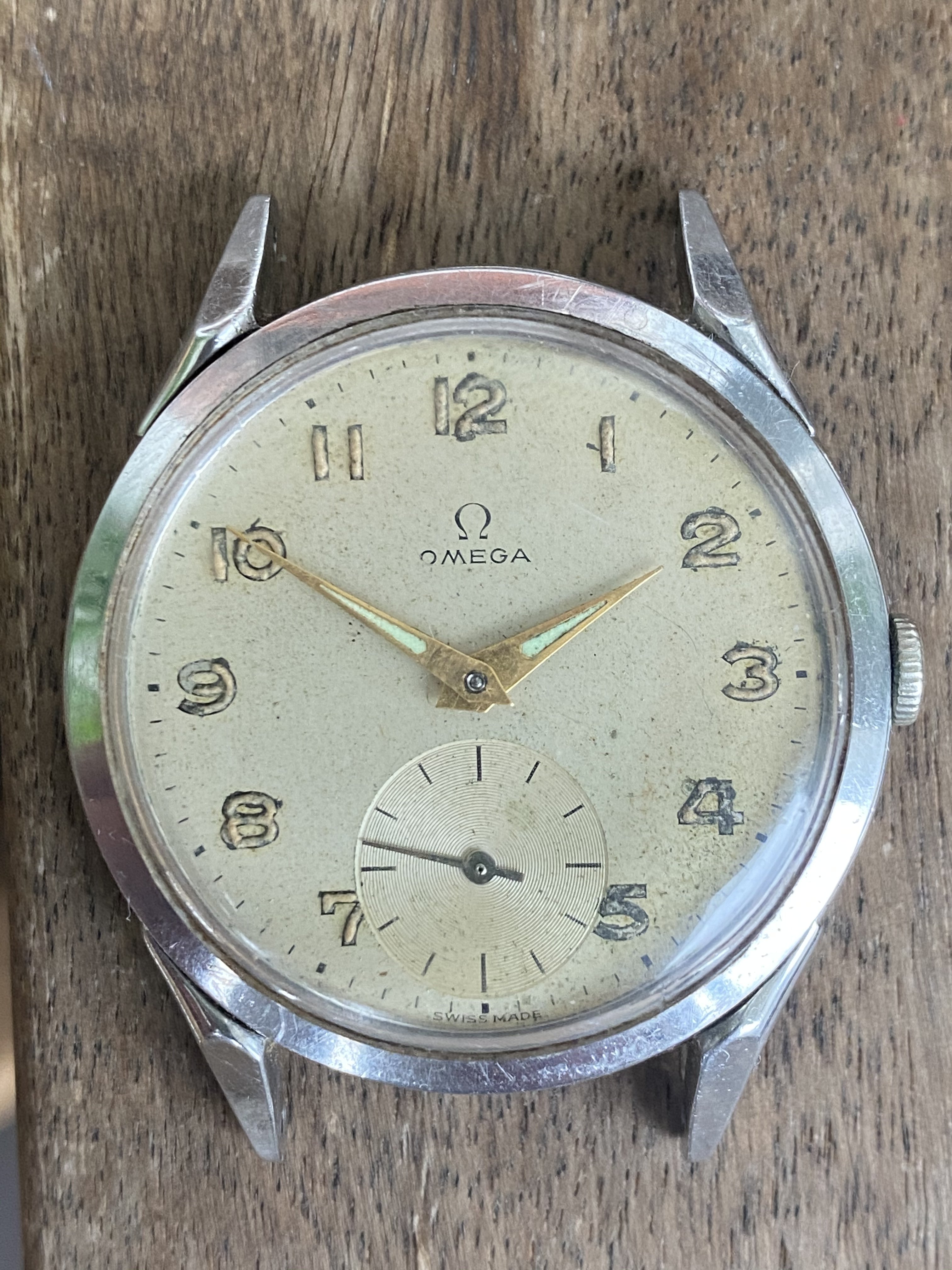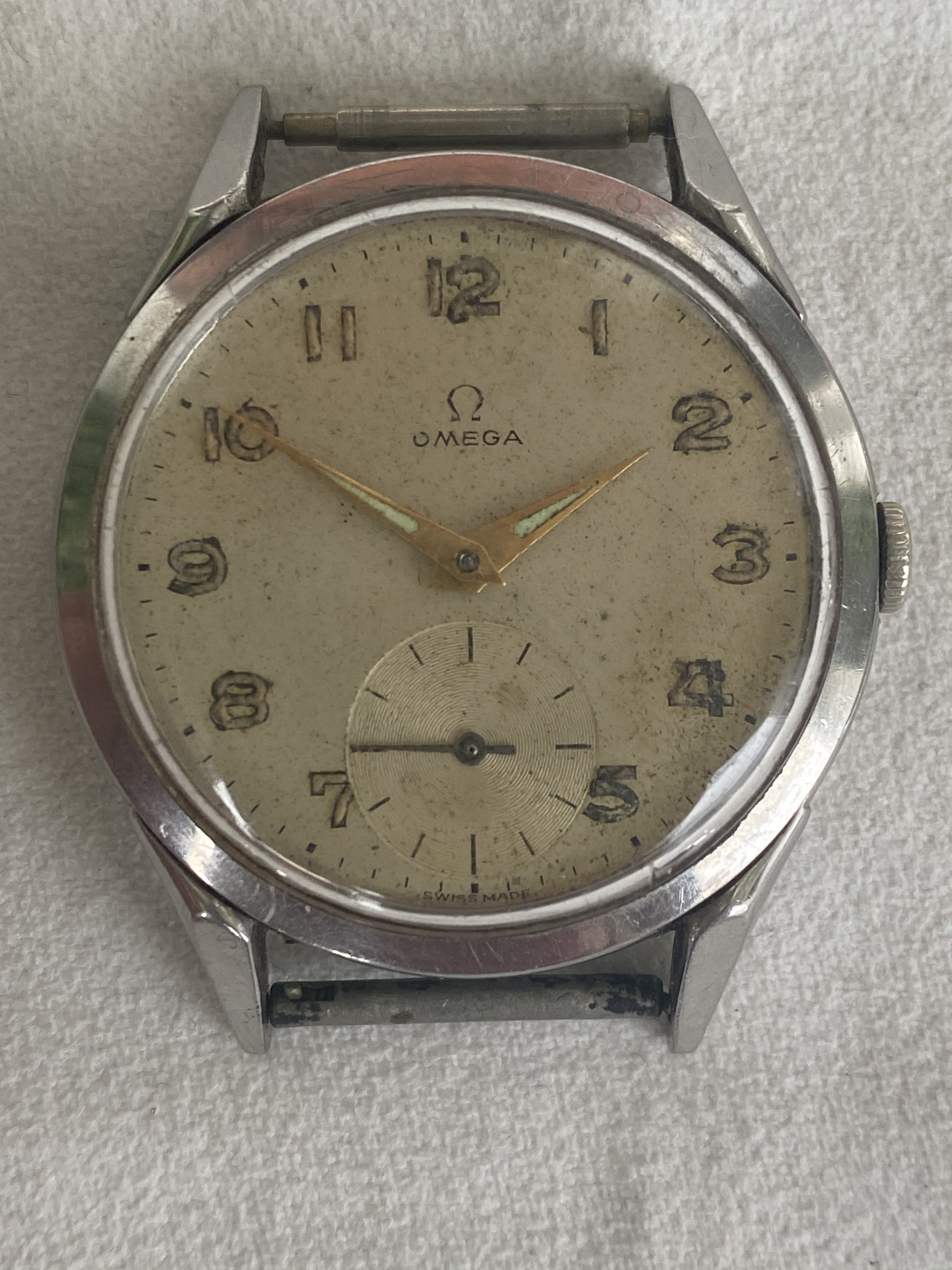in the true spirit of @janice&fred (or so I hope) that, if the price is right, no condition is too bad, I bought an old Omega for the slightly absurd sum mentioned in the title. So this isn’t the most serious of projects here, but I’m curious and for the money I figured I can’t do too much wrong. Here’s the, errrm, former beauty: