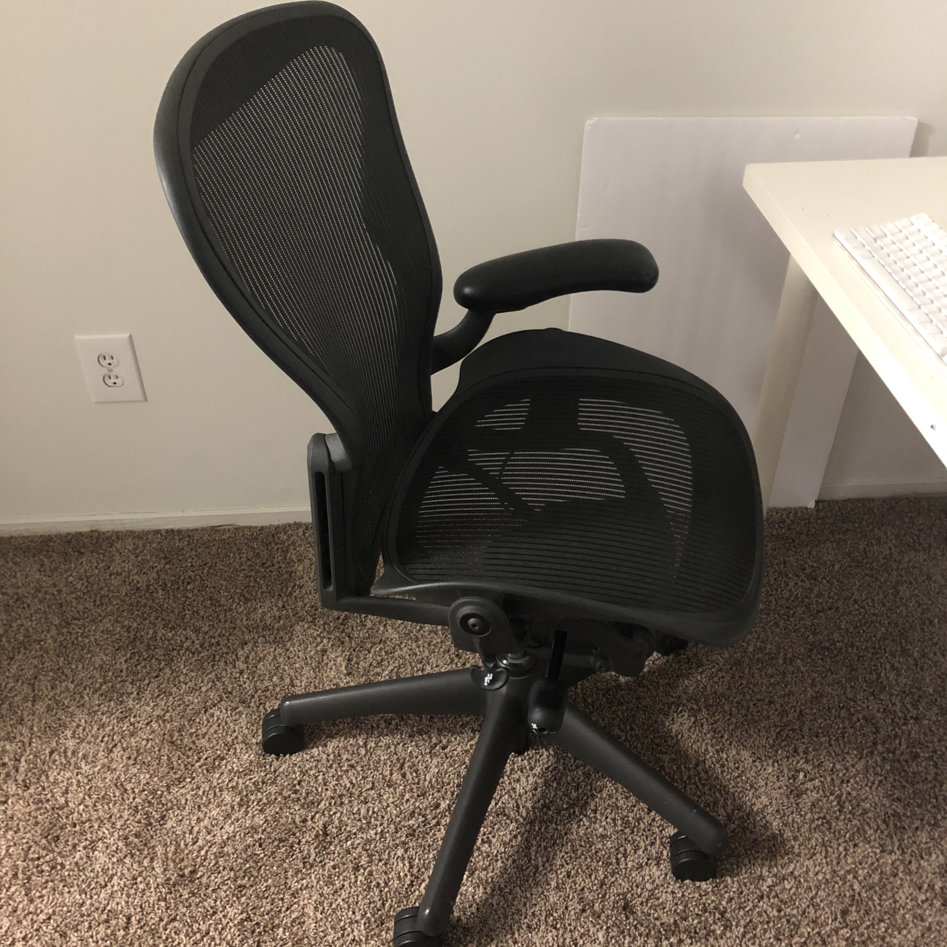 Went for a walk with my daughter and when we got back someone ate my apartment had left this by the dumpster. Herman Miller Aeron chair. Missing an arm. Thank you. I used to have one but left it with my ex. Weird thing is I have an extra arm there, just hope it’s the ‘right’ one. Pun intended