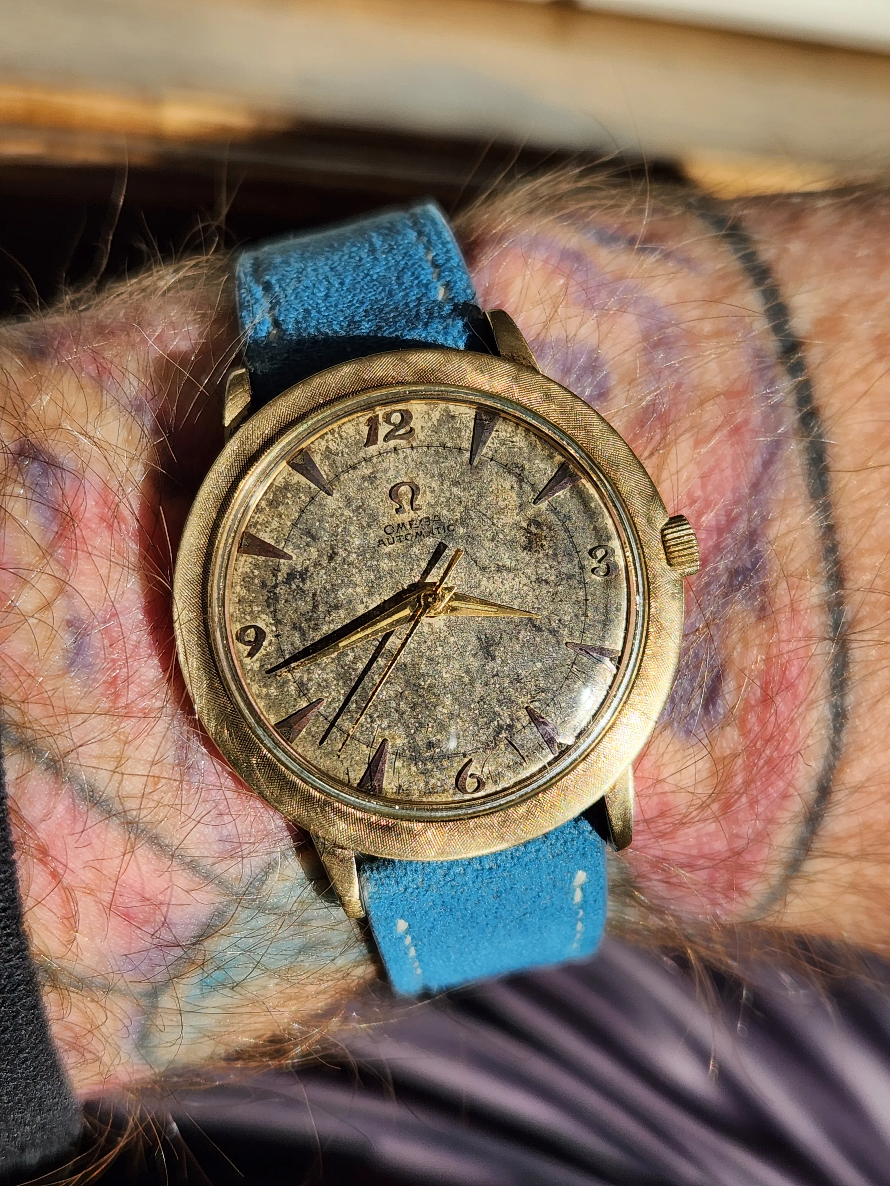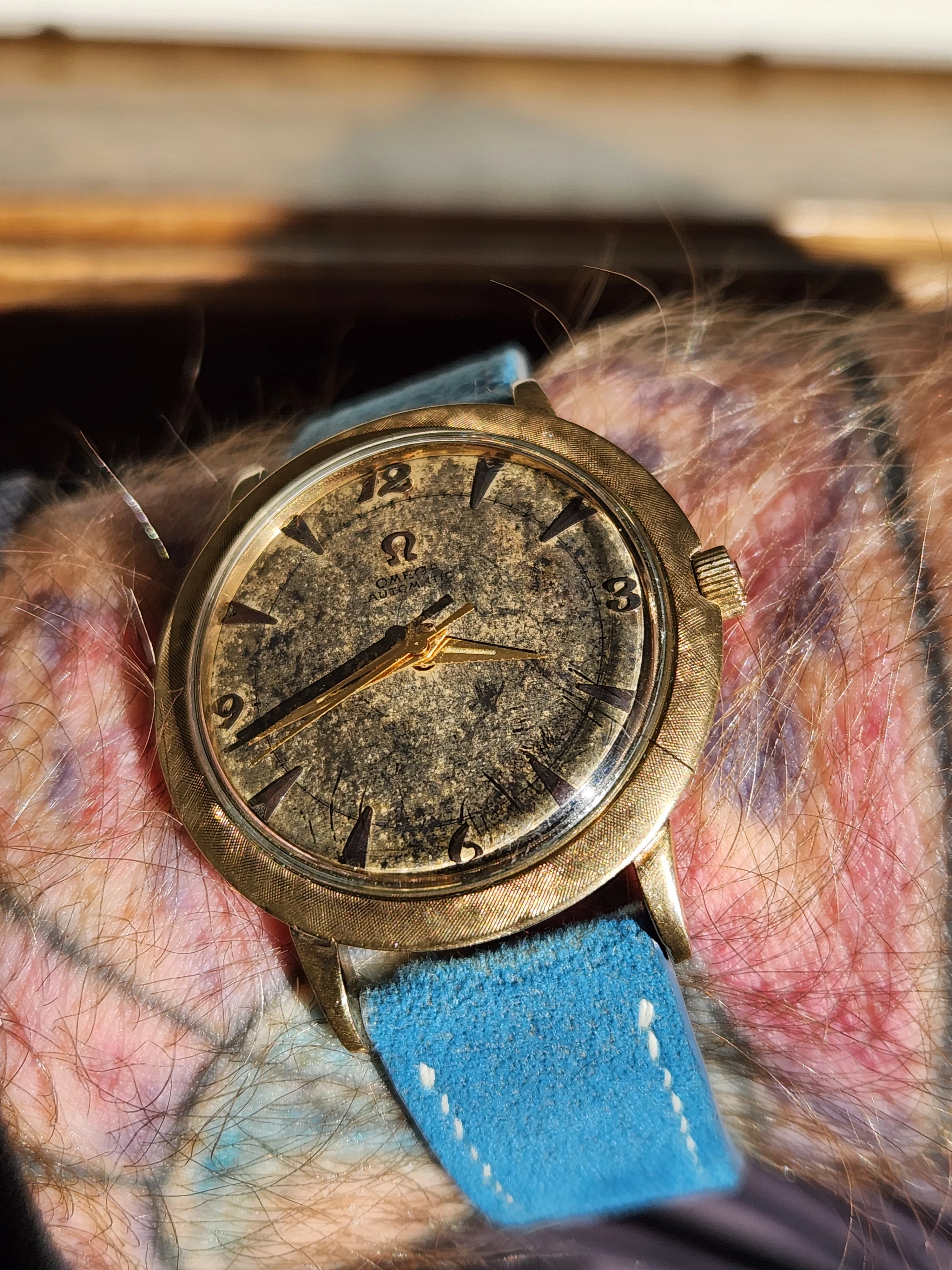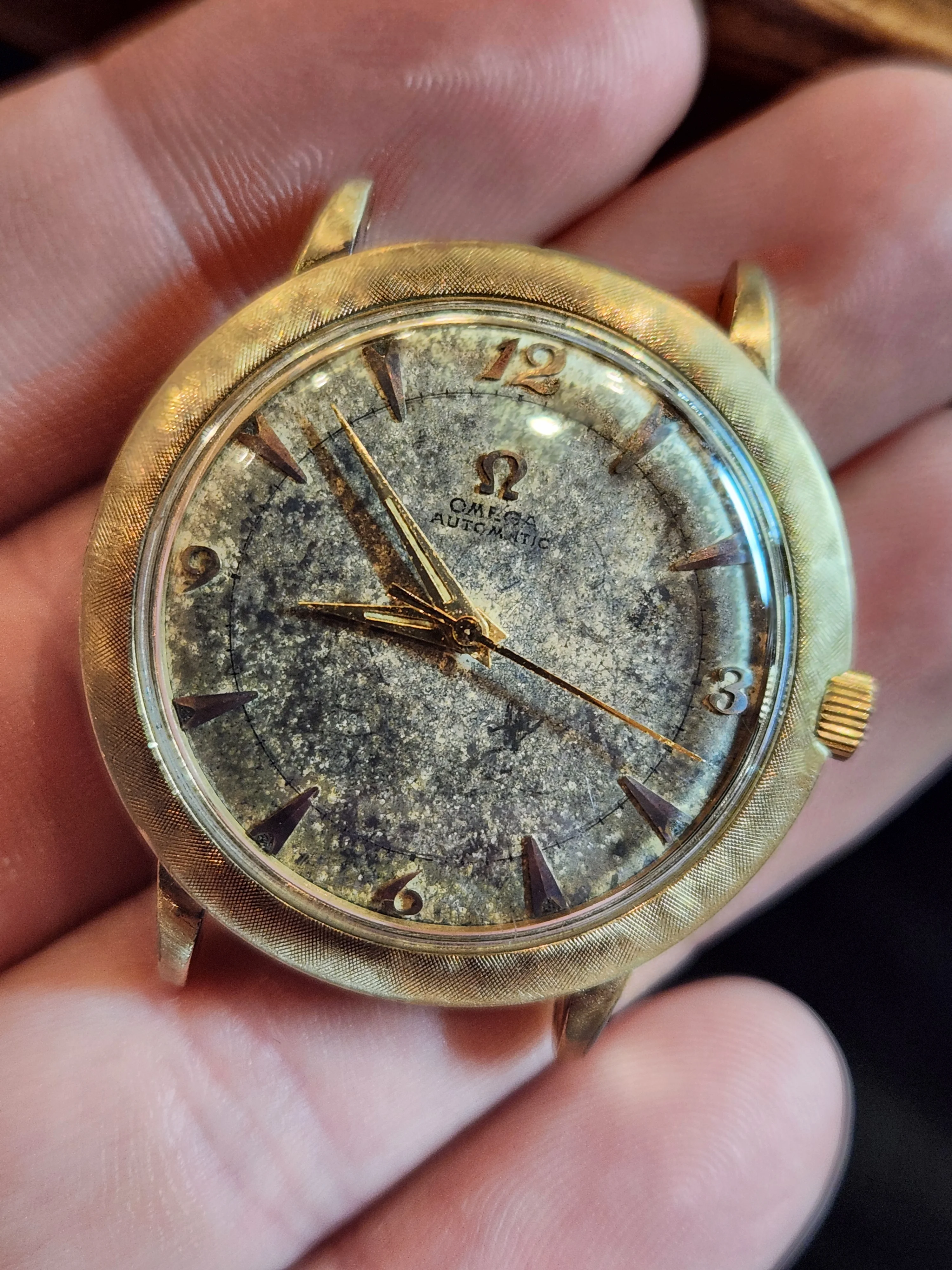 ·An update. Ended up with this GX6279 with a super cool engraved 14k bezel. It has a low mileage 500 in it, so it got a full service and I swapped the fire damaged dial over. Got it running in tip top shape (for as good as a 500 can be anyway). I have been wearing this all weekend its been great. The dial gives Jurassic fossil vibes.
