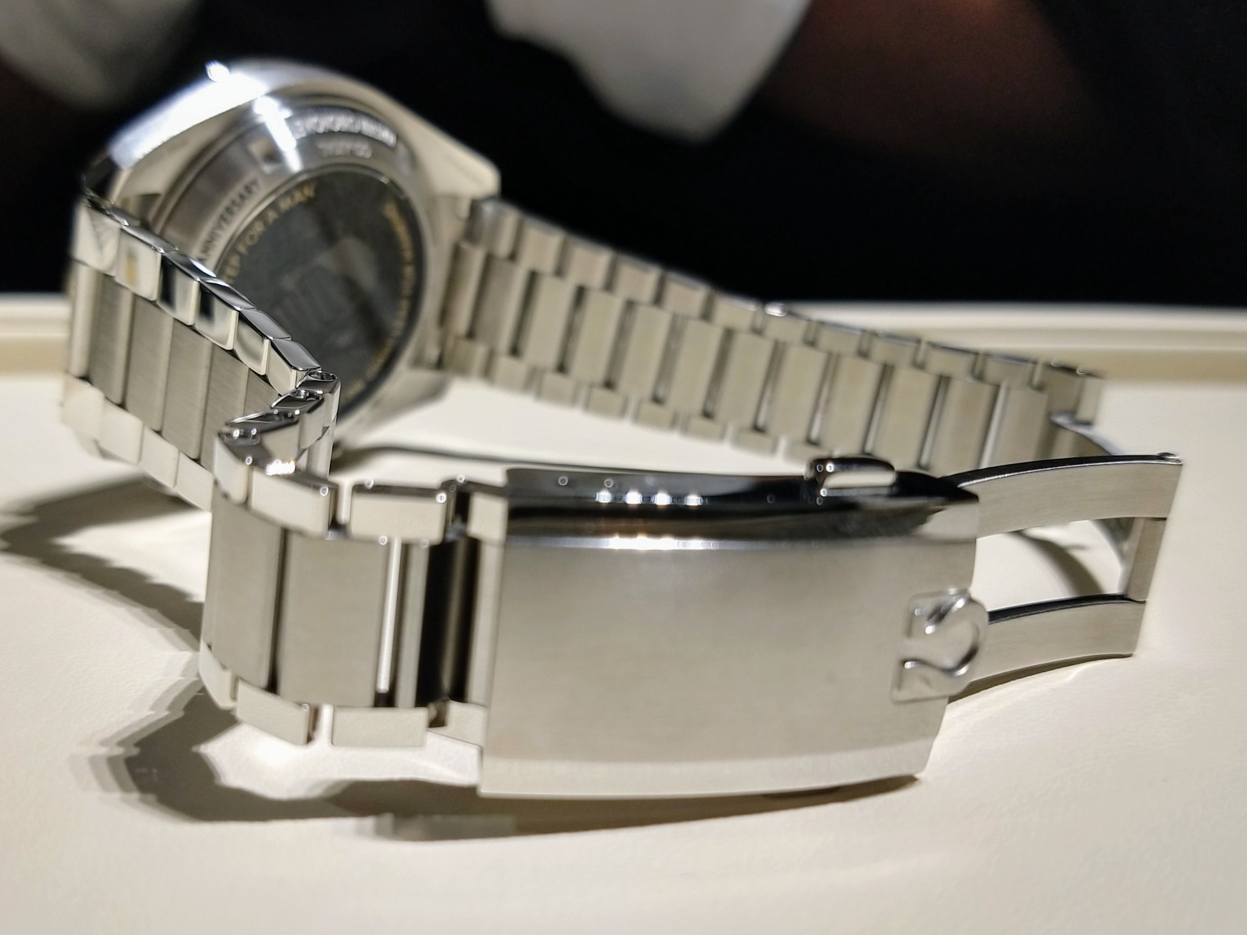 That clasp looks like it is nicely machined and heavy duty. I like the bold, oversized Omega logo. Appears Omega has really upped the quality of the bracelet.