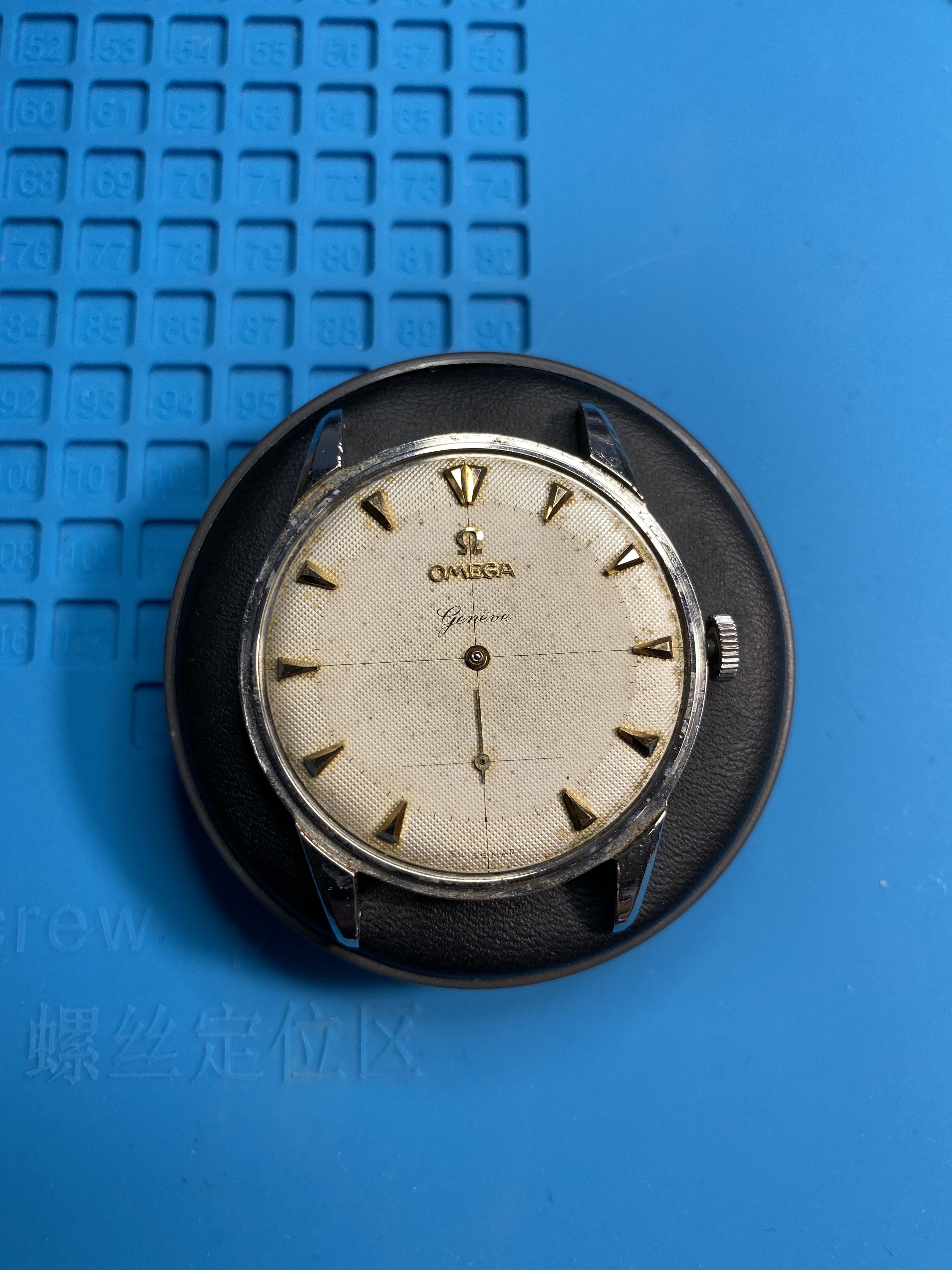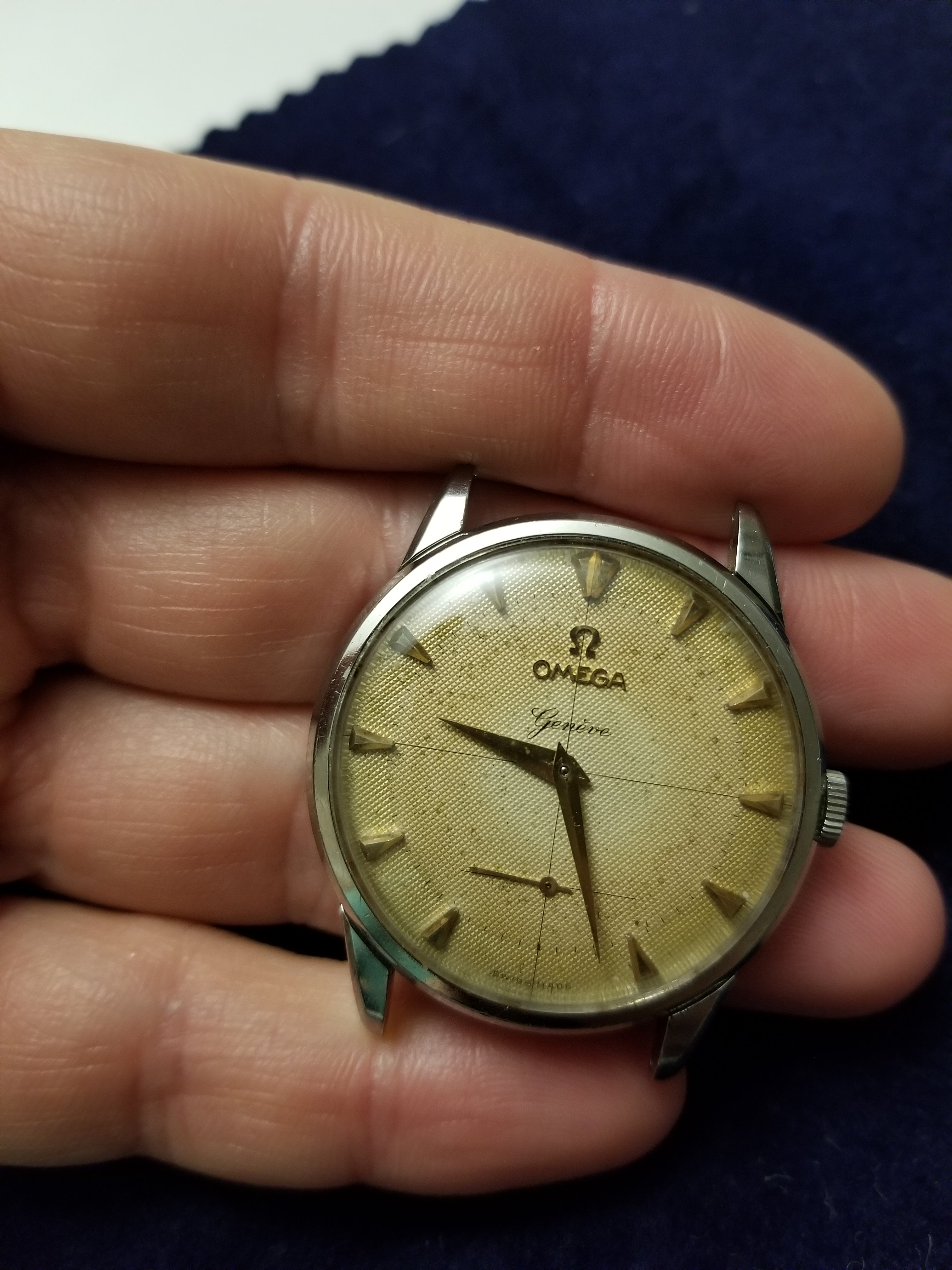 The watch I wanted to try was a jumbo Geneve 2748-1. When I purchased it, I noticed a lot of brown sticky residue on the case that looked like smoking residue. The case cleaned up easily with a damp cloth so I wanted to see if the dial could also clean up.