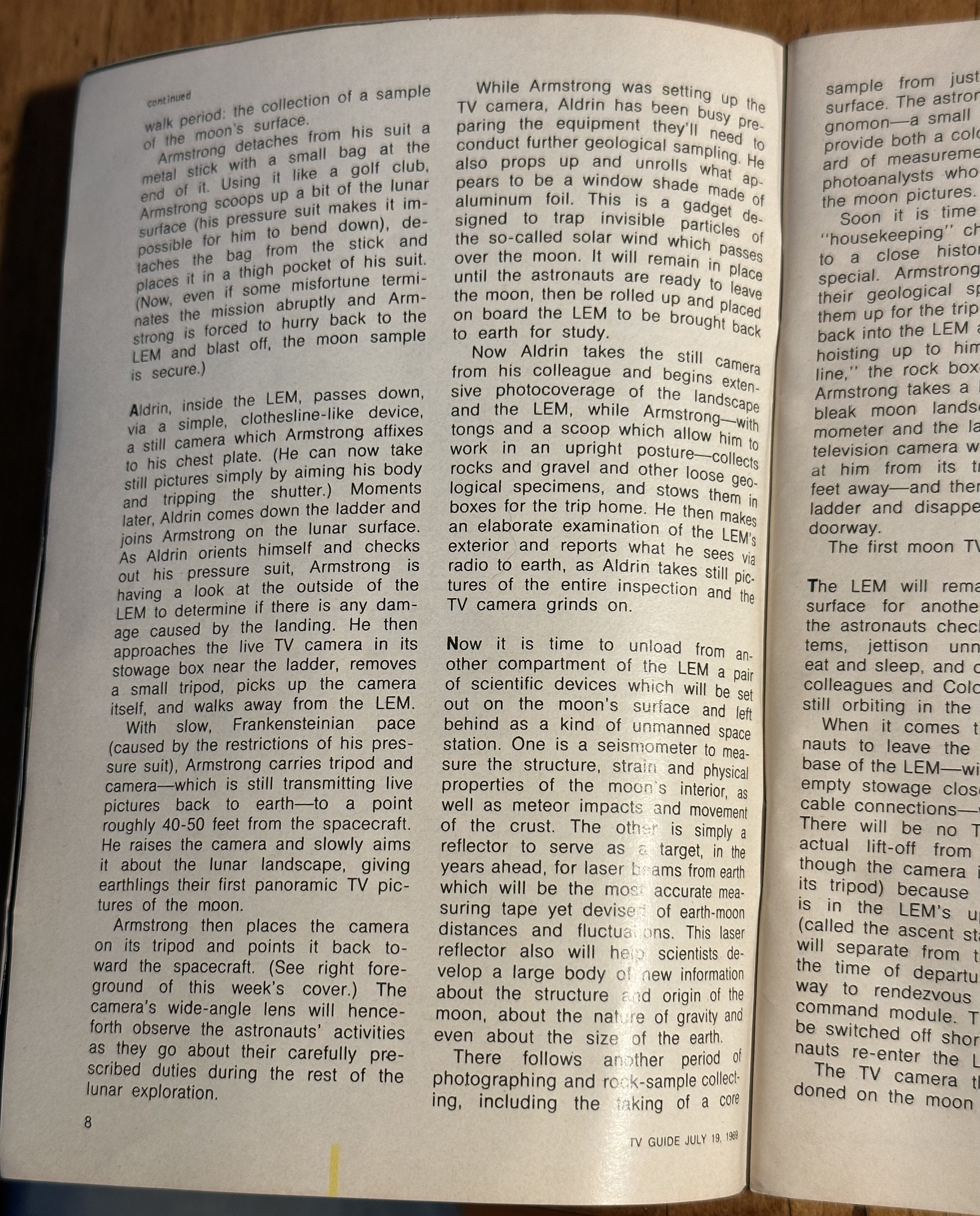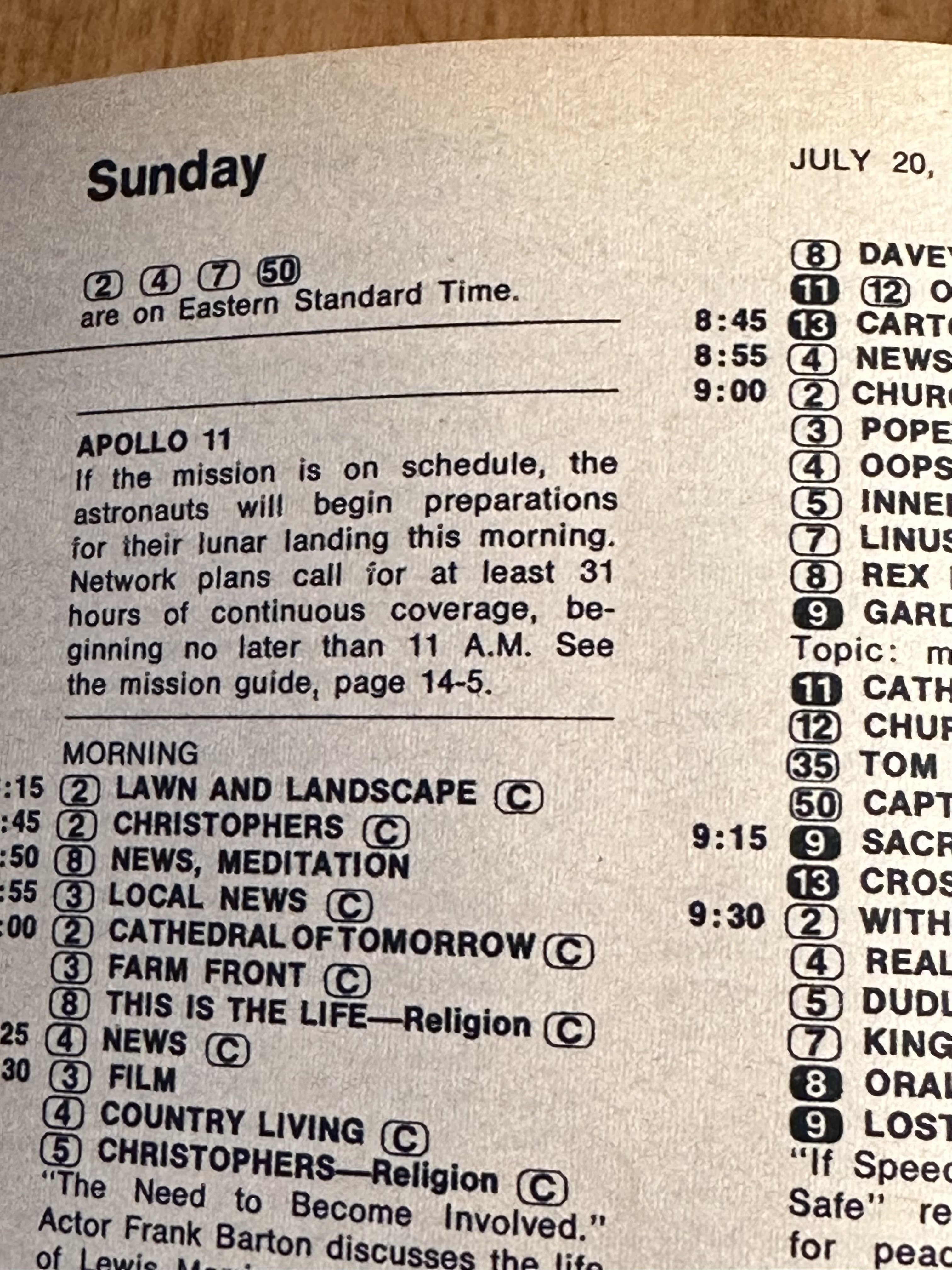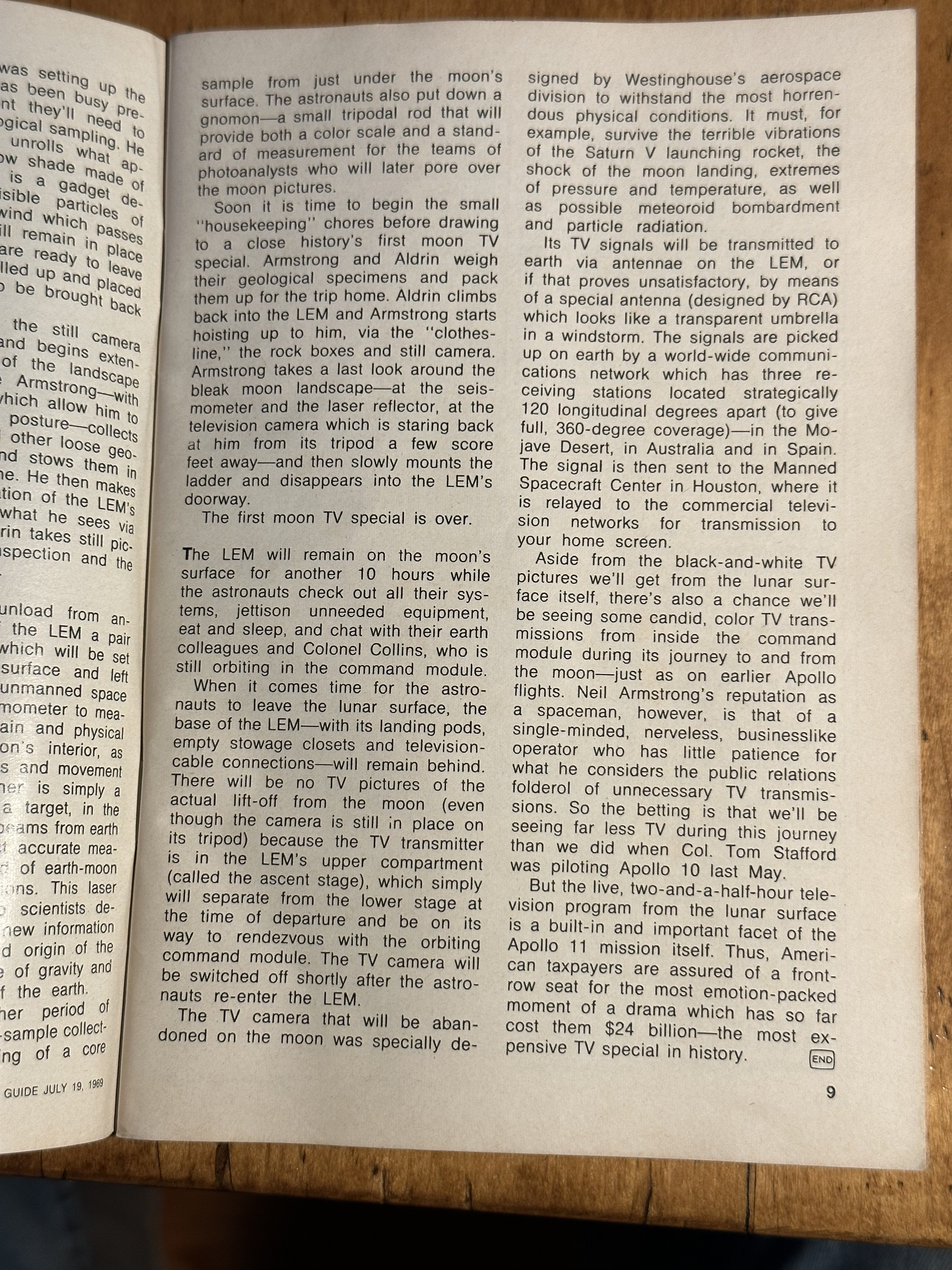 My cousin got married on July 20th 1969. So we were all gathered around a small B&W TV for the moon landing. I said if we were at home it should be in color. I think the later missions were. If you have not seen the film titled "The Dish" it is quite a treat especially for people who like things from down under. It comically tells the story how the transmission came about. Sheep and all.