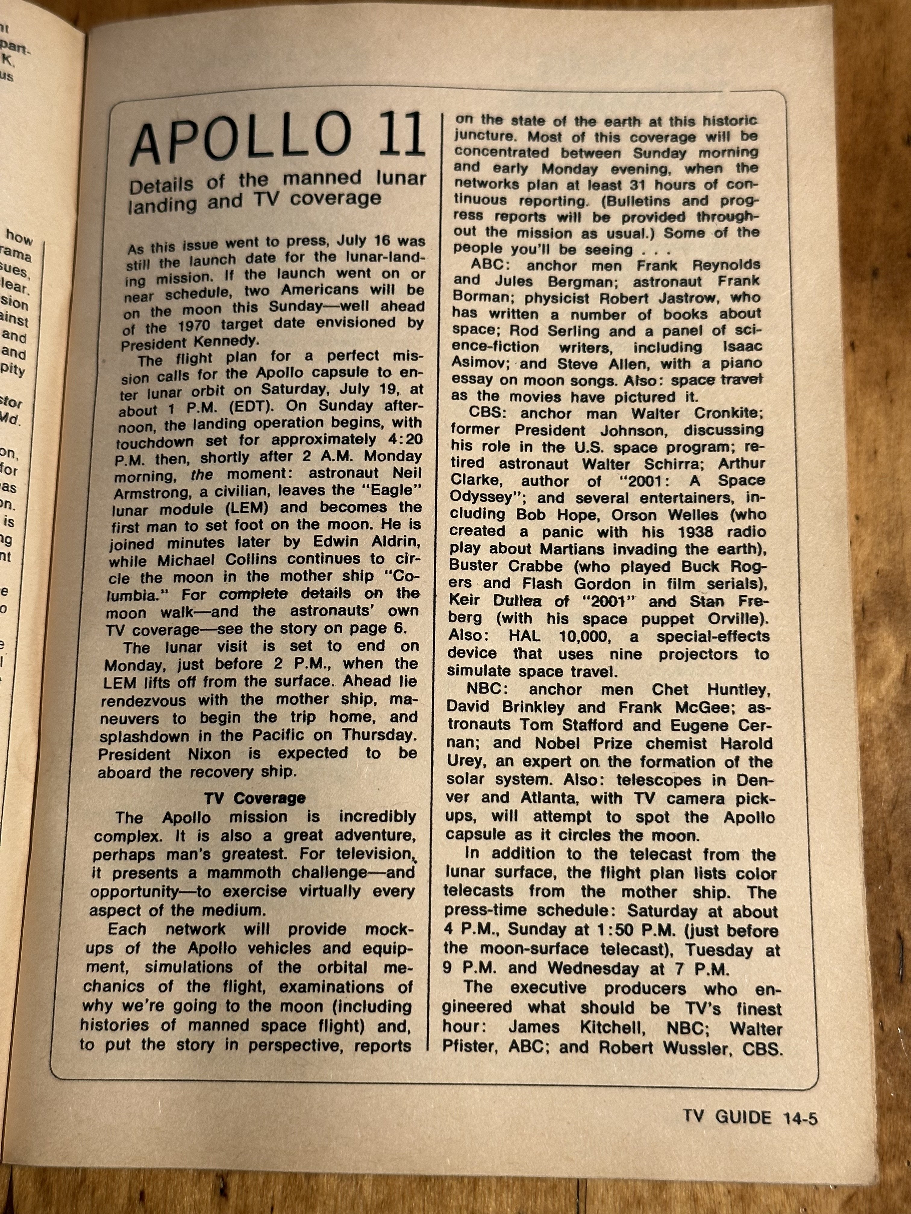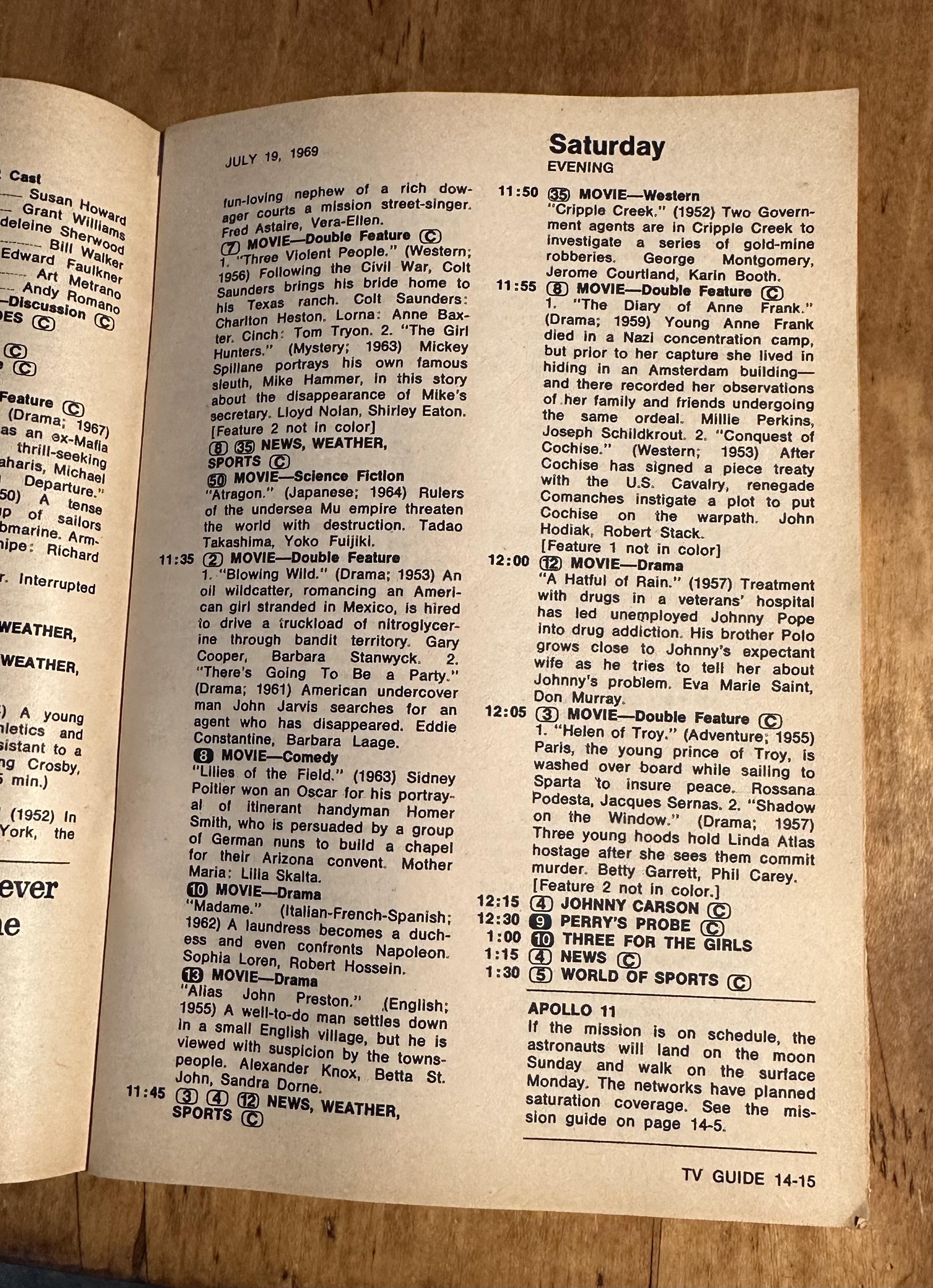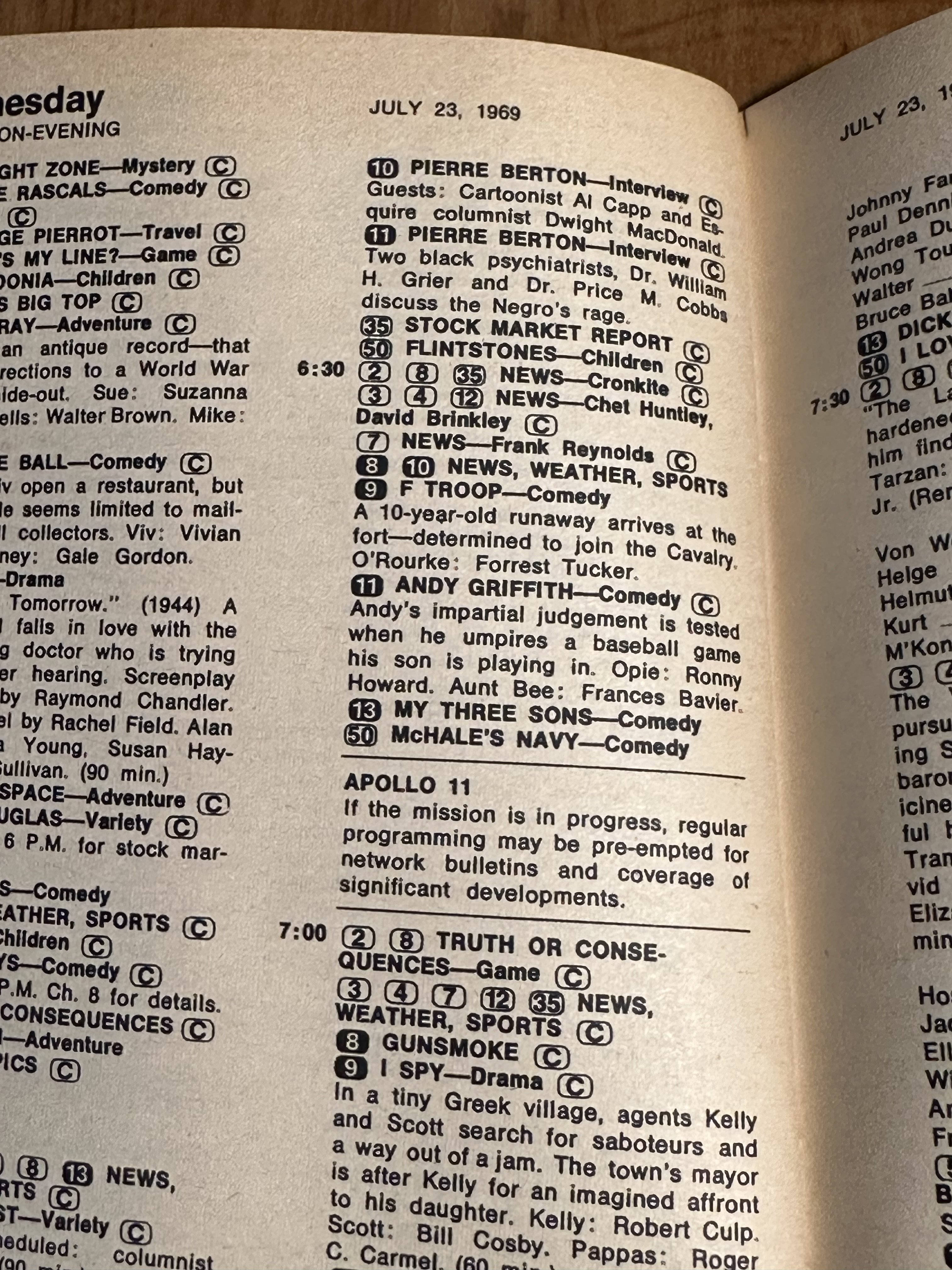 My cousin got married on July 20th 1969. So we were all gathered around a small B&W TV for the moon landing. I said if we were at home it should be in color. I think the later missions were. If you have not seen the film titled "The Dish" it is quite a treat especially for people who like things from down under. It comically tells the story how the transmission came about. Sheep and all.